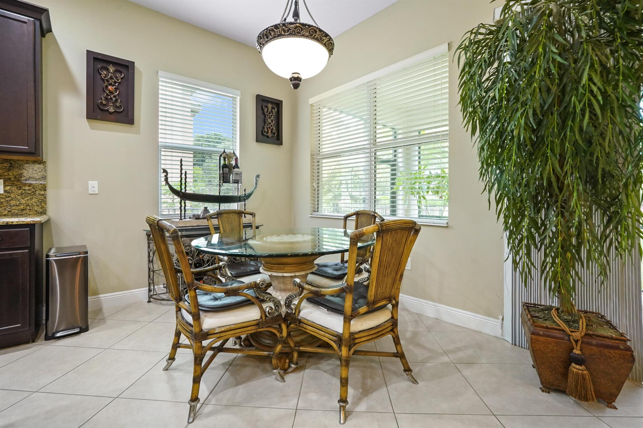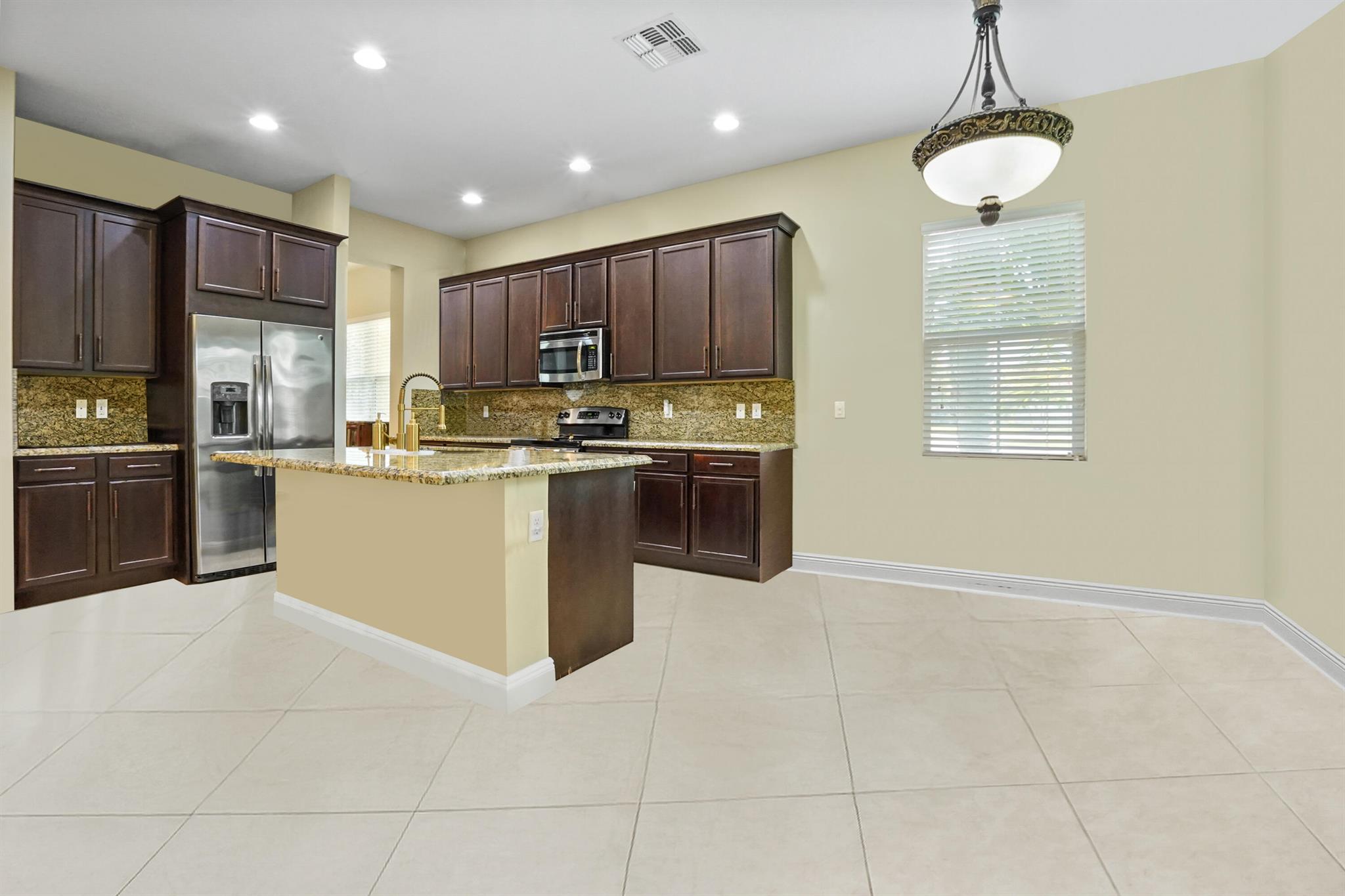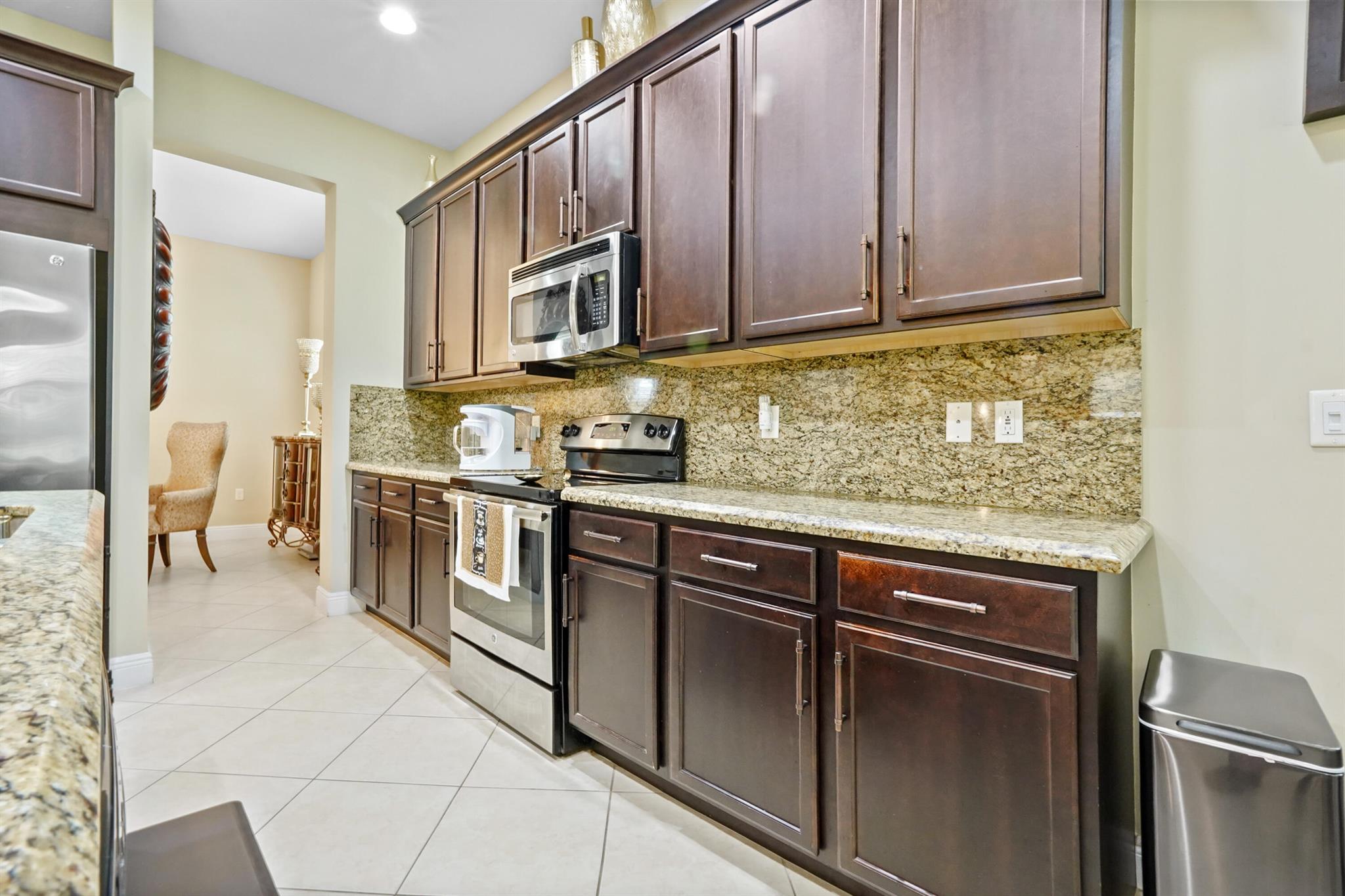 Welcome to this stunning single-family home, perfectly situated on a quiet circle in the desirable gated community of Portosol in Royal Palm Beach. The residence offers 3 bedrooms and 2 bathrooms with exceptional curb appeal, featuring attractive Mediterranean architecture with a tile roof, impact windoews a paver driveway, and lush tropical landscaping. A spacious, arch-covered entry leads to an elegant dark wood front door, setting a sophisticated tone from the moment you arrive.
