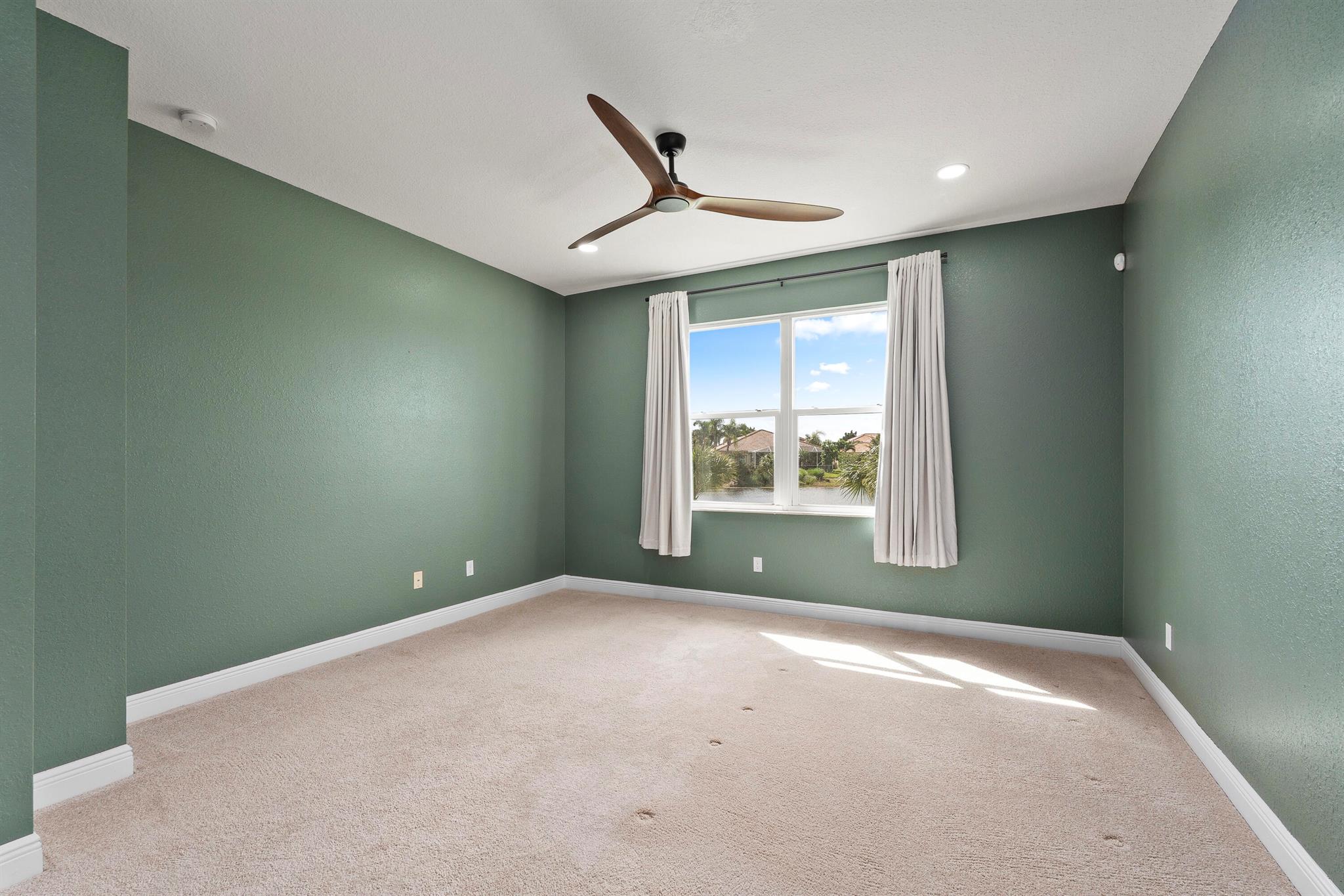 Lakefront 4Bed 3Bath 3Car Garage home located in the highly sought-after gated community of Legacy Cove. This residence features high ceilings, impact glass windows and doors, 42'' kitchen cabinets, granite counters, large breakfast bar, SS appliances, pantry, and high-hat lighting. Tile flooring flows throughout the main living areas, with carpet in bedrooms for added comfort. Enjoy peaceful lake views from your spacious living areas and backyard. The spacious primary suite offers LED lighting, both walk-in, and an ensuite bath with dual sinks, shower & tub. The open floor plan includes formal living, dining, and family rooms. New Interior paint, epoxy garage floor, A/C 2024, water heater 2021, barrel tile roof 2013. Comm: Pool & Clubhouse. https://youtu.be/JazSSJCxl9k?si=SQcjxtBP5hXki9r