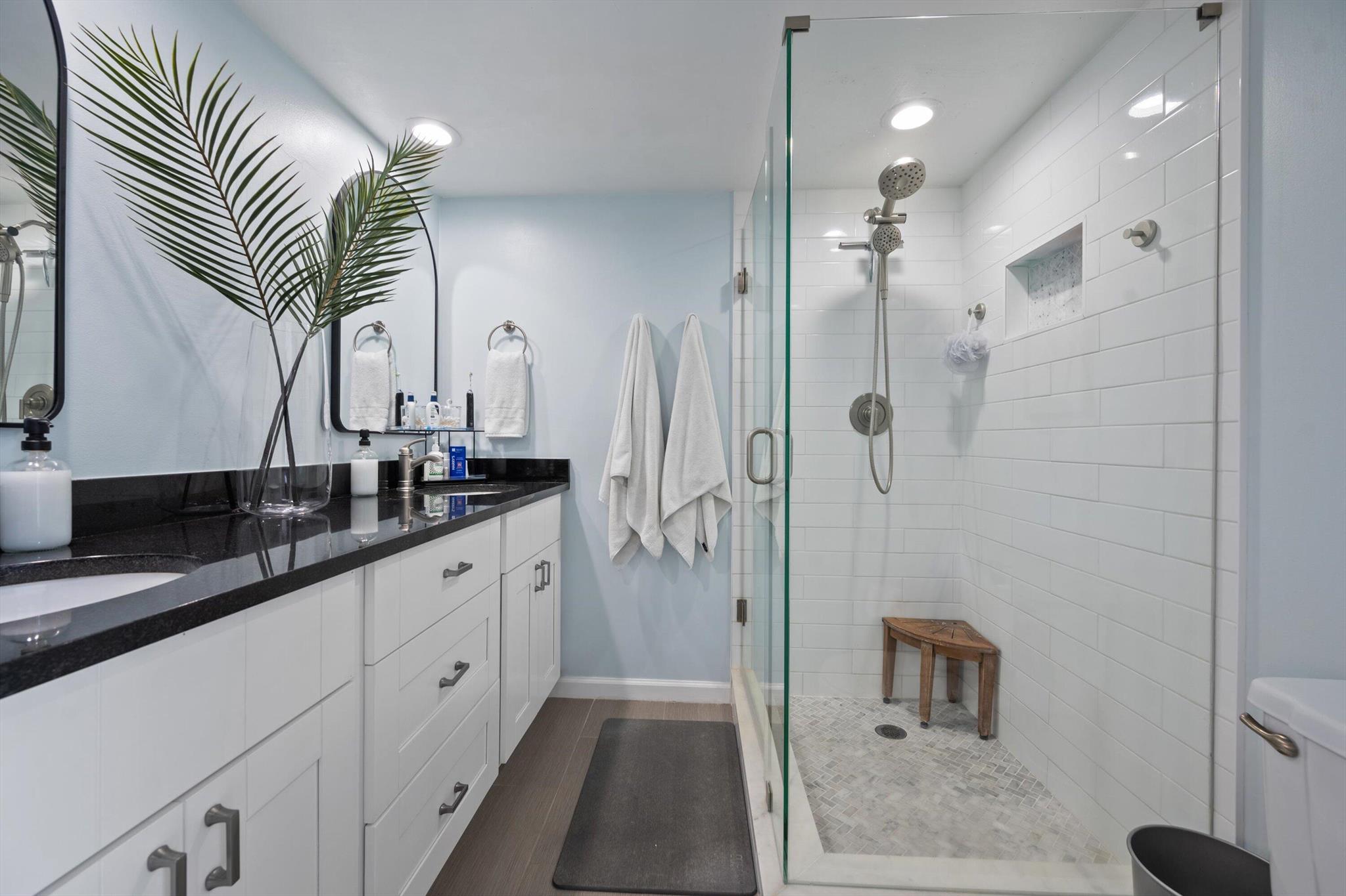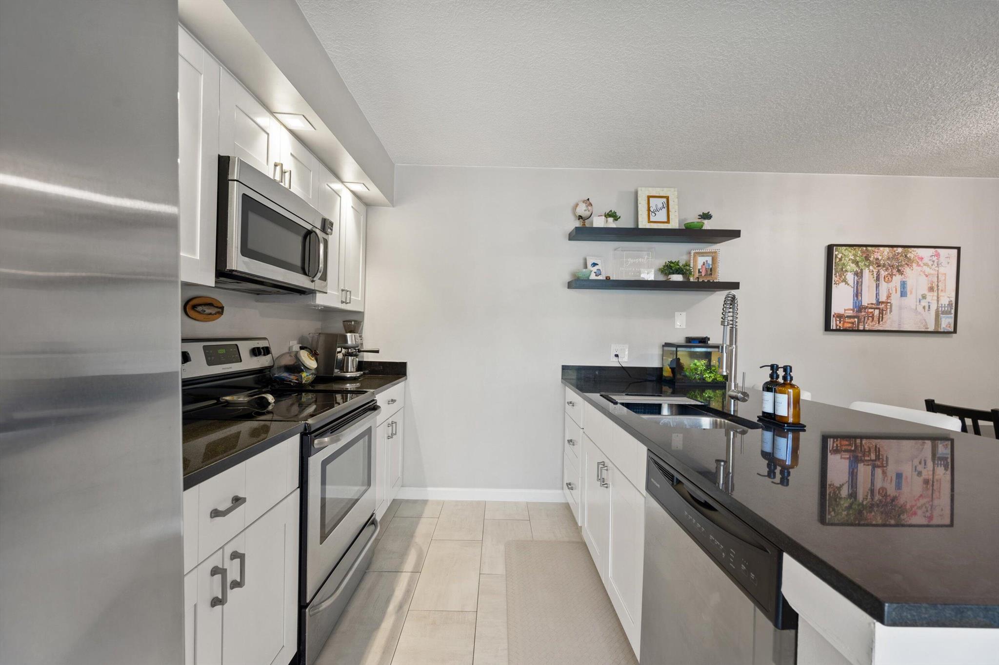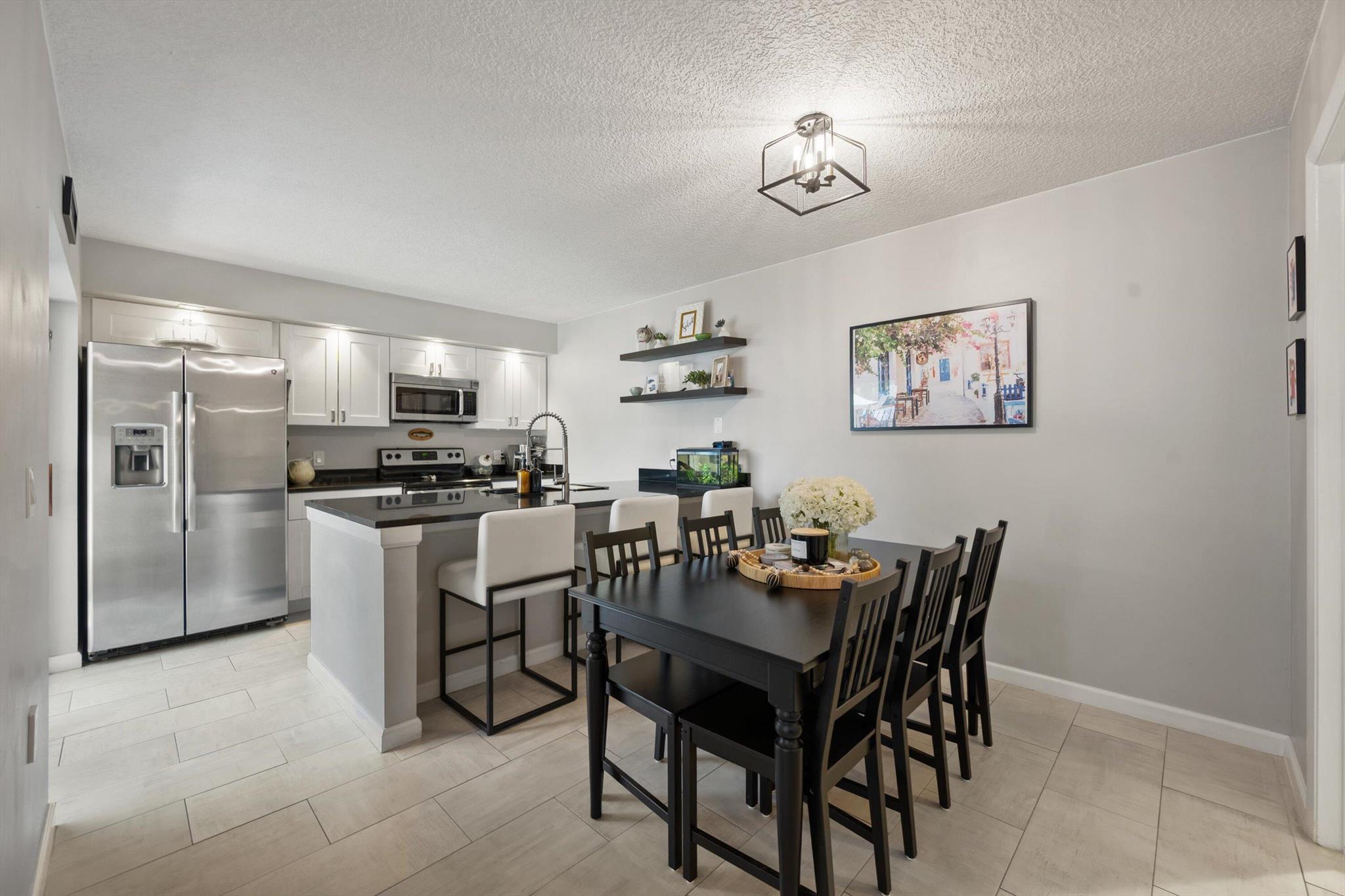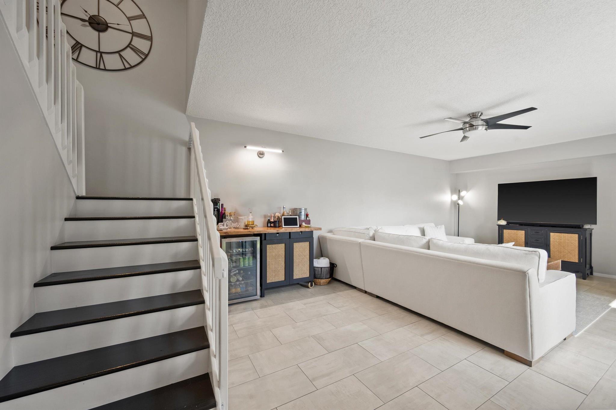 Come past the gate and find yourself in a private patio oasis perfect for entertaining and afternoon relaxation. New pet friendly high end turf area and spacious shed along with 3M film on all sliders, new 2024 accordion shutters and impact door for added convenience, full insurance mitigation credit, and peace of mind. Inside you will find a spacious living area with modern neutral tiles throughout, knockdown ceiling, newly redone wood staircase, and renovated modern kitchen with stainless steel appliances, one-level countertop island with huge workspace and bar style seating, white cabinets and open modern feel with additional dining area. Laundry room with new 2022 washer/dryer, added cabinets and updated powder room with additional storage round off the first floor.