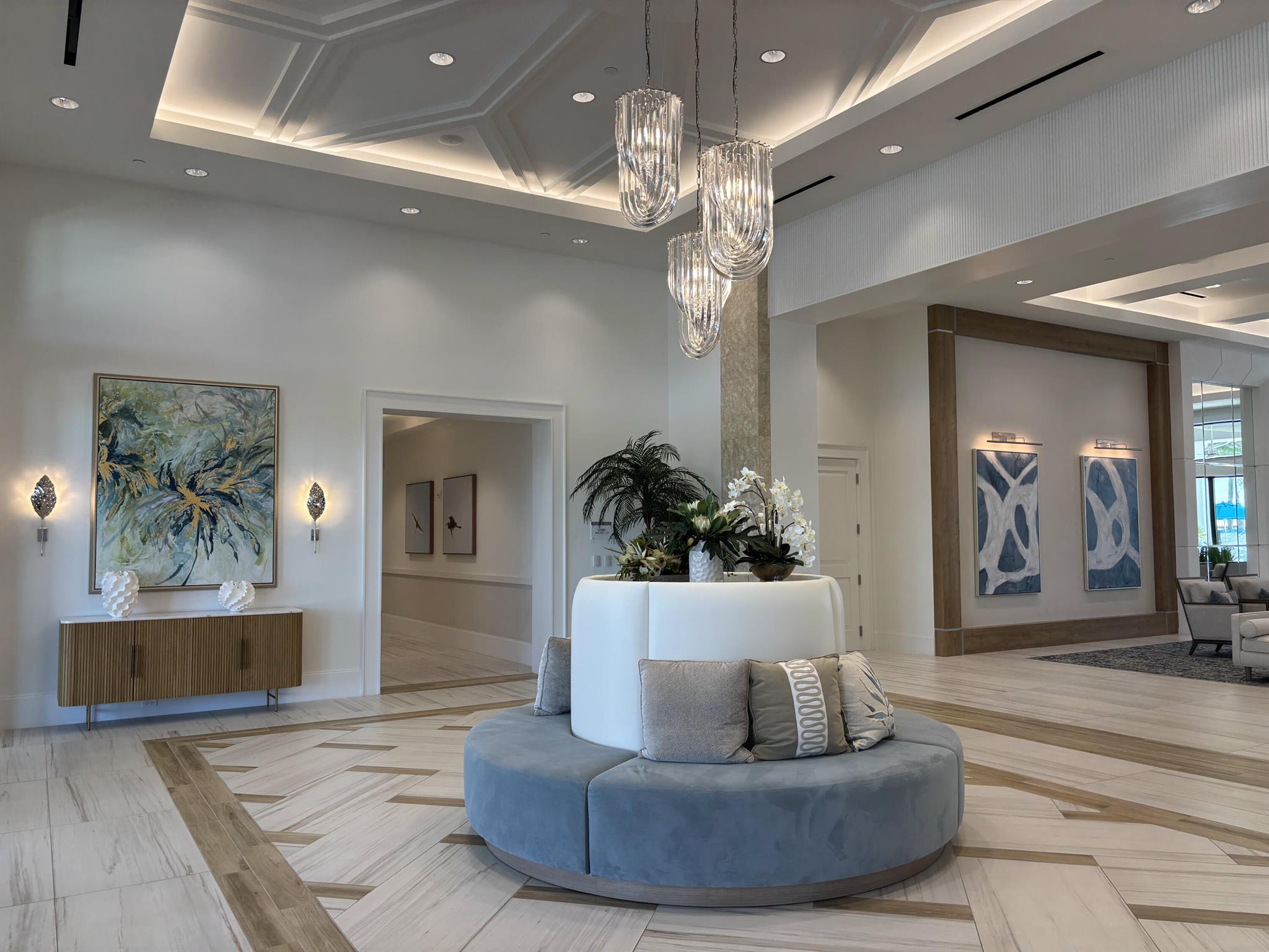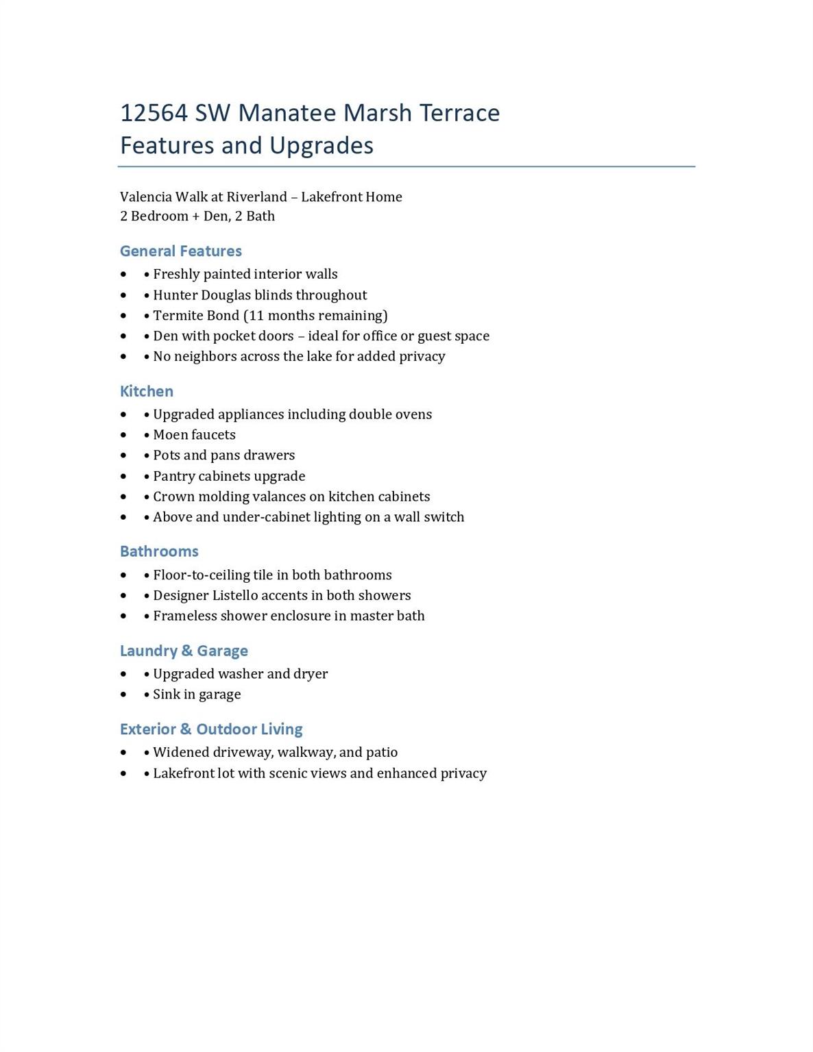 Without a doubt, one of the best waterfront lots in the community! Discover luxury and tranquility in this beautifully upgraded lakefront home located in the highly desirable 55+ community of Valencia Walk at Riverland. This 2-bedroom + den, 2-bath residence offers a perfect blend of comfort, privacy, and refined design. Step inside to find freshly painted interiors, Hunter Douglas blinds throughout, and elegant finishes that create a warm, inviting atmosphere. The open-concept kitchen is a true showpiece, featuring upgraded appliances, double ovens, Moen faucets, pots and pans drawers, and pantry cabinet upgrades. The cabinetry is beautifully accented with crown molding valances and both above and under-cabinet lighting on a wall switch, providing a sophisticated and functional workspace