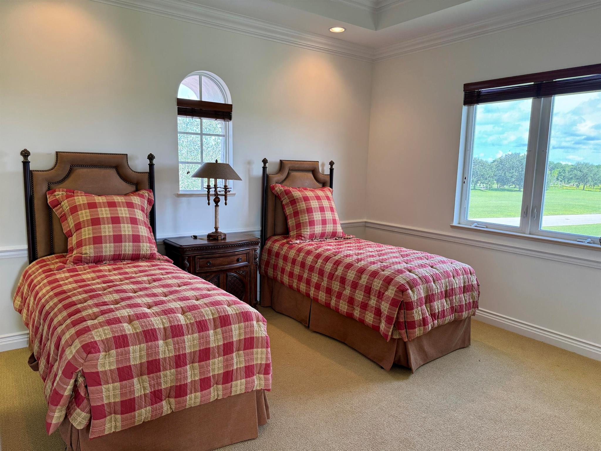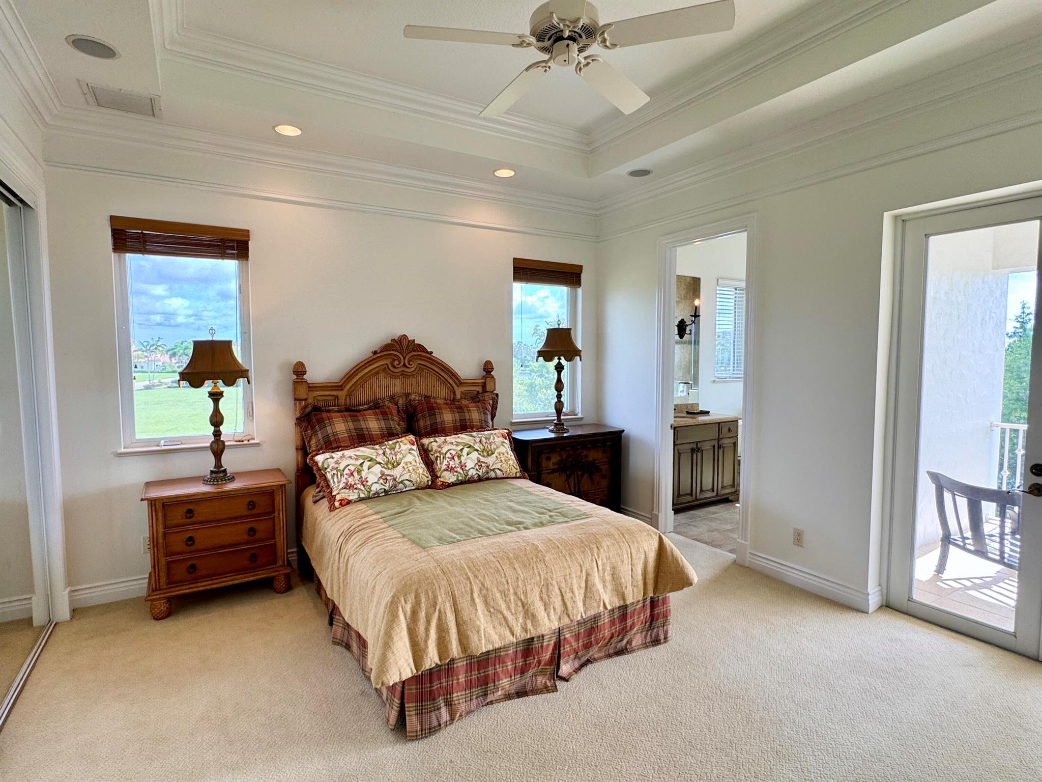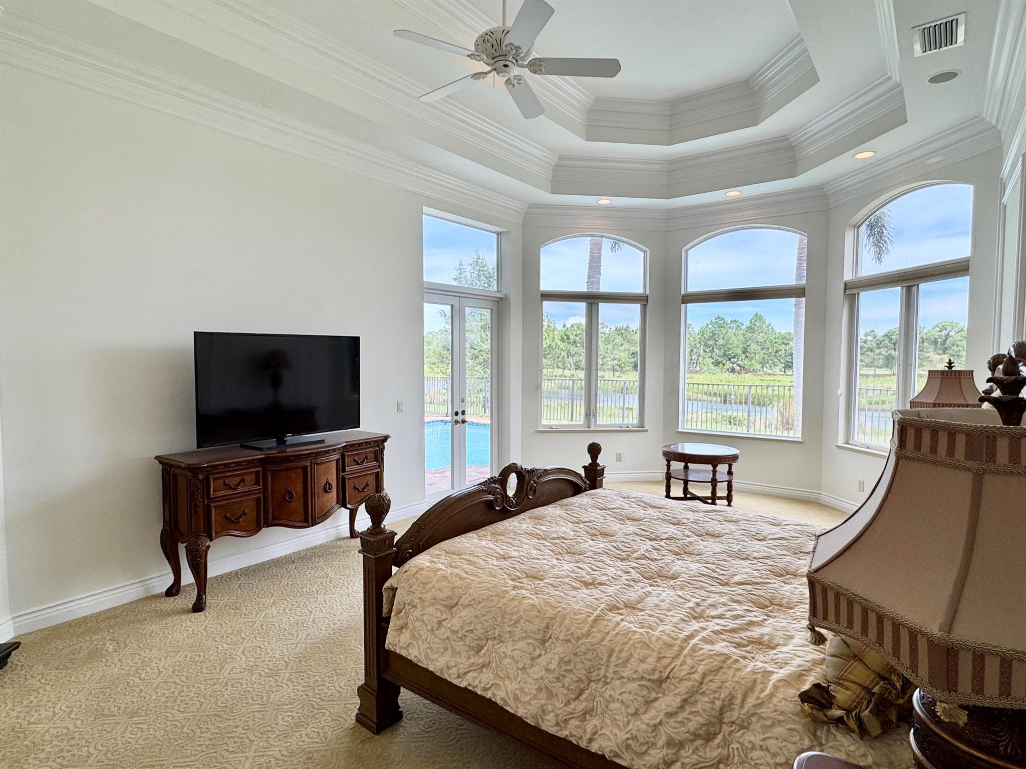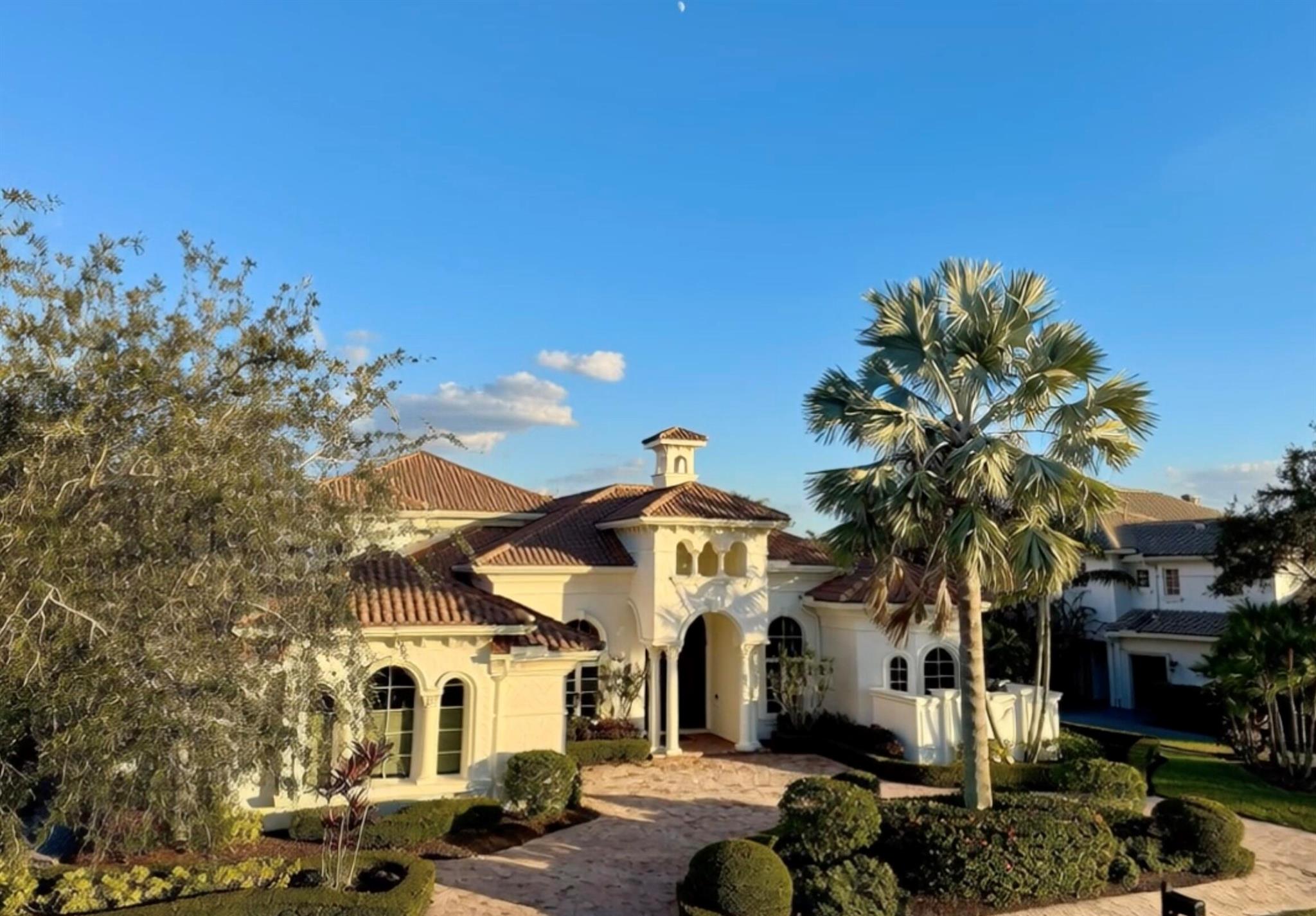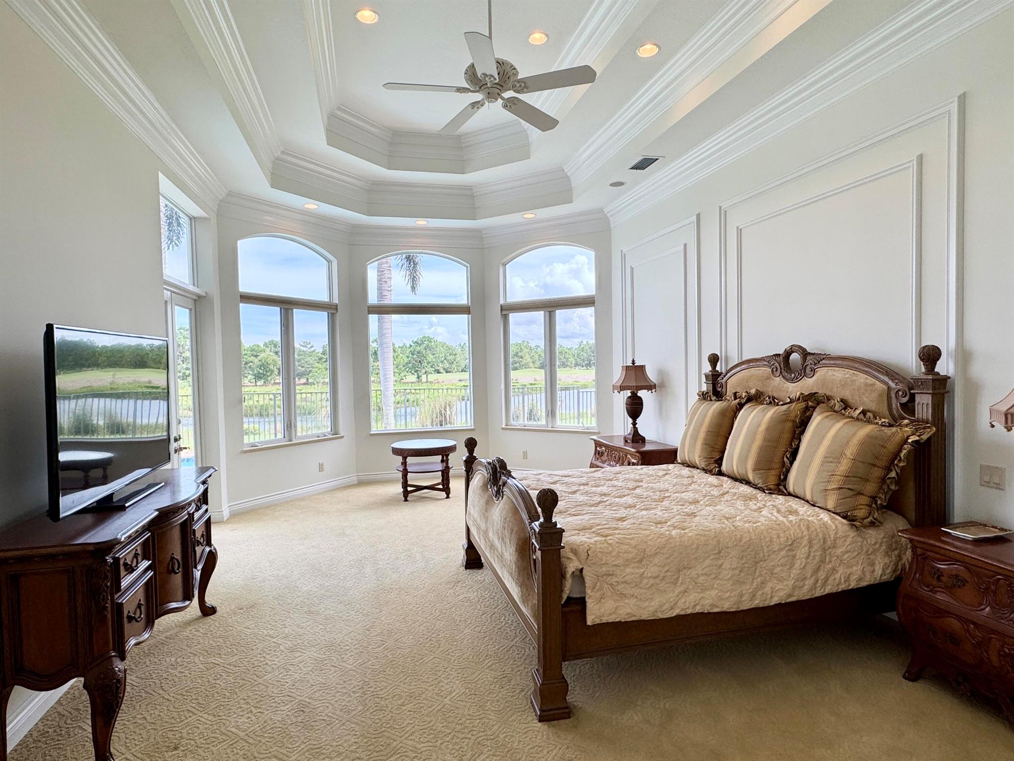 Southeastern views of a freshwater creek & the Arnold Palmer Golf Course are yours from this home's private backyard. The open concept features 18-foot-high ceilings, custom ceiling details with wide wood moldings, tall storm-resistant windows, & a solid mahogany grand entry door. The main suite features both his & her private baths, custom closets, & an oversized bed chamber. Each guest suite has a private bath & ample closet space. The great room & gourmet kitchen combine for one fantastic entertainment area. The chef's kitchen features natural gas cooking, double ovens, a prep island with double refrigerator drawers, a pantry with sliding shelves, & granite countertops over solid wood cabinets. Two covered porches & a 2nd floor balcony overlook the recently resurfaced lap pool.