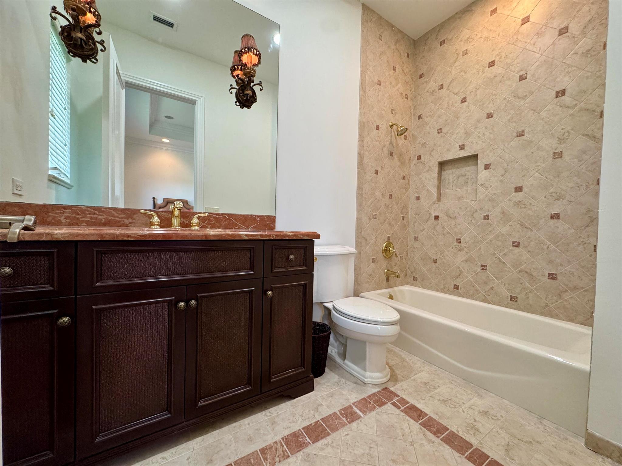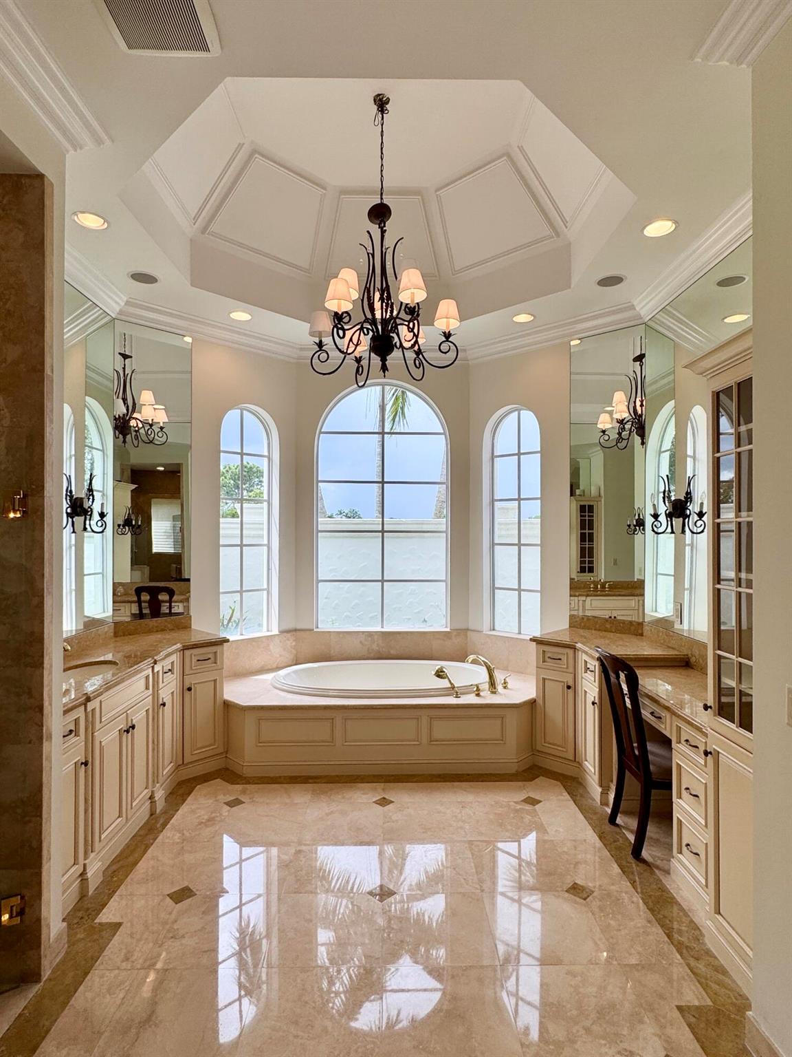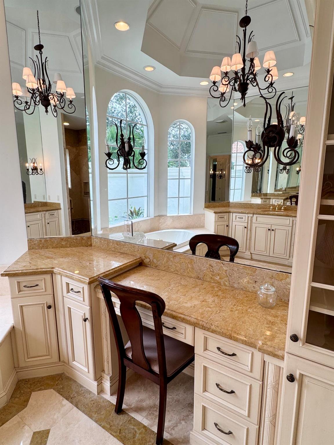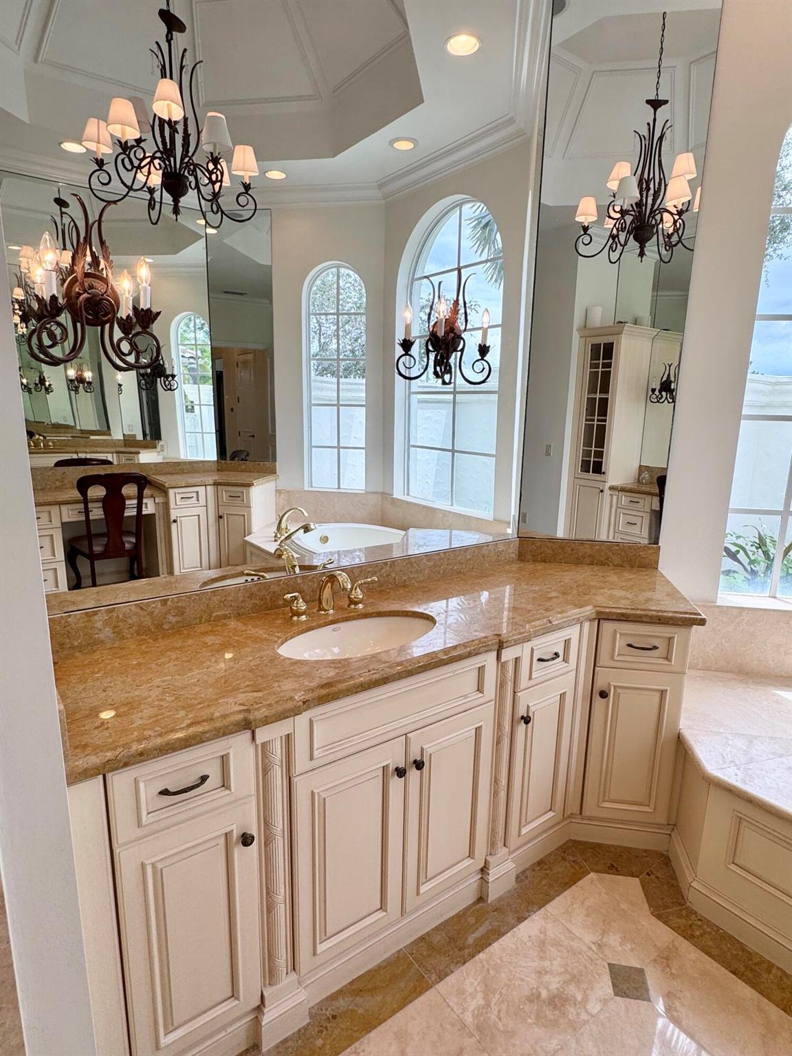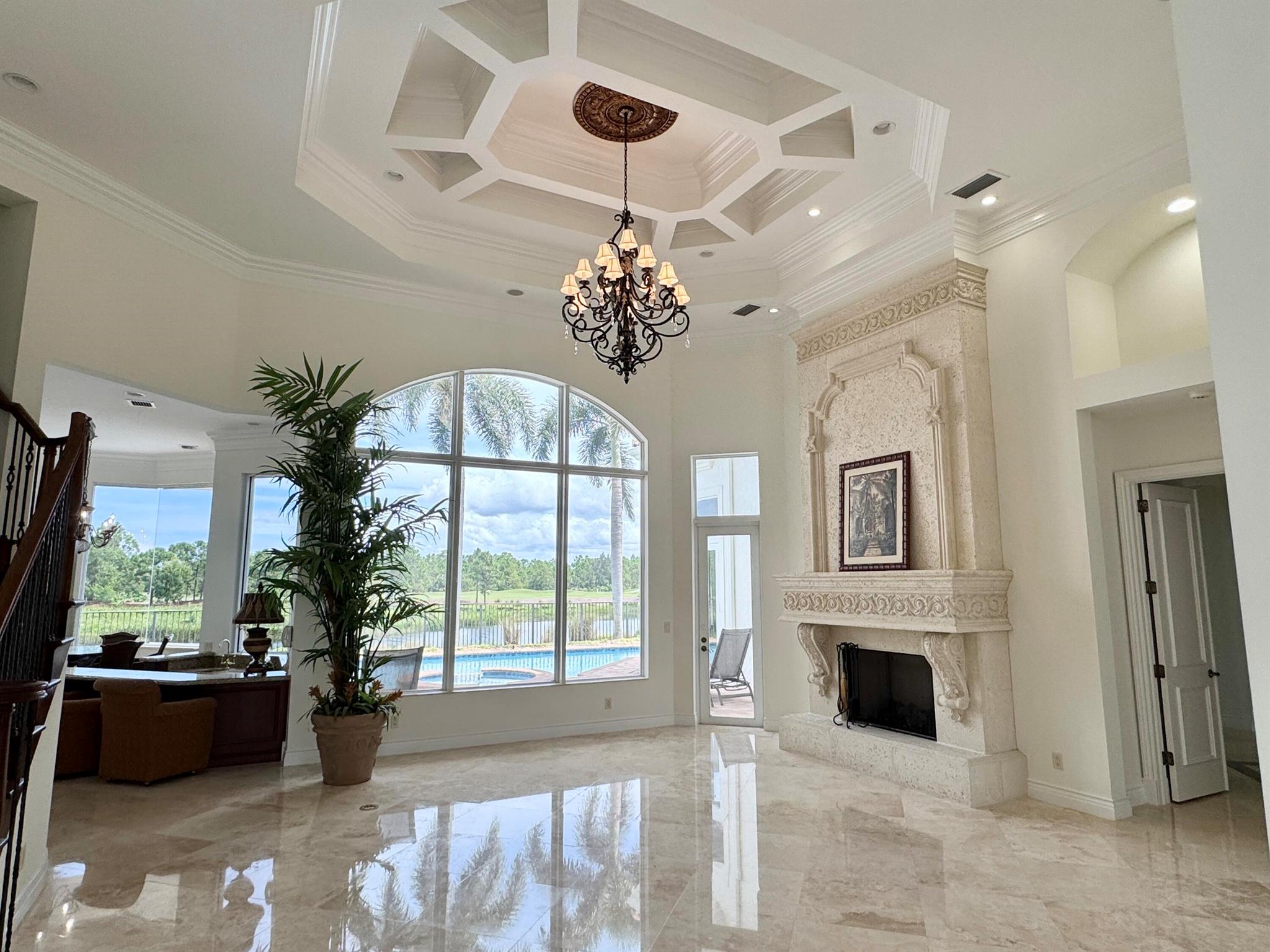 Southeastern views of a freshwater creek & the Arnold Palmer Golf Course are yours from this home's private backyard. The open concept features 18-foot-high ceilings, custom ceiling details with wide wood moldings, tall storm-resistant windows, & a solid mahogany grand entry door. The main suite features both his & her private baths, custom closets, & an oversized bed chamber. Each guest suite has a private bath & ample closet space. The great room & gourmet kitchen combine for one fantastic entertainment area. The chef's kitchen features natural gas cooking, double ovens, a prep island with double refrigerator drawers, a pantry with sliding shelves, & granite countertops over solid wood cabinets. Two covered porches & a 2nd floor balcony overlook the recently resurfaced lap pool.