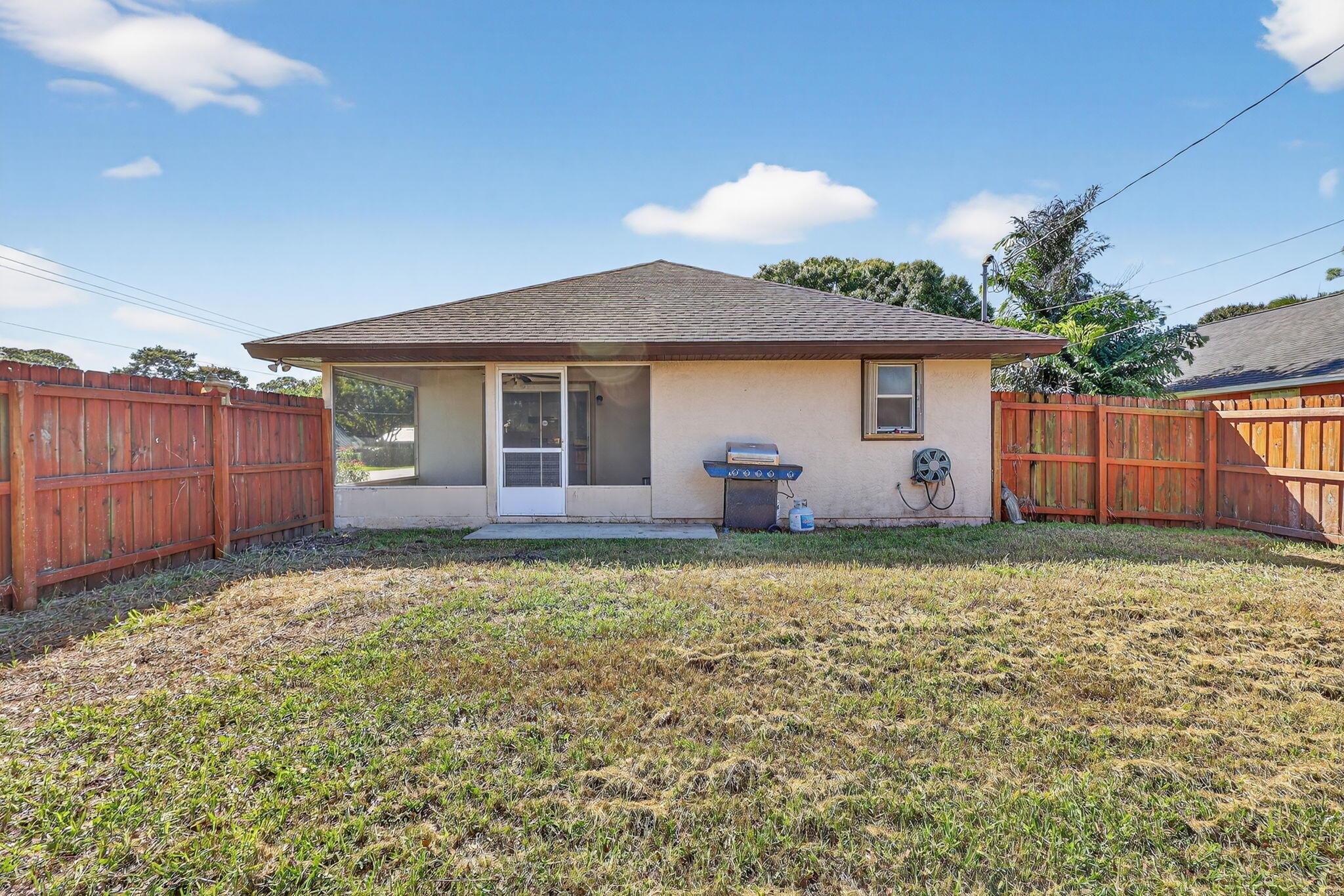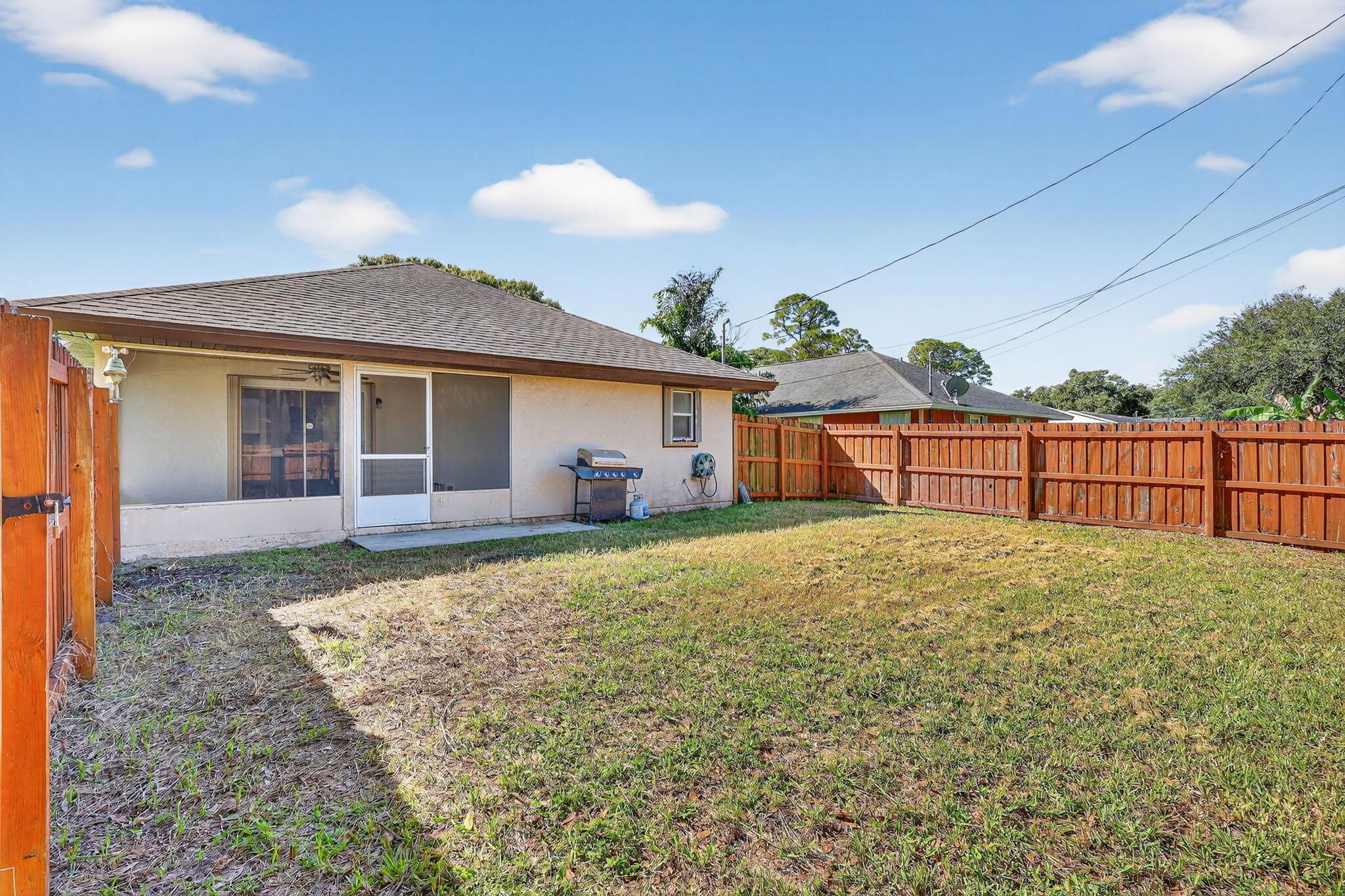 Priced to sell!! Come see this spacious, open floorplan 3-bedroom, 2 bath home in lovely Vero Beach. This beauty offers a large living room, dining room, huge cathedral ceilings and screened patio with views of your oversized fully fenced corner lot! Roof from 2018 and full accordion shutters put safety first. Your chef's kitchen w/ duel colored cabinetry, stainless appliances, massive bar with room for 5+ stools and loads of counter space makes cooking a dream! Kid and pet friendly with newer vinyl flooring, separate laundry room and bathroom updates make this home stand above the rest. Investor-friendly with no HOA, room for boat or RV parking, so bring the toys. Priced aggressively so hurry! Buyer may qualify for Hometown Hero Grant of up to 5% with approved lender, inquire within