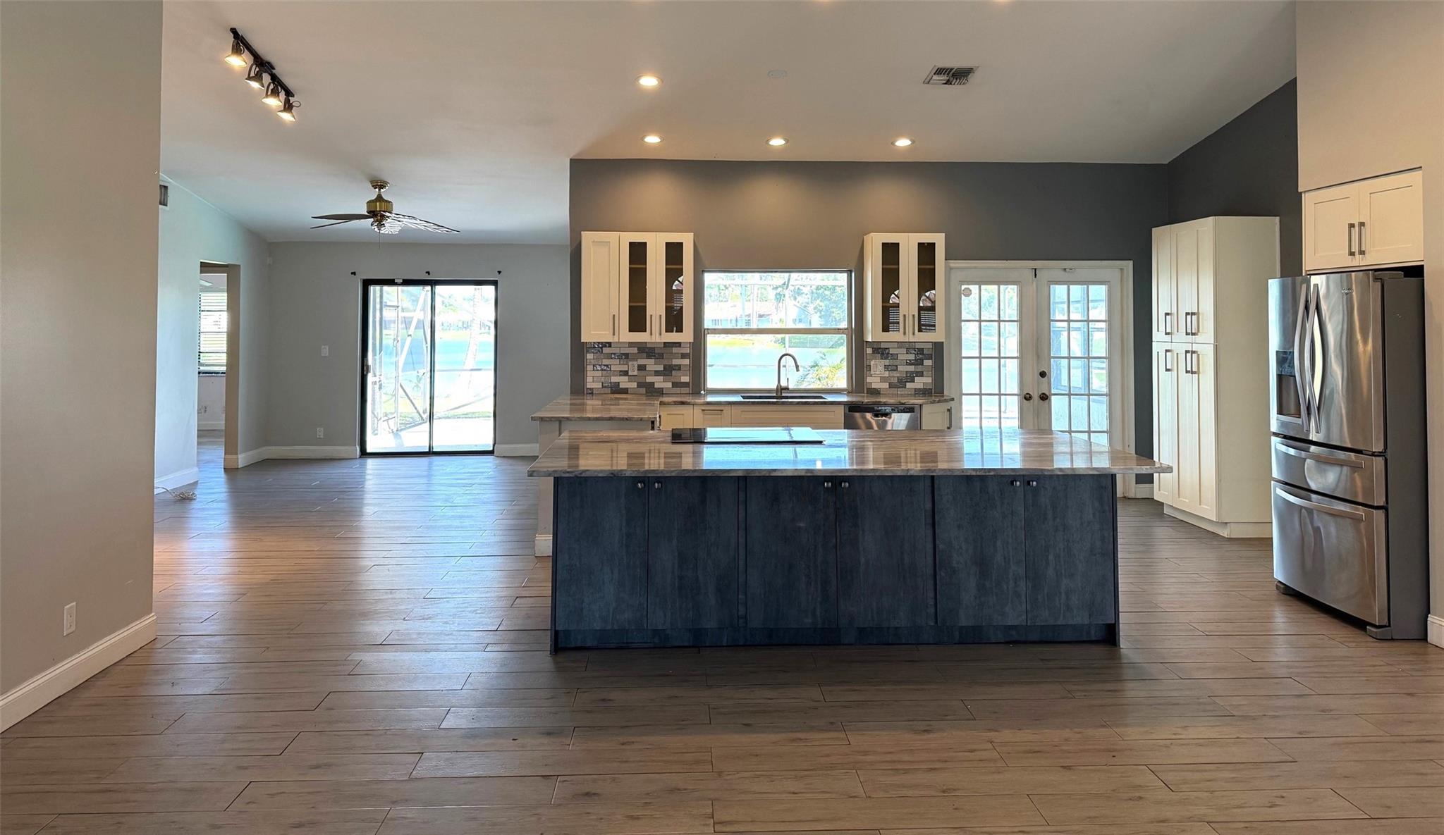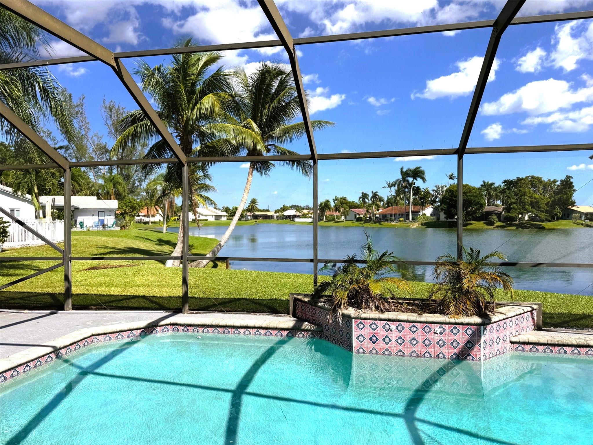 This fully updated 3 bedroom/2 bath lakefront pool home w/a 2 garage will make you think you're in a resort. It features a bright open floor plan with gorgeous water views, a beautiful screened-in pool and updates throughout. For a bonus, there's a flex space or family room just off the living room that could be used as a home office without sacrificing one your bedrooms. This fine home has it all but does need cosmetic work which is reflected in the price. Sunflower is a well-kept community with its own park and a low HOA fee of $175.00 per year.