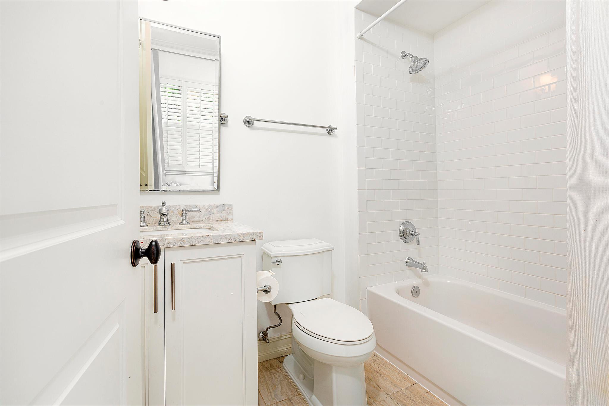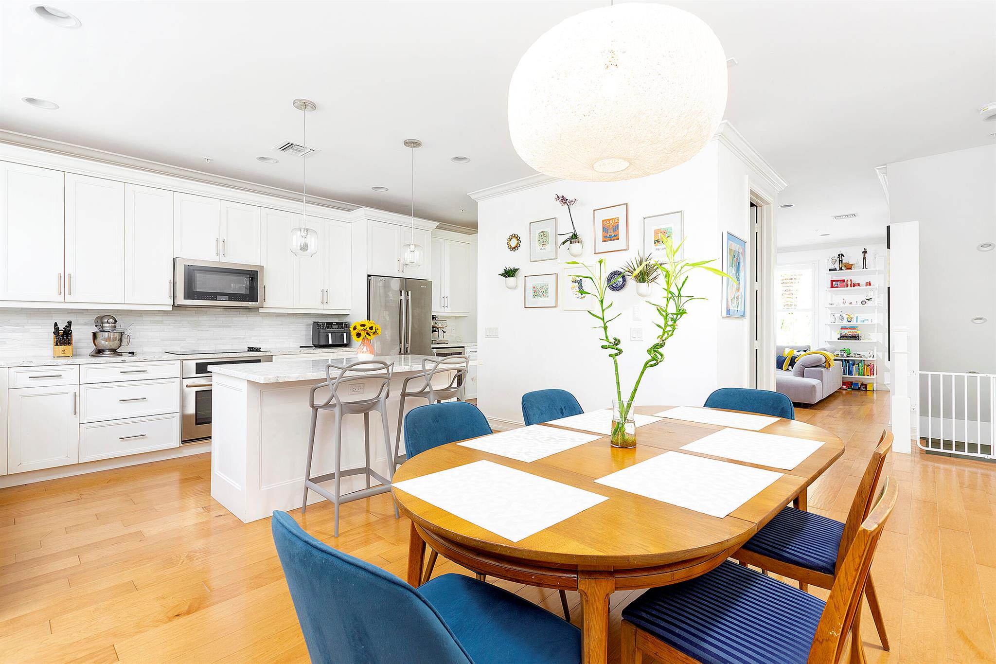 Located in the heart of Pineapple Grove Village, this beautifully upgraded townhouse in Cannery Row offers refined living in one of downtown Delray Beach's most desirable communities. The first floor includes a spacious two-car garage and a private en-suite bedroom with a bathtub ideal for guests or as a quiet home office, separated from the main living areas. A staircase with solid hardwood treads and risers leads to the second floor, where you'll find matching wood floors and a thoughtfully designed layout. The large eat-in kitchen features white Shaker-style cabinetry, light granite countertops, and an oversized island that functions as both a practical workspace and a central gathering spot. Opposite the powder room, a bright formal living room is framed by large windows, bright