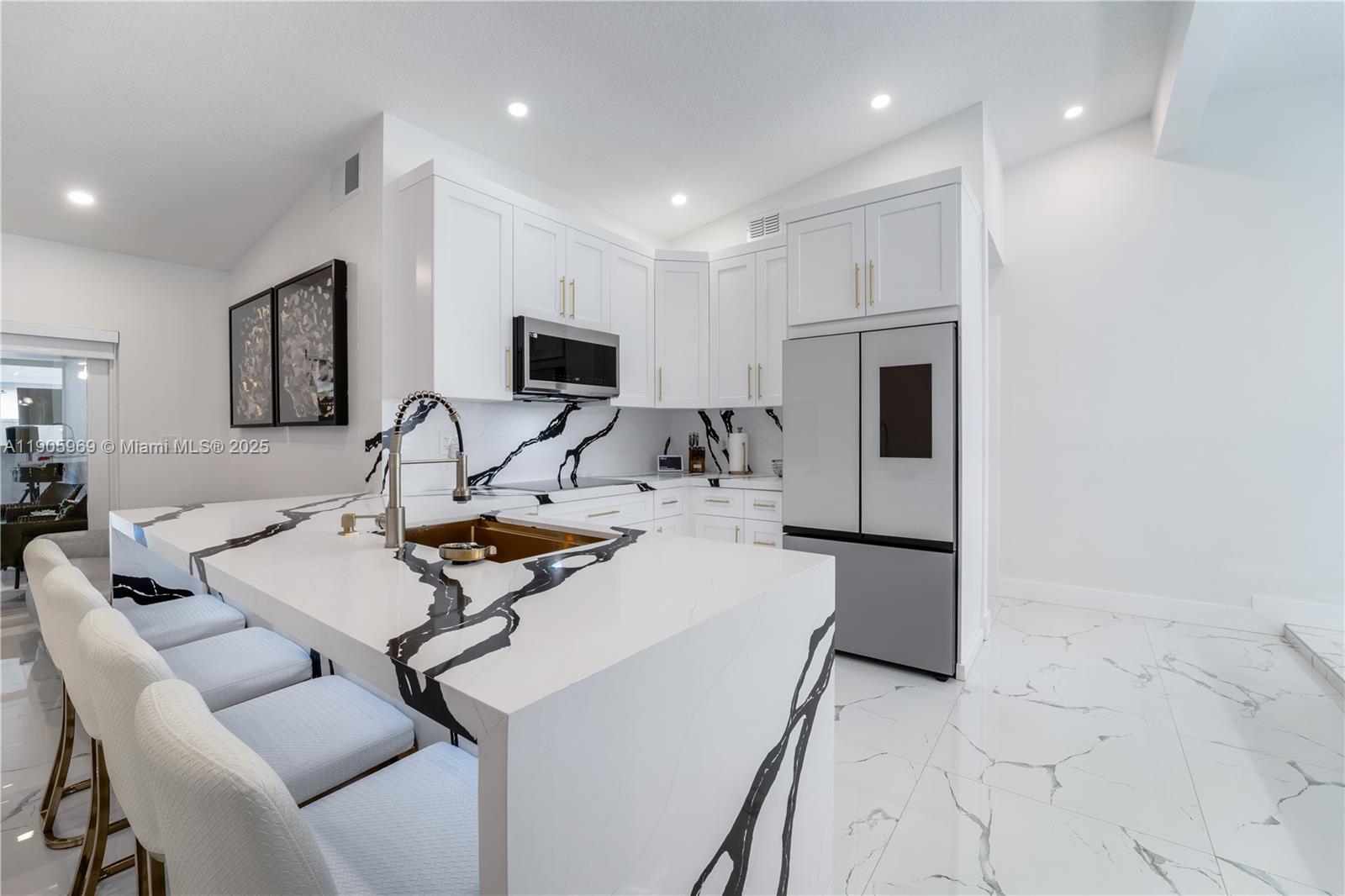 Gorgeous 3/2 in completely move in ready condition with beautiful kitchen less than 2 years old, 2 modern style bathrooms, custom closets and marble floors throughout. One car garage and large covered patio area with an additional enclosed Florida room. New fencing completely around the property with large driveway. Home is near the Hammocks Lakes and walking trails. This home is in impeccable condition for first time homebuyers.