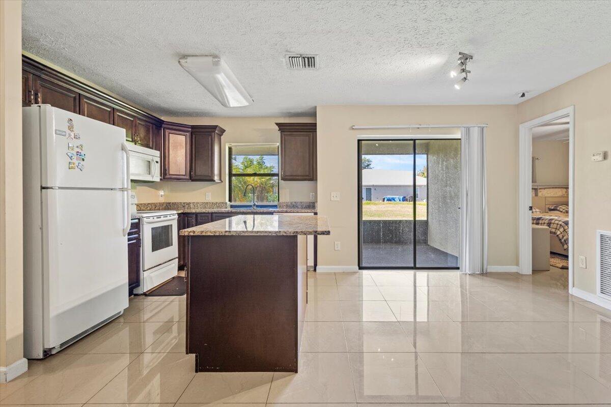 Cute, cozy, and full of potential! This CBS 3-bedroom, 2-bath, 2-car garage home features a 2022 roof, porcelain tile floors throughout, and a split-bedroom layout ready for your finishing touches. The open kitchen flows into the living and dining areas with easy access to a screened patio and spacious backyard. Enjoy peace of mind with solid construction, no HOA, and a convenient location near Crosstown Parkway, shopping, and beaches. A smart buy at $315,000 -- move right in and make it your own!
