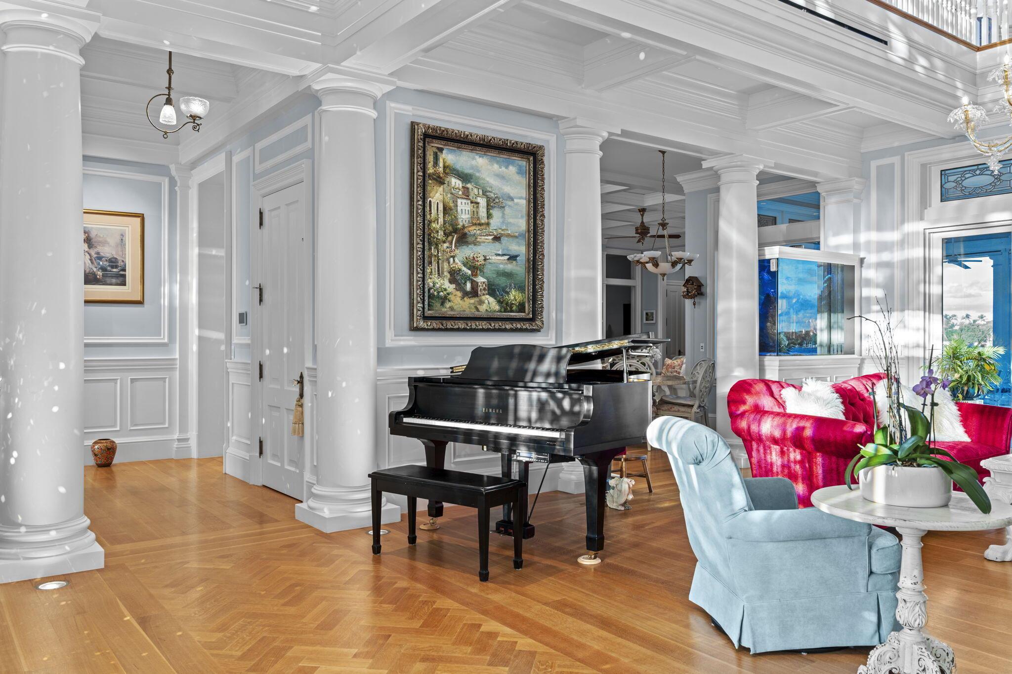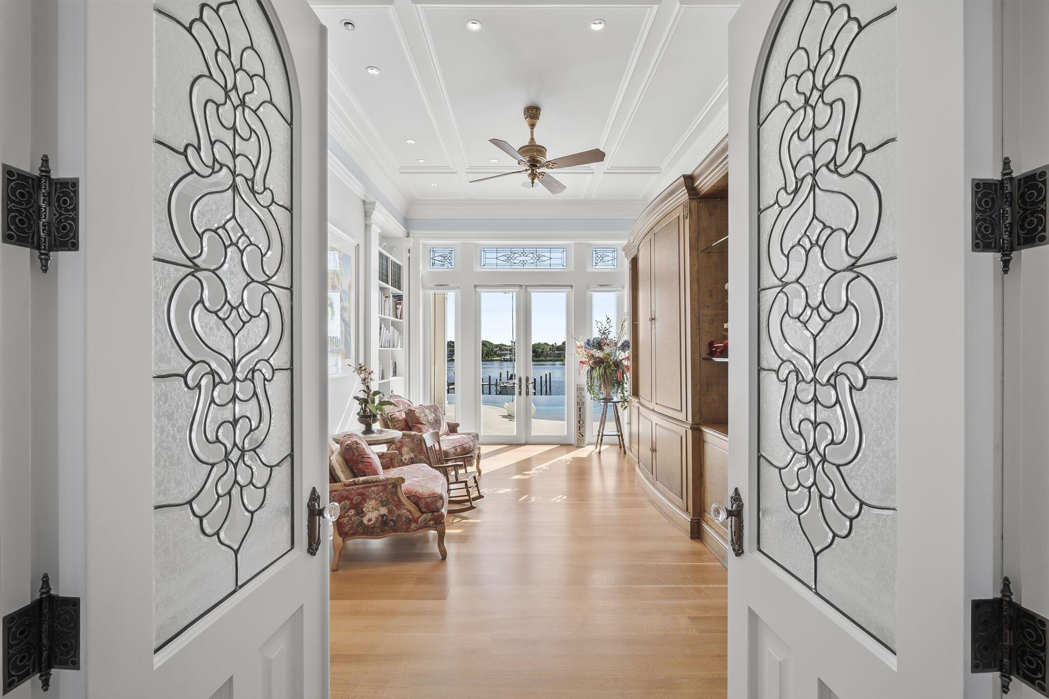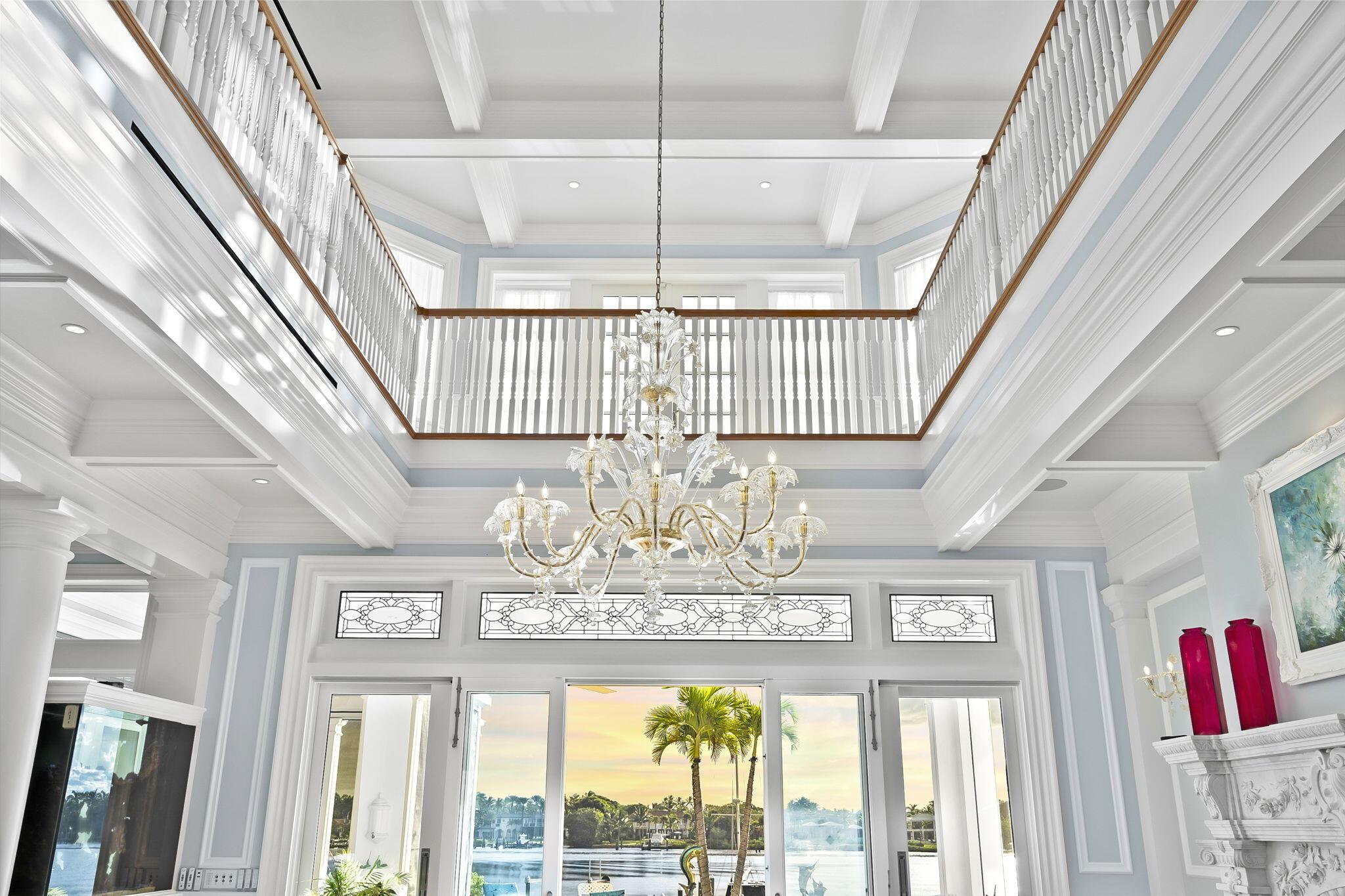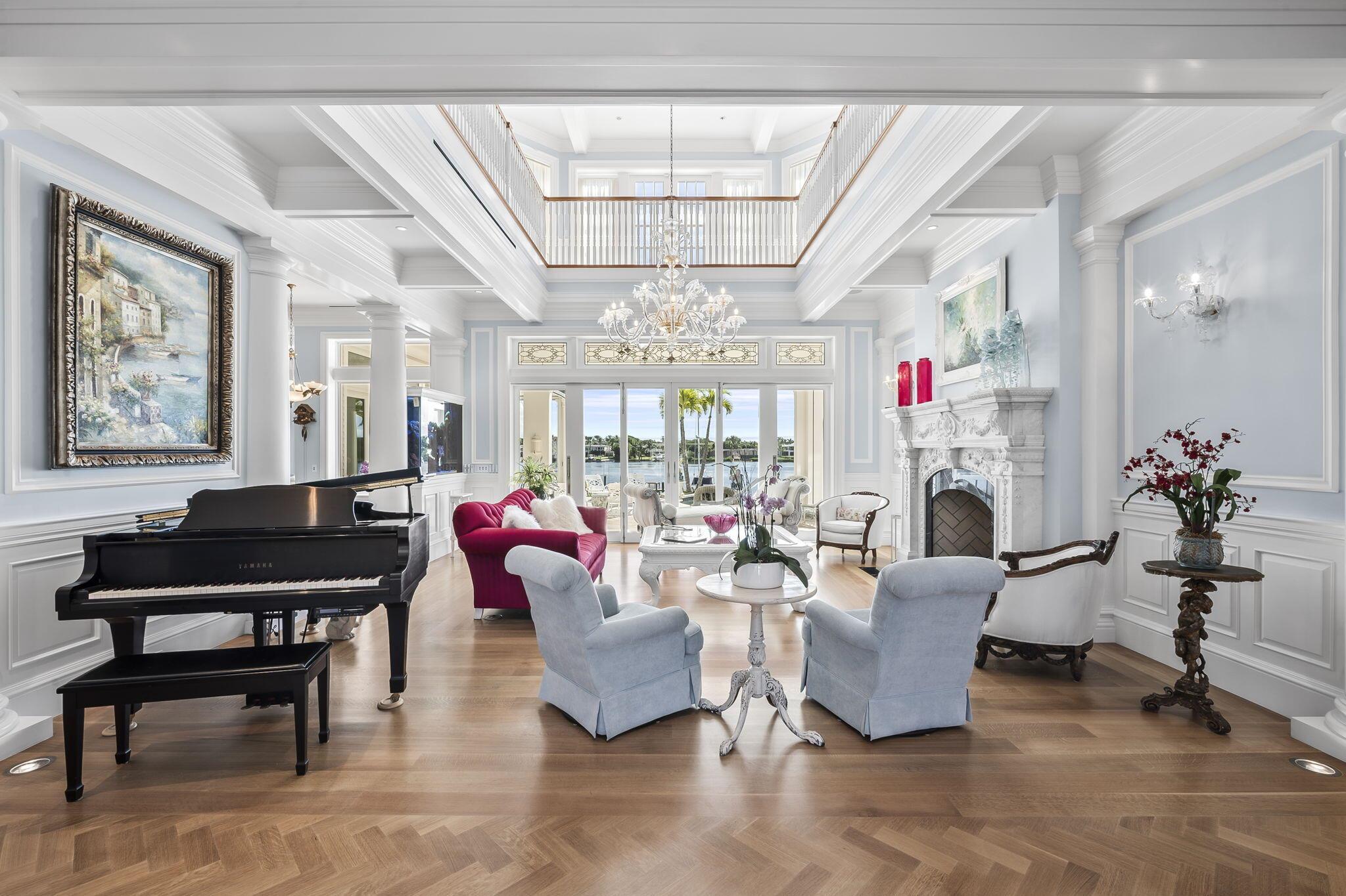 Welcome to Anglesea Estate, where timeless European architecture meets modern coastal luxury. Built in 2016, this architectural masterpiece offers 200 feet of elevated Intracoastal frontage, blending classic craftsmanship with contemporary sophistication for a truly distinguished South Florida lifestyle.Inside, every detail reflects impeccable quality and artistry from custom millwork, exquisite hand carved Carrera marble fireplace, and Murano chandeliers to sweeping water views from nearly every room. The chef's kitchen features dual walk-in pantries and premium finishes. The primary suite includes a fireplace, dual en-suites and walk-in closets, while each bedroom suite enjoys broad open terraces. A 3 story home elevator ensures effortless access throughout.