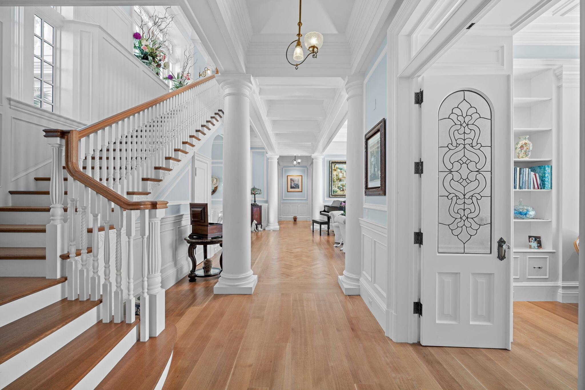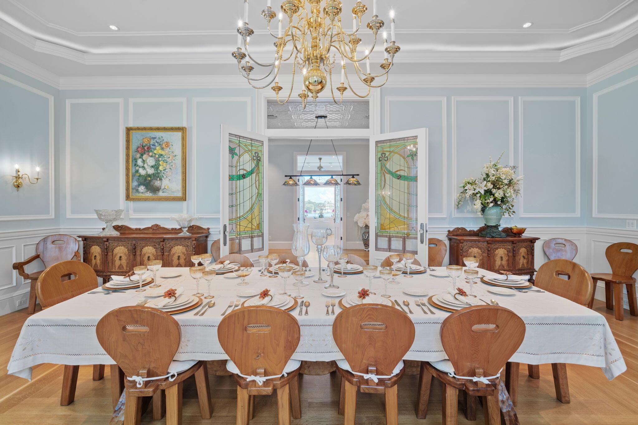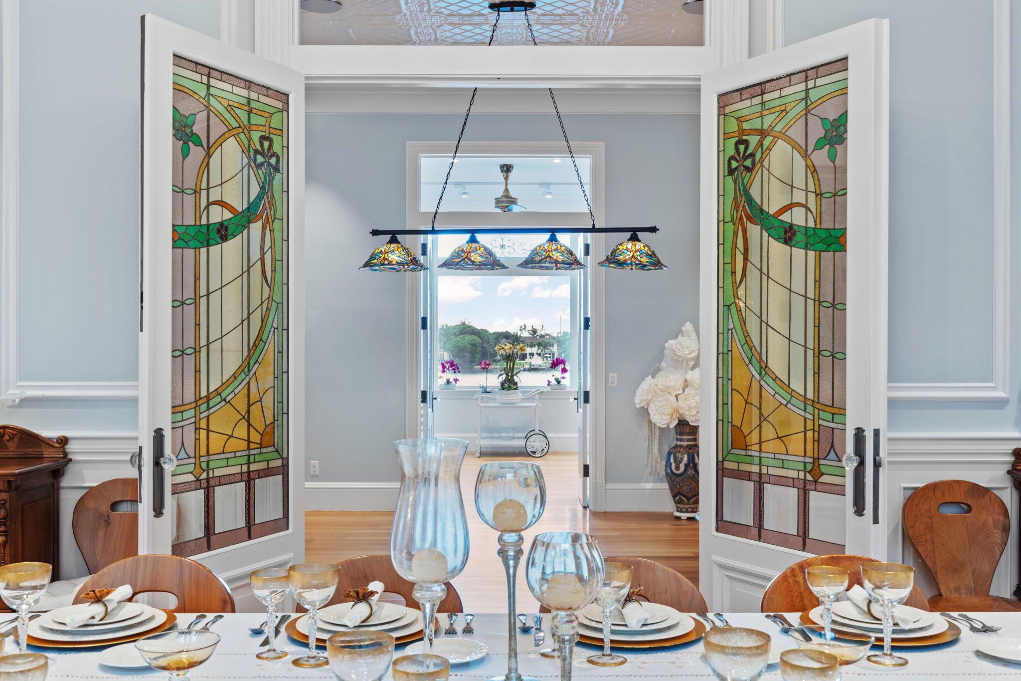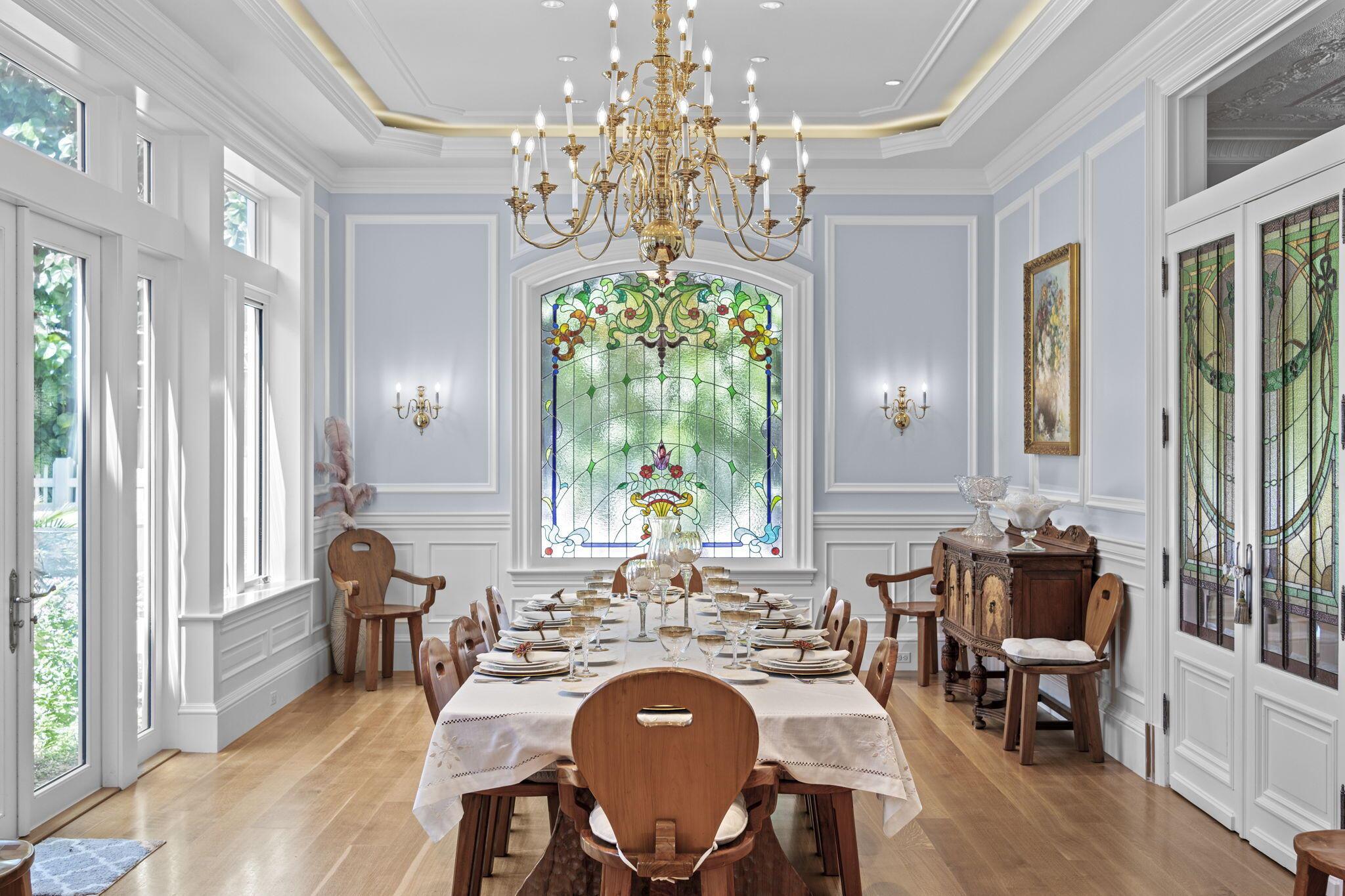 Welcome to Anglesea Estate, where timeless European architecture meets modern coastal luxury. Built in 2016, this architectural masterpiece offers 200 feet of elevated Intracoastal frontage, blending classic craftsmanship with contemporary sophistication for a truly distinguished South Florida lifestyle.Inside, every detail reflects impeccable quality and artistry from custom millwork, exquisite hand carved Carrera marble fireplace, and Murano chandeliers to sweeping water views from nearly every room. The chef's kitchen features dual walk-in pantries and premium finishes. The primary suite includes a fireplace, dual en-suites and walk-in closets, while each bedroom suite enjoys broad open terraces. A 3 story home elevator ensures effortless access throughout.