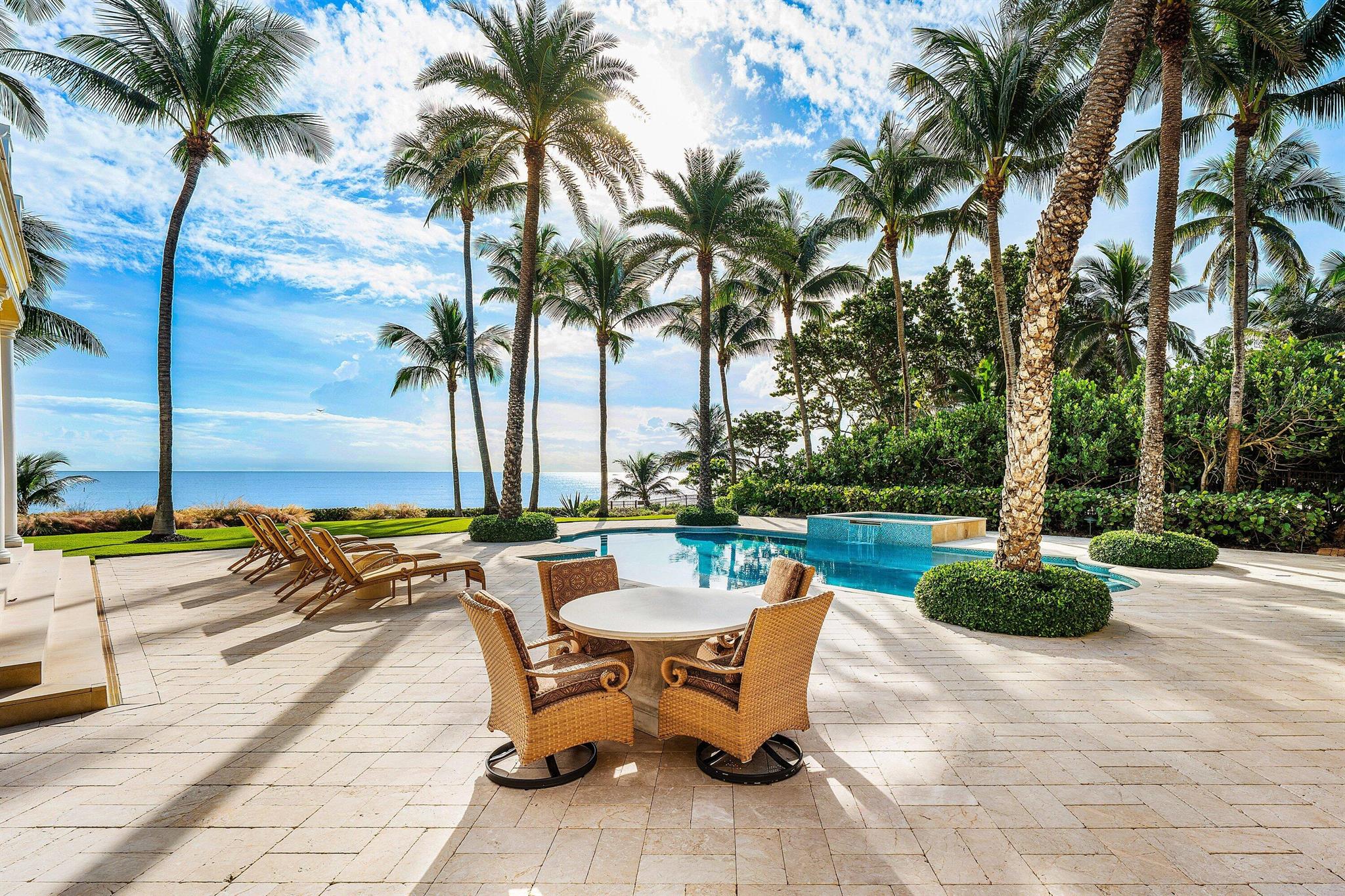 This gated estate is perfectly positioned on over two acres of prized Ocean-to-Intracoastal property along prestigious Hillsboro Mile. One of the largest parcels on Hillsboro Beach with an intercoastal guest house. This exceptional residence offers 200ft on both the Atlantic Ocean and 200ft of sheltered dockage on the intercoastal waterway. Privacy, security, and garden and water views from nearly every room.Inspired by classic Bermuda architecture, the main residence is situated directly on the ocean and features a four-car garage, private fitness studio, elegant clubroom, and a stunning chef's kitchen with a walk-in pantry. Soaring ceilings and sun-drenched interiors create an effortless flow to the outdoor living areas, where an expansive pool terrace awaits.