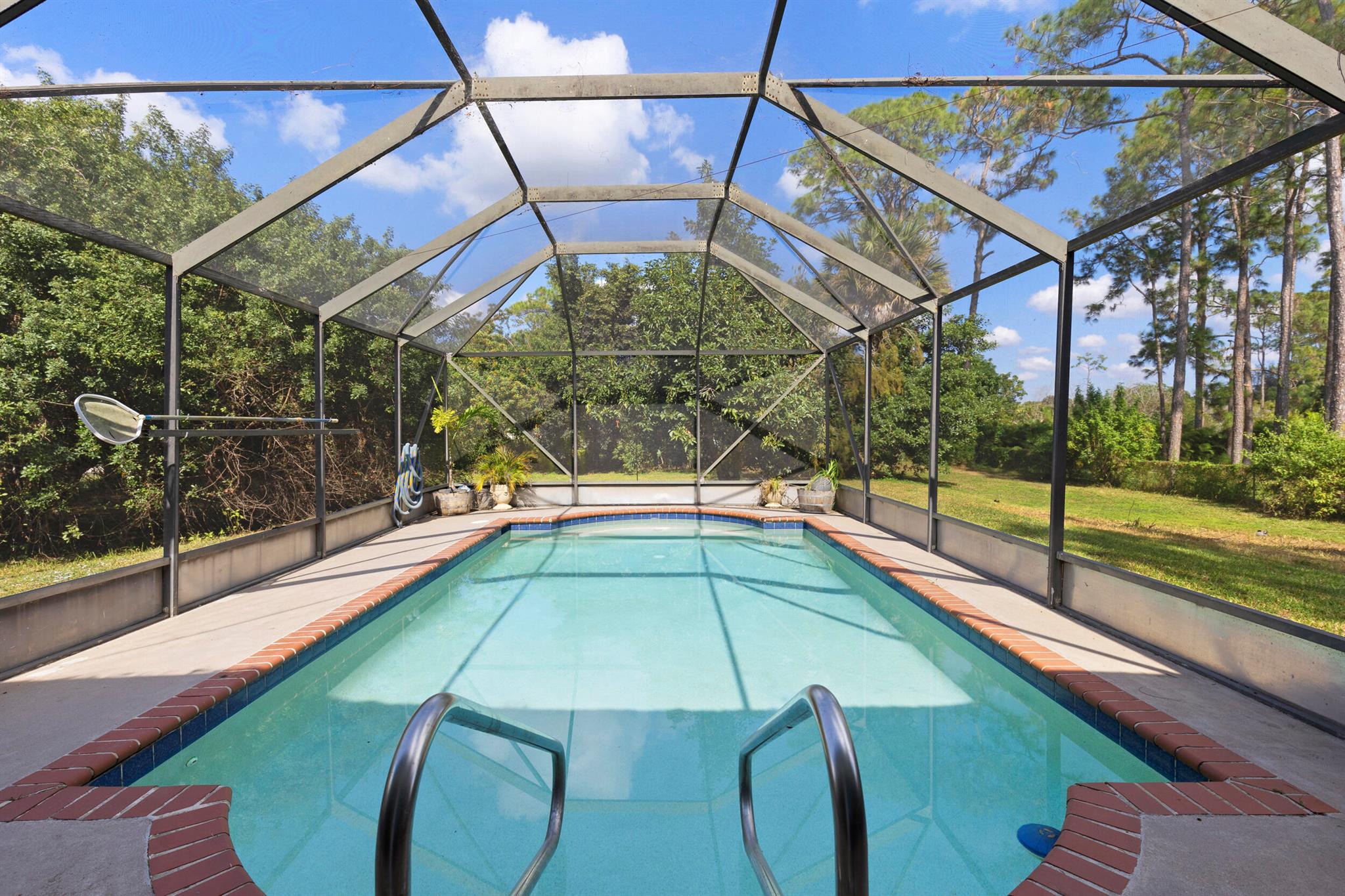 Least-expensive pool-home opportunity in The Acreage! This home will be actively listed for ONLY two weeks. Two open houses scheduled; once completed we will solicit Highest-and-Best offers. Positioned on a fully-fenced, corner lot, this residence features 18″ ceramic tile throughout the entire home. The kitchen boasts granite counters, stainless-steel appliances, and overlooks a large screened pool & patio area -- complete with a pass-through window for effortless entertaining. Bathrooms also showcase granite counters. The expansive screened and covered patio allows you to relax, entertain and cook outdoors -- free from bugs -- while your pool serves as the centerpiece of this inviting indoor-outdoor lifestyle.