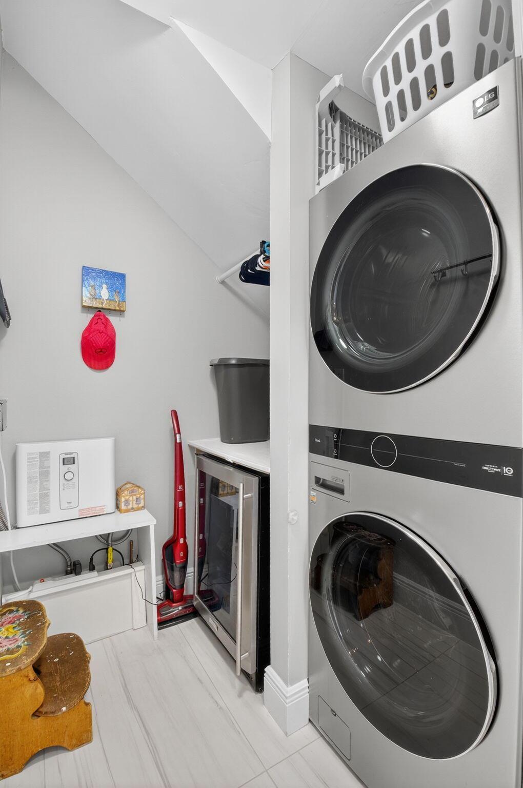 Enjoy an elegant, modern townhouse lifestyle on the intracoastal, with beach access! A dramatic double-height living room showcases curved, floor-to-ceiling impact glass windows with motorized shades. Watch breathtaking sunsets and the boats going by from your terrace, living and dining room, kitchen, office and primary bedroom! Upstairs is luxurious cherrywood flooring, frosted glass French doors and ample closets! The Office is next to a grand primary suite, with an oversized spa-inspired bath. The 2 guest suites have terraces, modern baths with inlay tiles and glass shower enclosures. Entertain alfresco on the expansive deck and barbecue area with a retractable awning. A 20-foot boat lift holds up to 10,000 lbs. The side garden features a Tiki hut and a convenient day dock.
