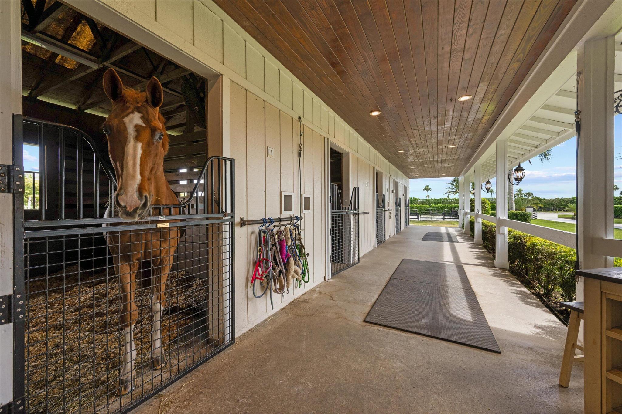 Experience refined equestrian living on this exquisite Wellington estate. Set on a tranquil corner lot with breathtaking sunsets, the property offers 11 stalls (with room to expand), 2 wash racks, a newly upgraded GGT arena, and 8 lush paddocks. The elegant barn features tongue-and-groove ceilings, superior lighting, and a professional layout. The fully renovated 4BR/2BA main home and 2BR/1BA cottage shine with Carrara marble, gold accents, and designer finishes throughout. All structures boast new metal roofs. Bordering the Preserve with dual-gated access, this private, turn-key property blends sophistication and serenitya"an exceptional Wellington gem.