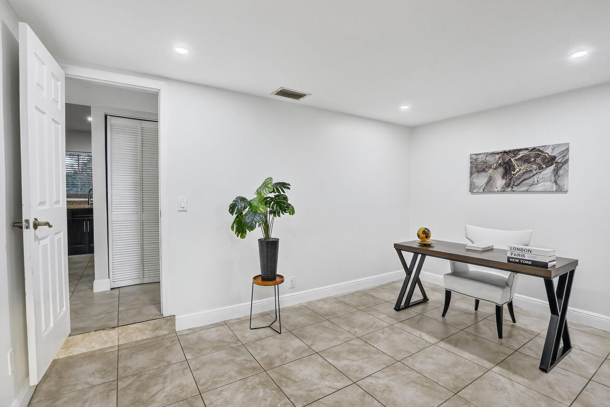 Beautiful 3 bedroom, 2.5 bathroom, 2 story home in the well-desired City of Davie. Spacious, move-in ready with many lovely features such as roof (2023), recently painted exterior, high ceiling and brand new appliances. Downstairs: Tiled, modern eat-in kitchen with stainless steel appliances and granite countertops; a huge bonus room that may be used as an office, gym or even as a 4th bedroom; Florida room; living room; dining room and a half bath. Upstairs: Wood laminate floors with primary bedroom and primary bathroom and his and her closet; 2 additional bedrooms and a second bathroom. Other features: large screened, L-shaped patio and a huge fenced backyard with fruit trees overlooking the lovely view of the canal. Close to the beach, shopping malls, schools and highways.