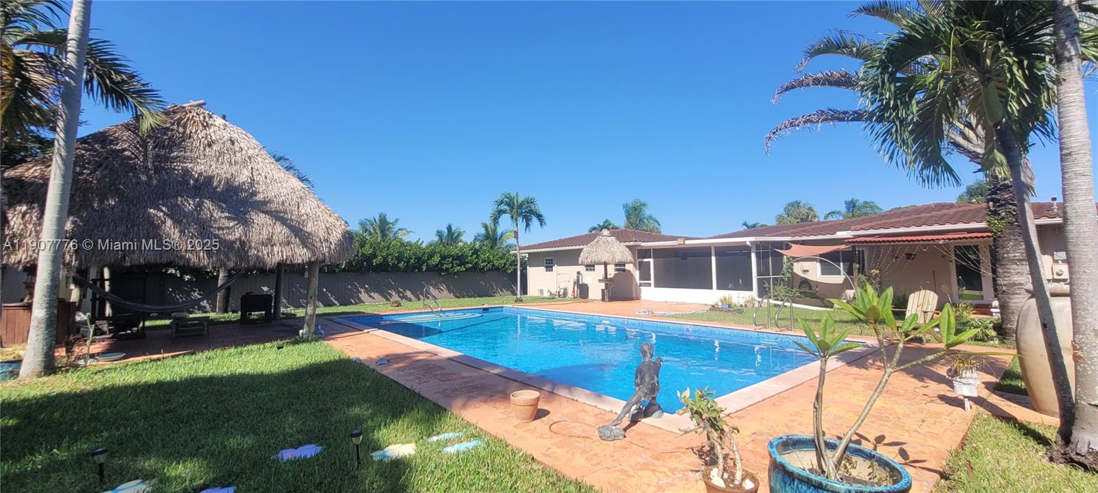 Spacious remodeled home in quiet suburban neighborhood just west of Downtown Hollywood. Huge lot with a Tiki, pool, screened patio and storage room. The garage has been partially converted into an additional room with it's own bathroom and entrance. Features a carport for 2 vehicles and a circular driveway that fits plenty of cars. Completely redone kitchen with top tier appliances, granite countertops and custom cabinetry with plenty of storage space. Gorgeous porcelain floors throughout and real wooden floors in all the bedrooms. It has high impact windows and doors, new AC and water heater, new roof and many more details you'll love. A must see!