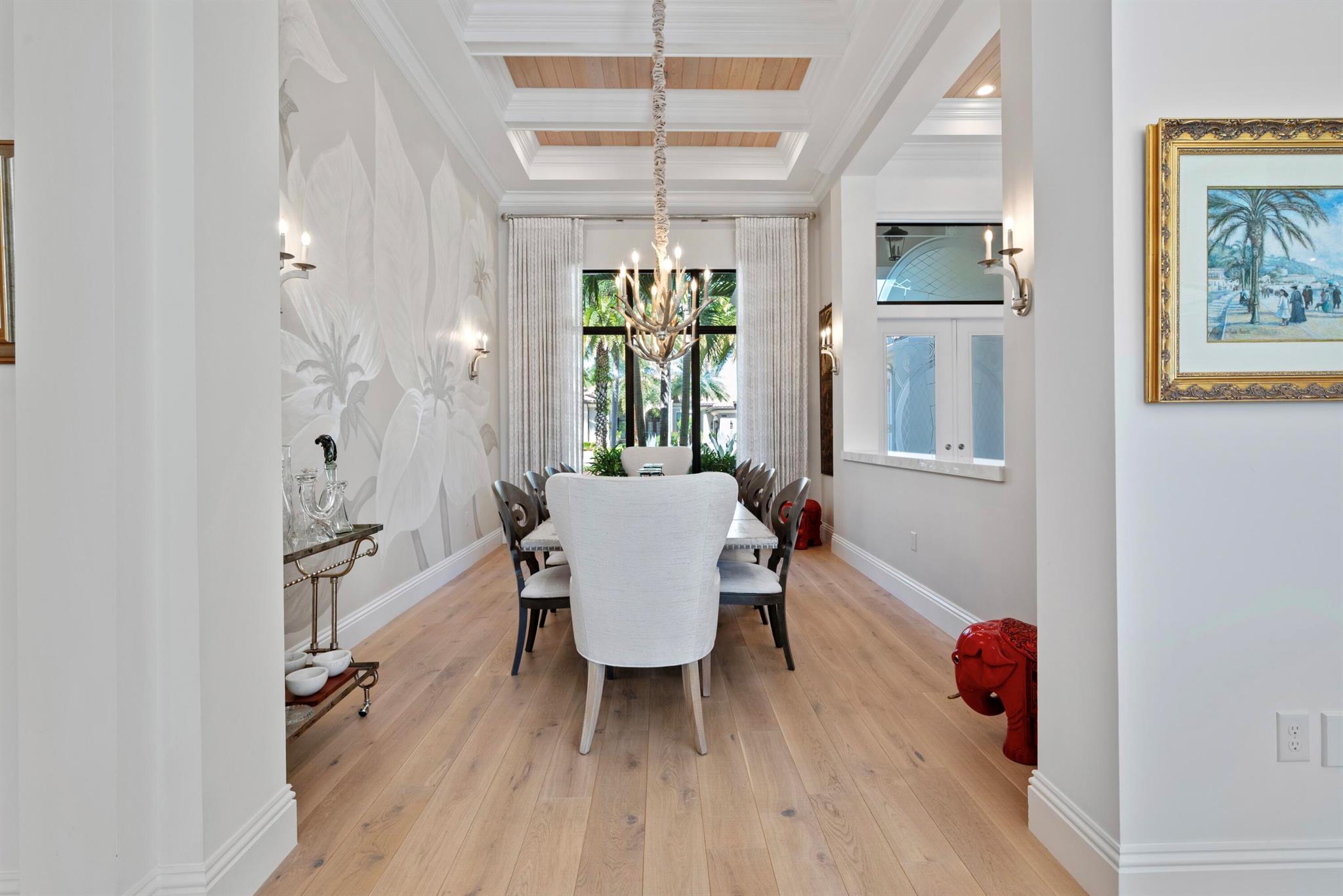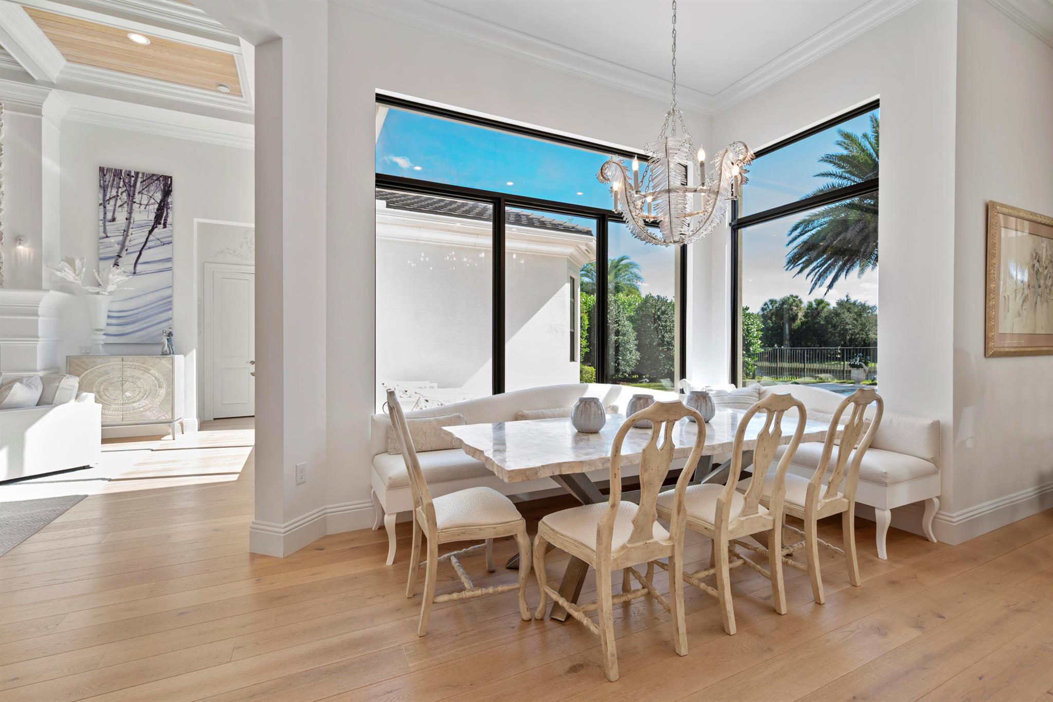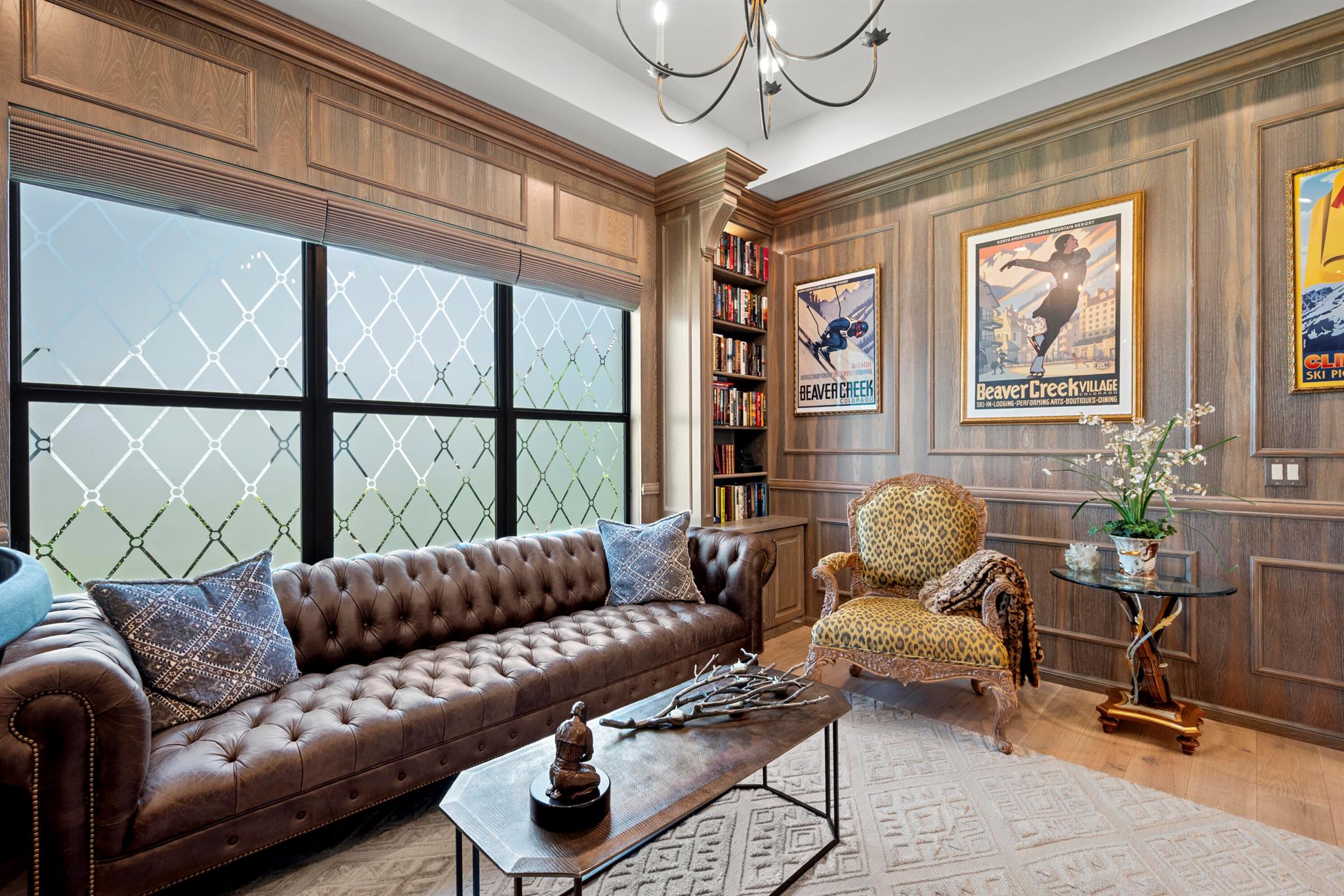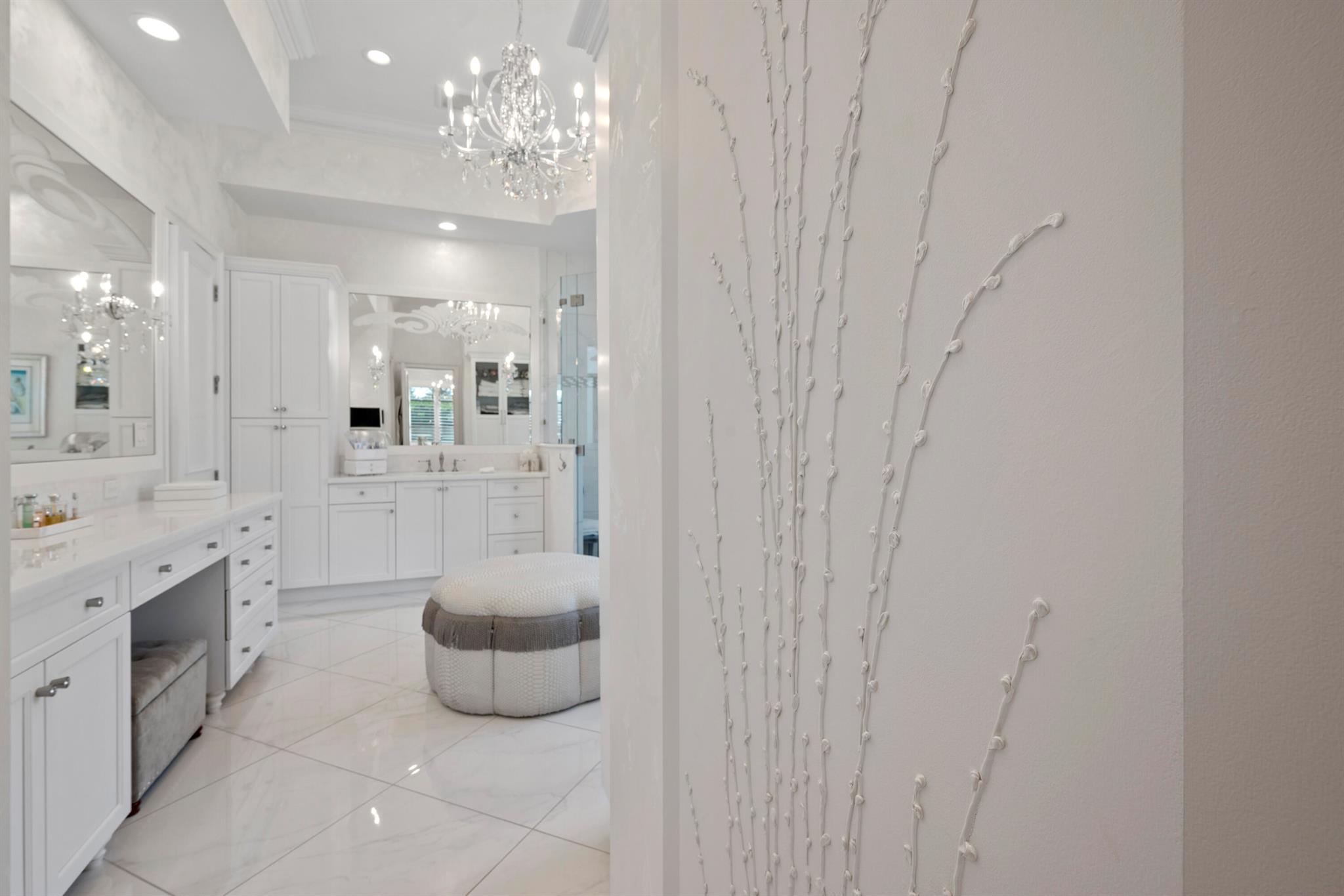 Introducing a residence in Seven Bridges that truly rises to the level of the most discerning buyer. Thoughtfully designed and impeccably crafted, this single-story estate embodies refined living, blending elevated finishes, artisanal details, and effortless functionality to create a home that feels both luxurious and warmly livable. Take note throughout the home of the custom wall coverings, intricate ceiling treatments, etched glass accents, and artistic craftsmanship celebrated in every detail.The moment you enter, peaceful water views unfold through wide, sun filled windows, setting an immediate tone of serenity. Grand volume ceilings give the home a sense of scale and drama, while a gentle neutral palette blends with natural light to create a calming and inviting