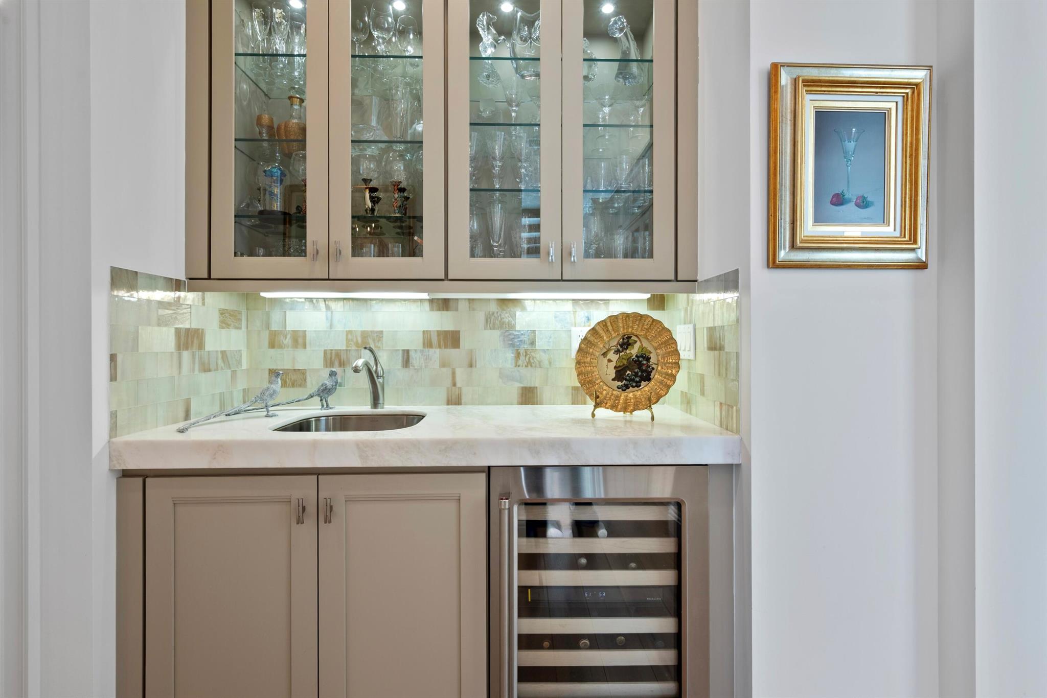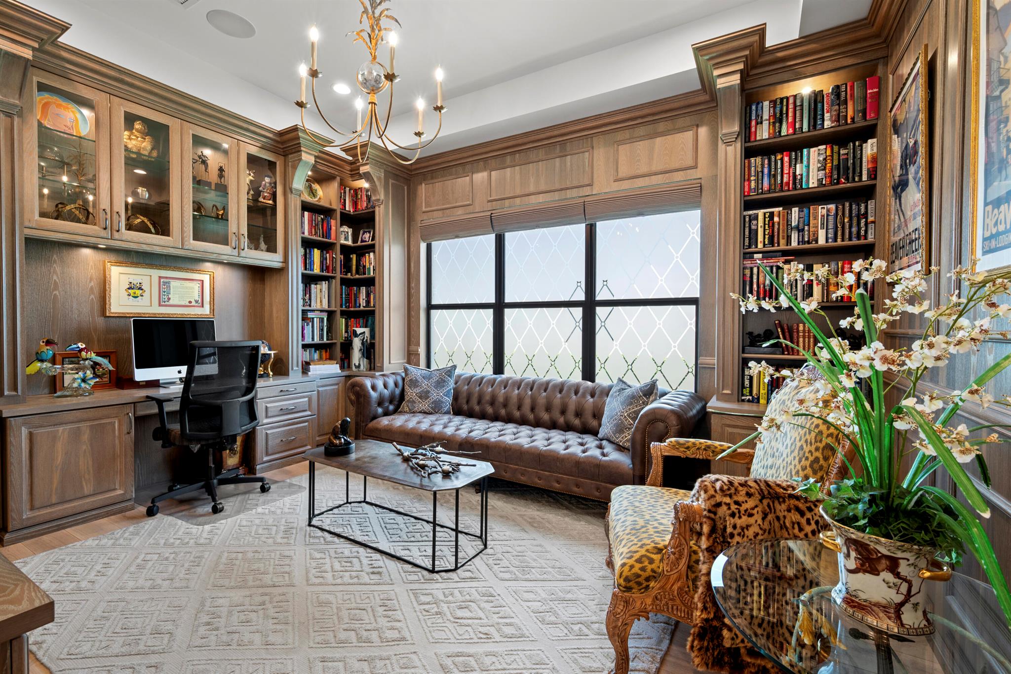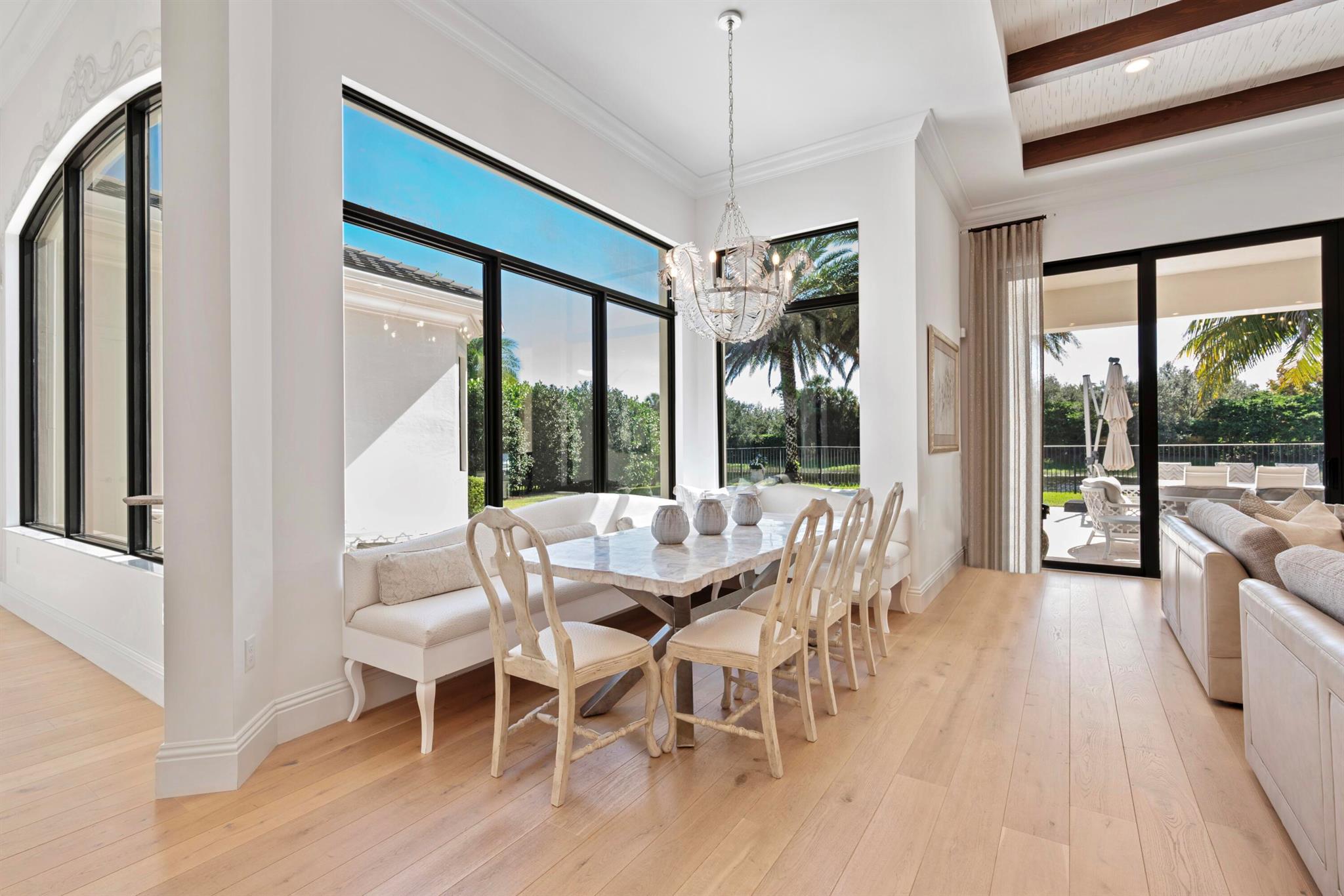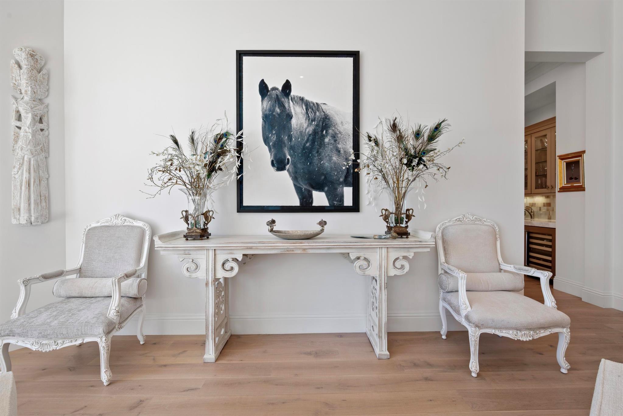 Introducing a residence in Seven Bridges that truly rises to the level of the most discerning buyer. Thoughtfully designed and impeccably crafted, this single-story estate embodies refined living, blending elevated finishes, artisanal details, and effortless functionality to create a home that feels both luxurious and warmly livable. Take note throughout the home of the custom wall coverings, intricate ceiling treatments, etched glass accents, and artistic craftsmanship celebrated in every detail.The moment you enter, peaceful water views unfold through wide, sun filled windows, setting an immediate tone of serenity. Grand volume ceilings give the home a sense of scale and drama, while a gentle neutral palette blends with natural light to create a calming and inviting
