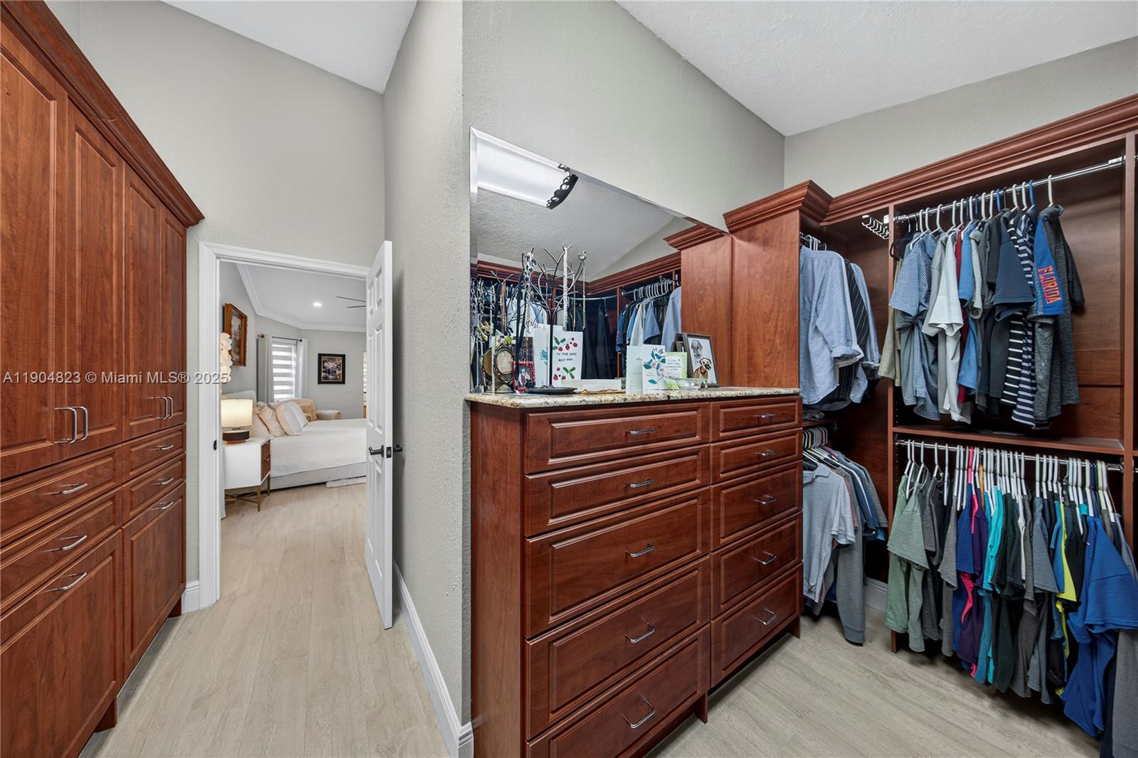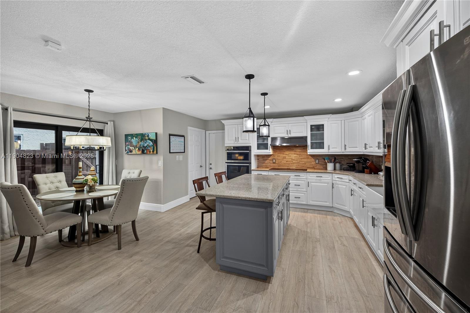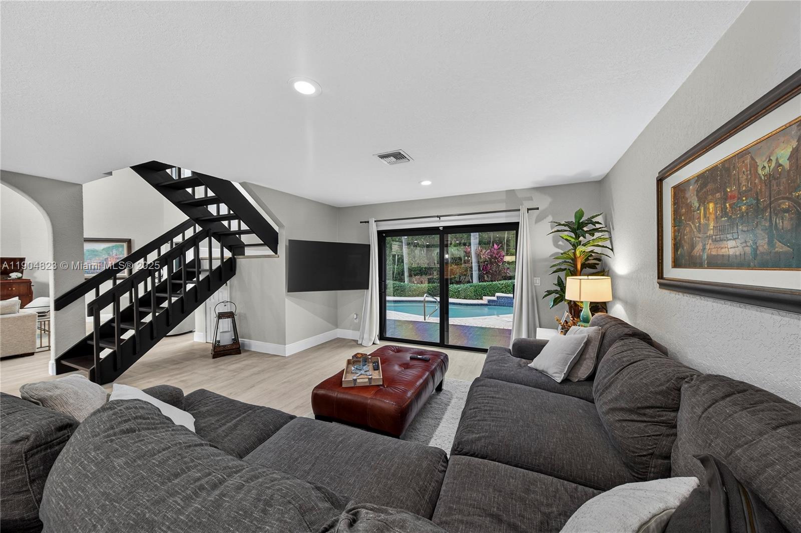 Absolute Gem in the Gated Community of La Joya. Welcome to this beautifully updated home located in the exclusive La Joya gated community, featuring only 67 residences in a highly sought-after area. This stunning property has been meticulously maintained and upgraded throughout, offering modern comfort and exceptional style. Step inside to discover soaring 18 foot ceilngs, brand-new flooring, elegant baseboards, and freshly painted interiors that create a bright and inviting atmosphere. Downstairs large master suite. The redesigned kitchen is a showstopper, complete with custom cabinetry and a thoughtfully organized pantry — perfect for both everyday living and entertaining. Upstairs, the renovated bathroom adds a touch of luxury with contemporary finishes and quality craftsmanship.