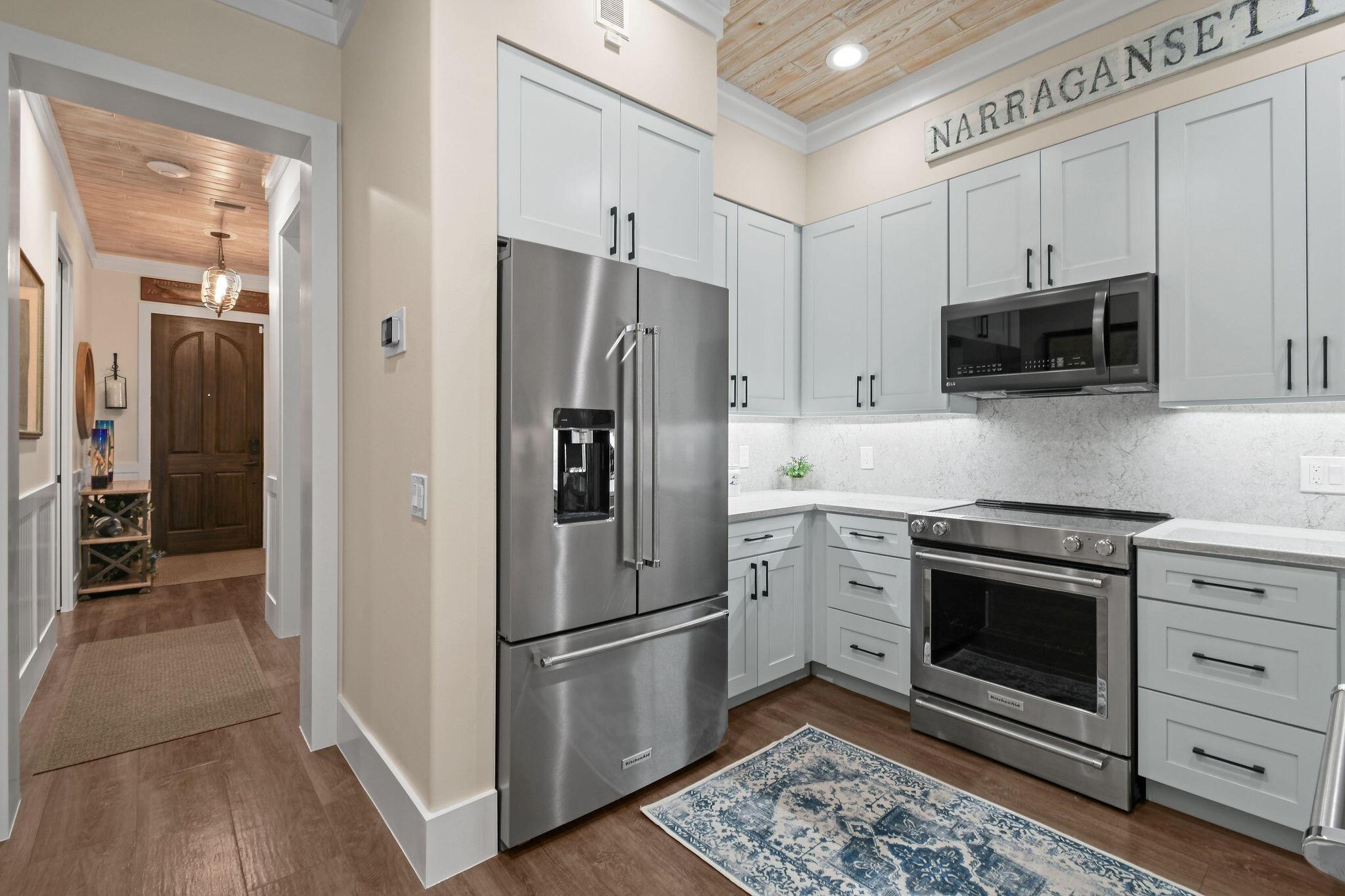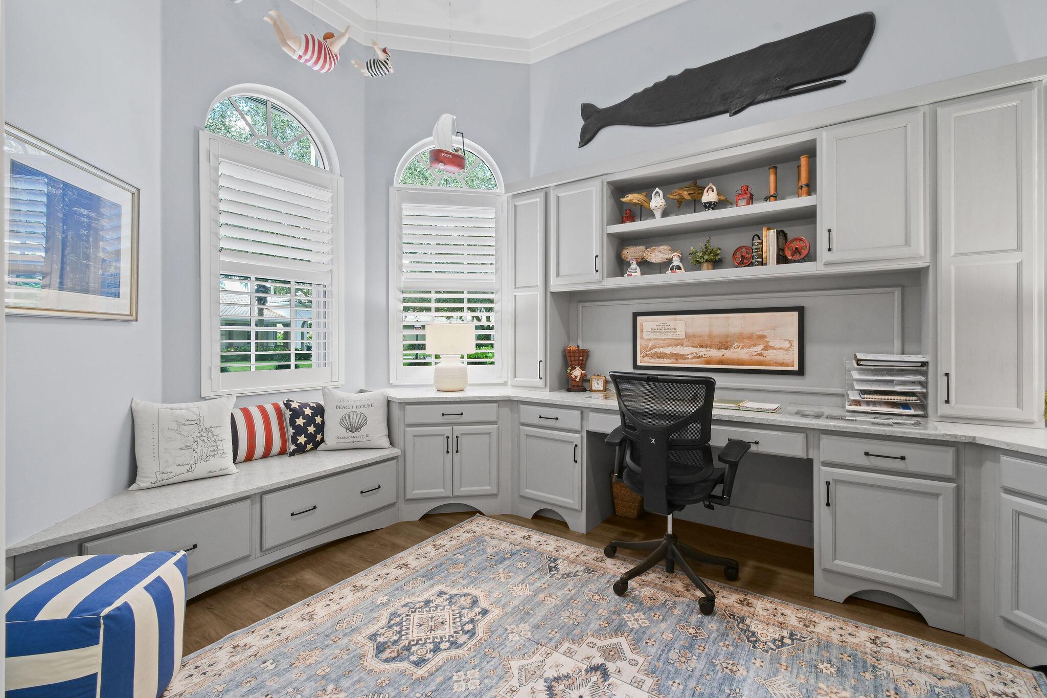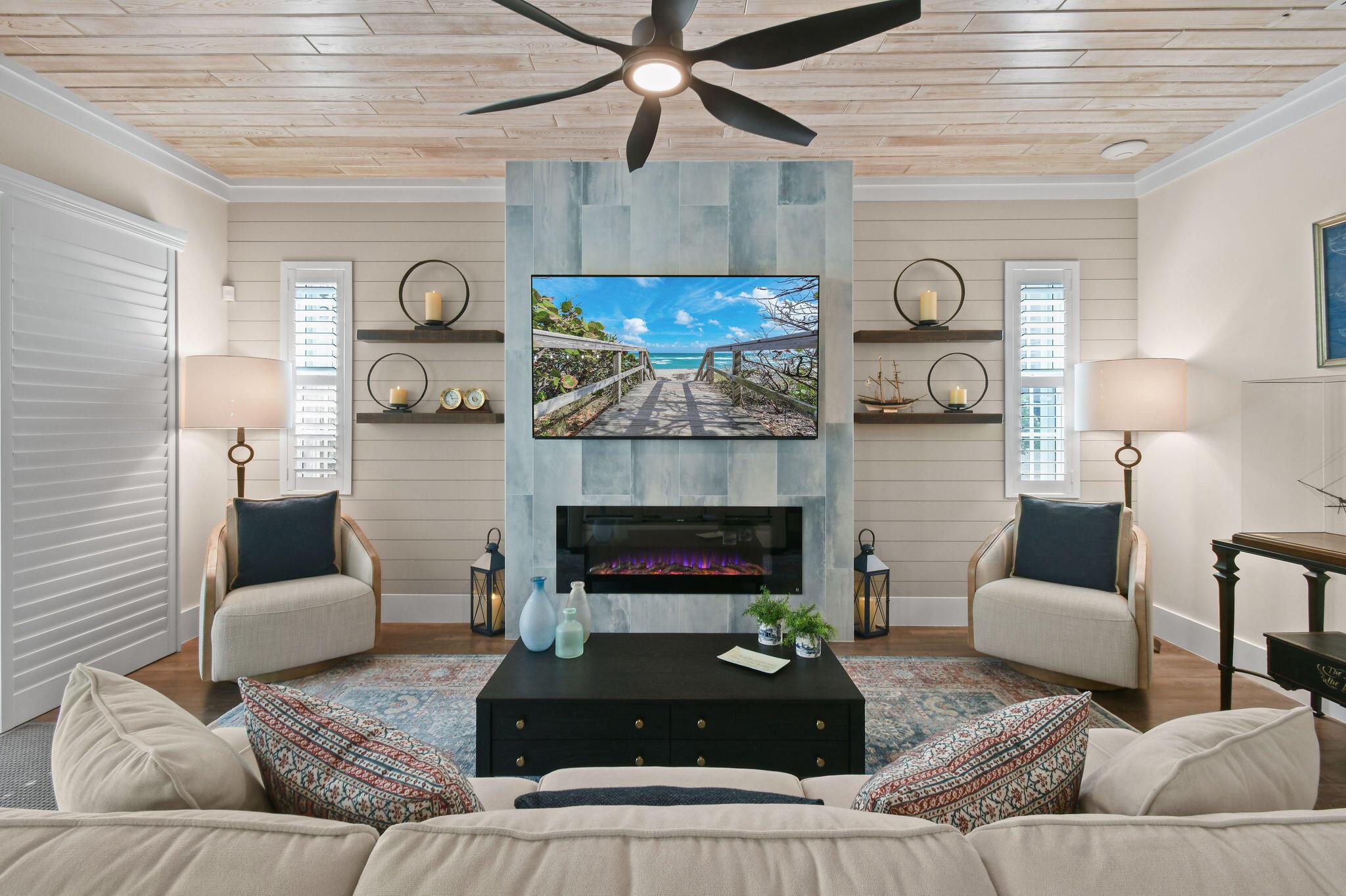 This home is truly a SHOW-STOPPER! This 1-story home was renovated from the studs in, with no expense spared. The home offers 3 spacious beds, a designer office, two beautifully finished baths, and a 2-car garage. Step outside to your private oasis featuring a heated 20x12 pool surrounded by a nearly maintenance-free backyard and lush greenspace behind the home for added privacy. Inside, soaring ceilings with stunning cypress wood detail and luxury vinyl flooring create a warm, elegant atmosphere. The living room's custom fire feature serves as a dramatic focal point, adding both style and ambiance. A full home generator ensures peace of mind year-round. The home stands apart from anything else on the market. MUST SEE!