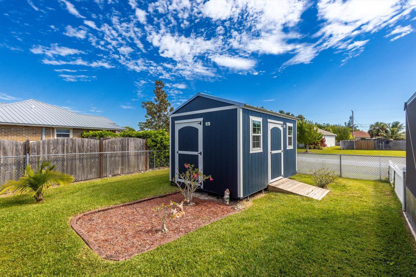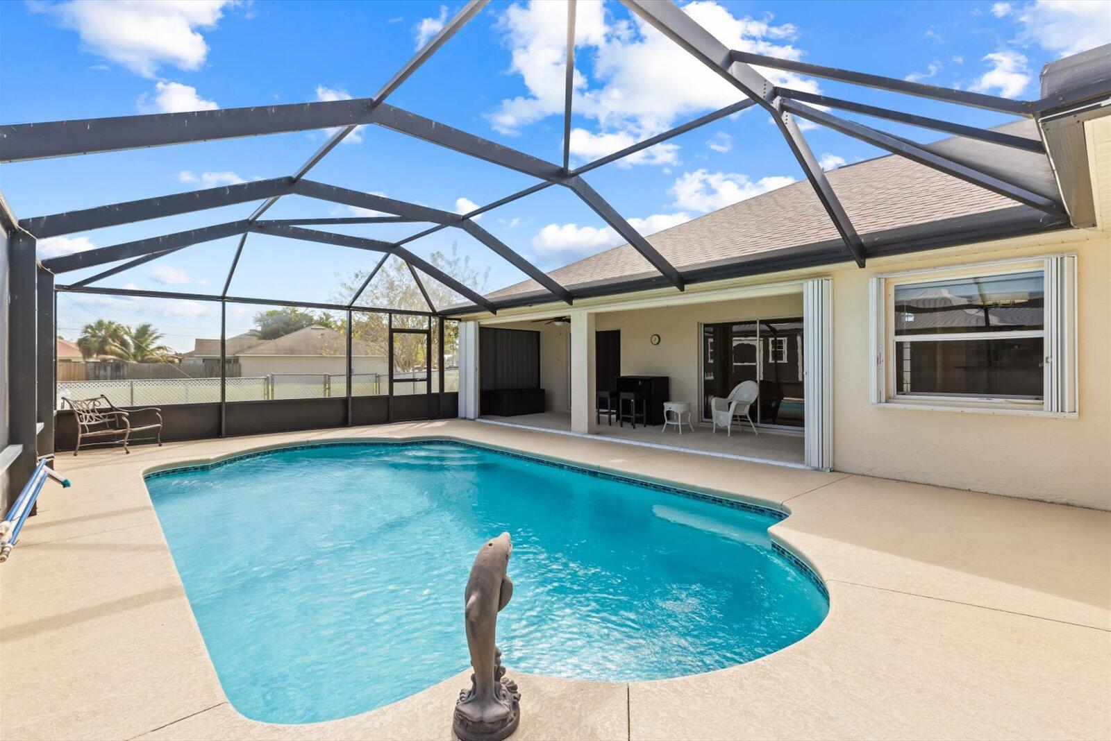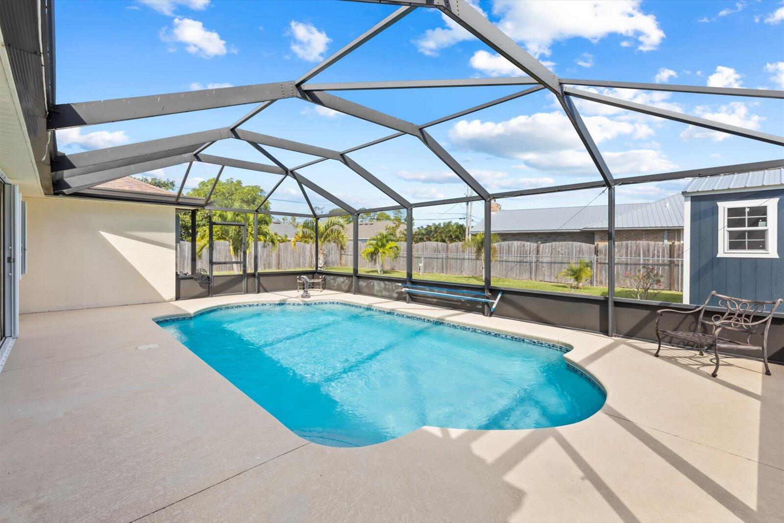 Premium Location, Impeccable Condition & Outstanding Value! Discover this Solid Concrete Block Home with a NEW Roof 2022! Prime improvements include a NEW Pool & Screened Enclosure (2018), AC system (2019), Water heater (2021), LG Washer & Dryer (2021) ++ Accordion Shutters & a 30AMP Generator hookup! The light & bright interior with Volume Ceilings & neutral paint tones flows through the Family Room & Kitchen to the Large-27'x 8'-Covered Lanai overlooking the Pool Area. The Gourmet Kitchen features oak wood cabinetry, granite counters +newer stainless steel appliances. Enjoy the fenced yard & corner property with an Oversized 10'x16' Shed (2023) with Impact windows. Truck, Boat, Pet Friendly too-ALL WITH NO HOA! Quick to I-95 **PLUS** Close to Tradition Square .