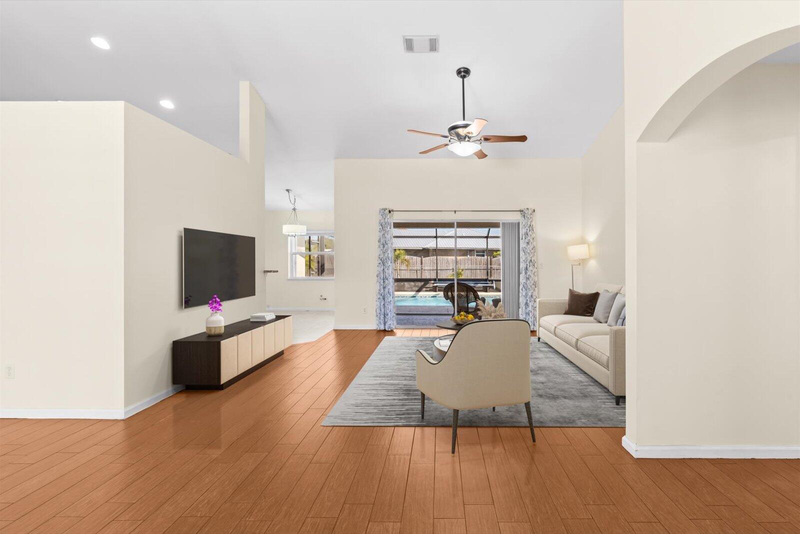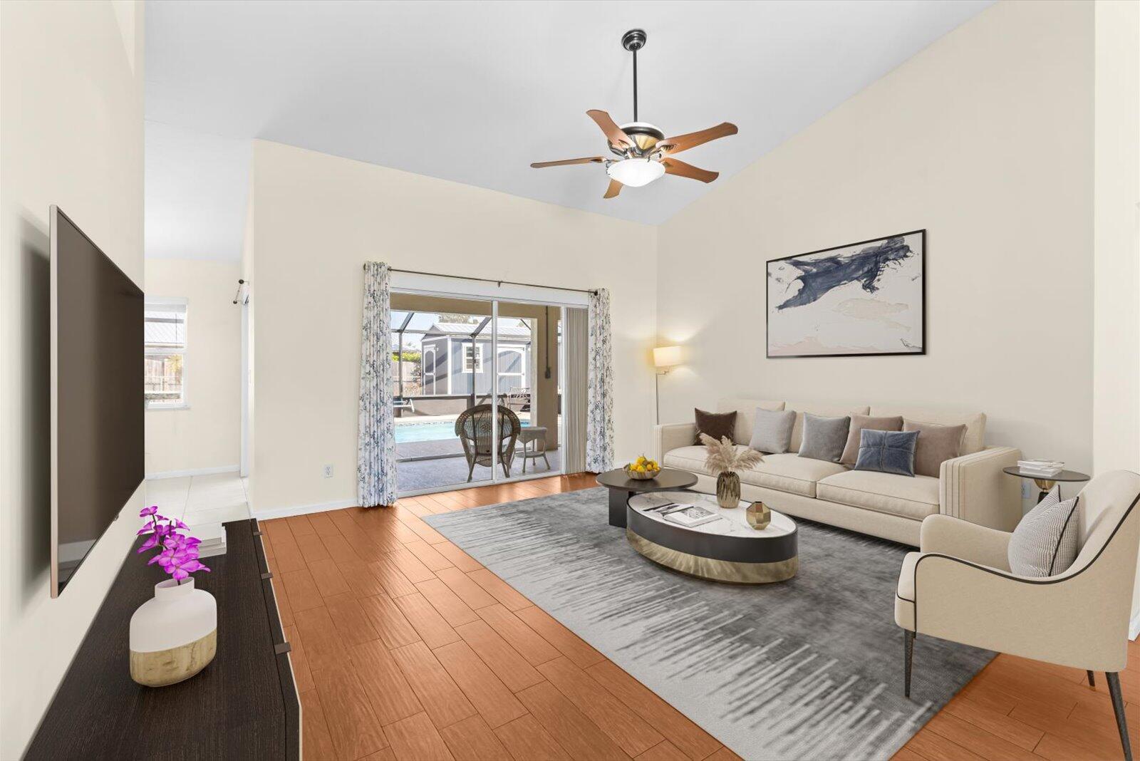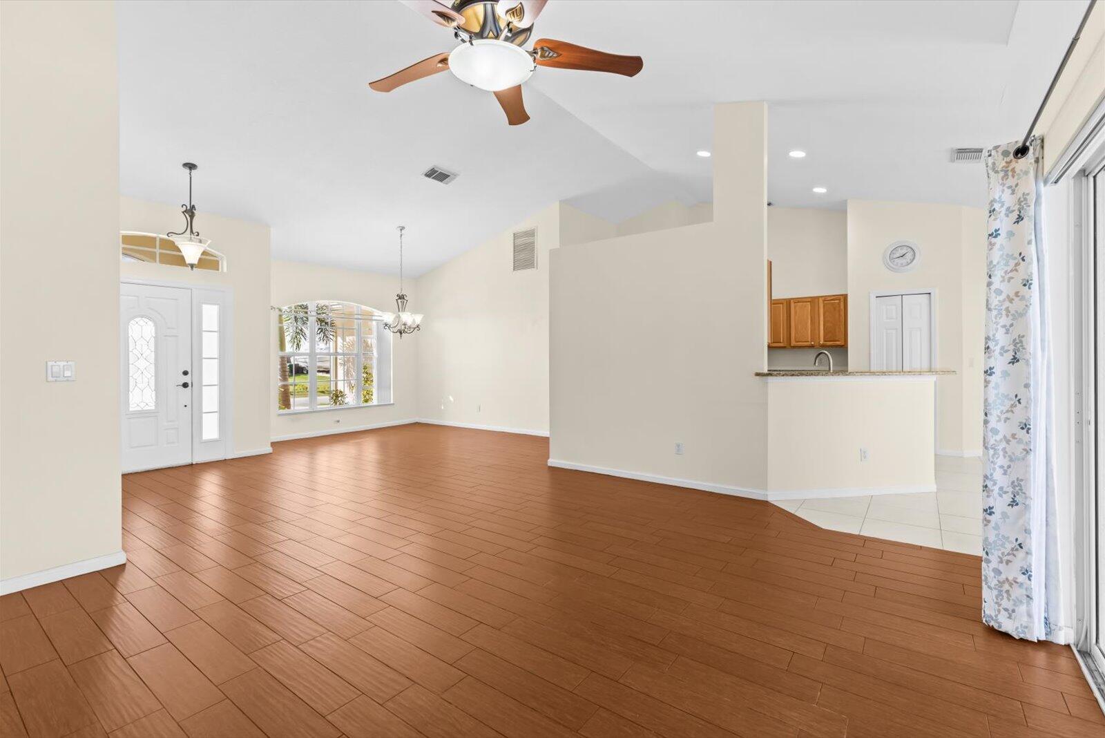 Premium Location, Impeccable Condition & Outstanding Value! Discover this Solid Concrete Block Home with a NEW Roof 2022! Prime improvements include a NEW Pool & Screened Enclosure (2018), AC system (2019), Water heater (2021), LG Washer & Dryer (2021) ++ Accordion Shutters & a 30AMP Generator hookup! The light & bright interior with Volume Ceilings & neutral paint tones flows through the Family Room & Kitchen to the Large-27'x 8'-Covered Lanai overlooking the Pool Area. The Gourmet Kitchen features oak wood cabinetry, granite counters +newer stainless steel appliances. Enjoy the fenced yard & corner property with an Oversized 10'x16' Shed (2023) with Impact windows. Truck, Boat, Pet Friendly too-ALL WITH NO HOA! Quick to I-95 **PLUS** Close to Tradition Square .