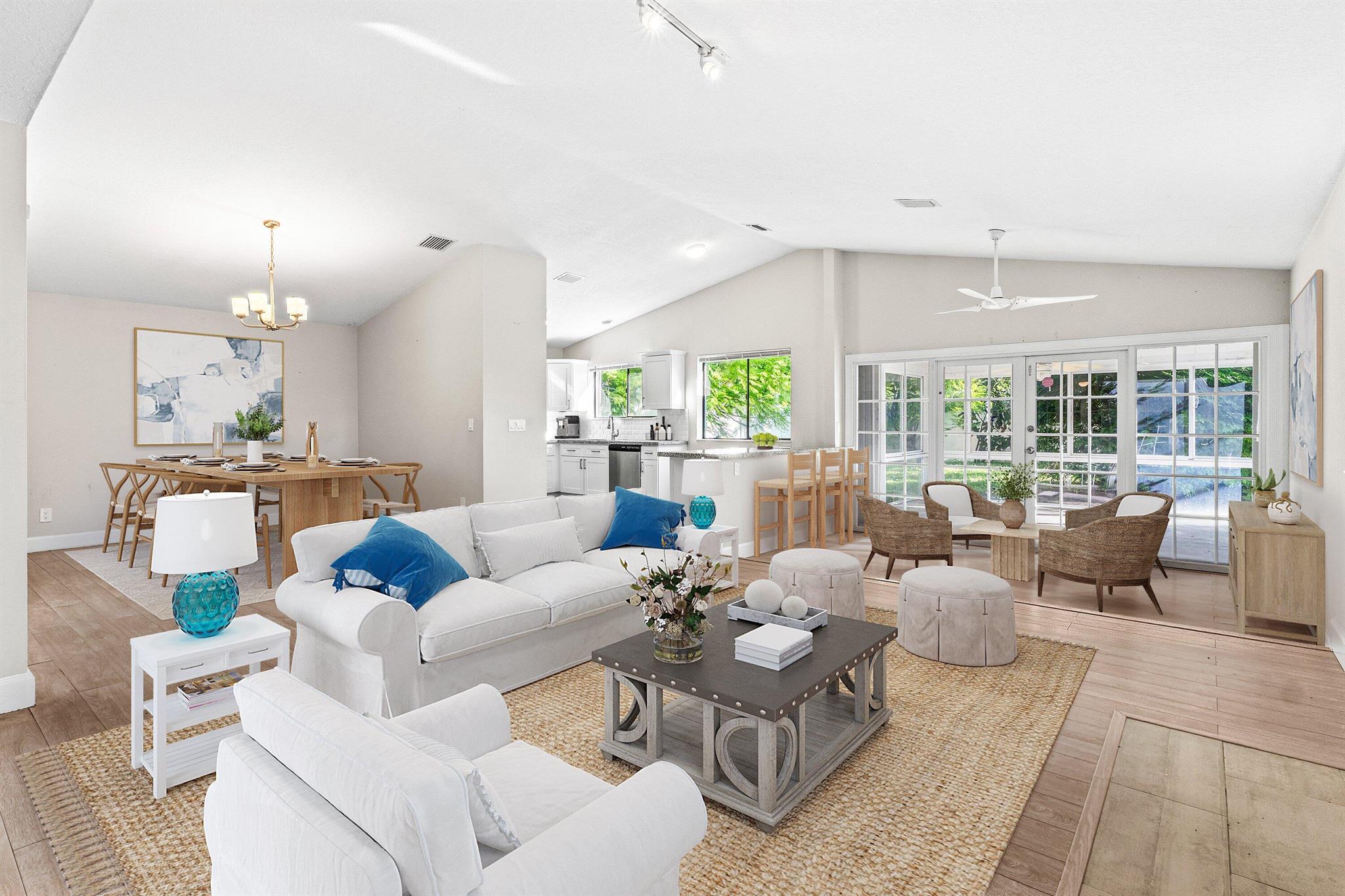 NEW TO MARKET:Updated Home with Oversized Lot!!Welcome to this light-filled contemporary home offering comfort, style, and modern upgrades throughout. Featuring 3 generously sized bedrooms and 2 updated bathrooms, this home has a spacious open-concept layout, perfect for both everyday living and entertaining.The modern open kitchen is a true highlight, complete with stainless steel appliances, white Shaker cabinetry with plenty of space for cooking and hosting guests. Adjacent are the large living and dining areas, filled with natural light and ideal for gatherings. The floor to ceiling herringbone tiled fireplace is a chic focal point. Through French doors you'll find a large screened patio, perfect for relaxing with family and friends. The 10,000+sf lot has room for a pool