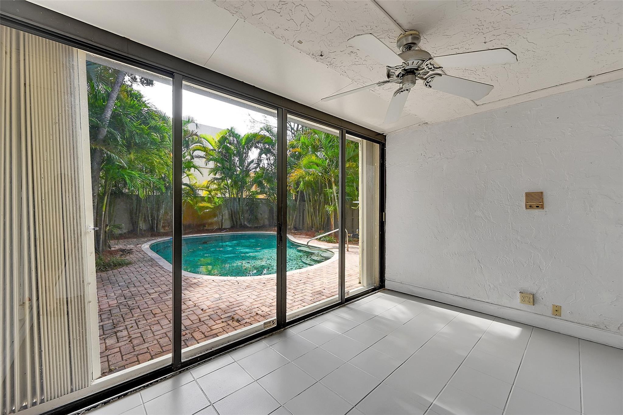 Completely updated 2BR/2BA townhouse with private pool and tropical landscaping. Features vaulted ceilings, large windows overlooking the backyard, granite counters, soft-close cabinetry, and newer stainless-steel refrigerator. Bathrooms recently updated with new vanities and flooring. One bedroom is on the ground level; the upstairs master includes an enclosed patio and walk-in closet and has new flooring. Additional highlights include laminate flooring, loft area, covered parking for two or more cars, accordion shutters, indoor and outdoor storage, and brick pavers surrounding the pool — perfect for entertaining or relaxing in your private oasis.