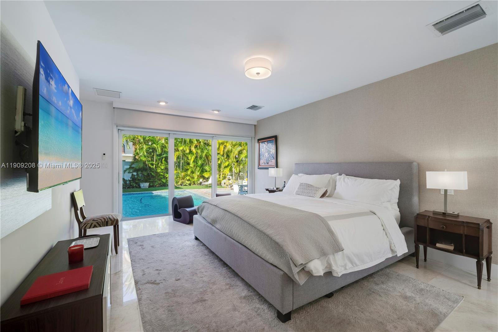 Welcome to 1616 S Bayshore Dr—a beautifully maintained residence offering 4 bedrooms, 4.5 bathrooms, and 3,500 SF of comfortable space in the heart of Coconut Grove. The home features a large foyer that opens to generous living and dining areas, including a spacious family room. Bright, open-concept layout with modern lighting, marble flooring, stainless steel appliances, double ovens, sleek cabinetry, and ample storage. The secluded primary suite is located in its own wing, providing privacy and tranquility, and includes a marble bath with Jacuzzi tub, walk-in shower, and large vanity with abundant storage. Lush, manicured landscaping surrounds the property with a private pool, multiple patio and terrace spaces ideal for relaxing or entertaining.