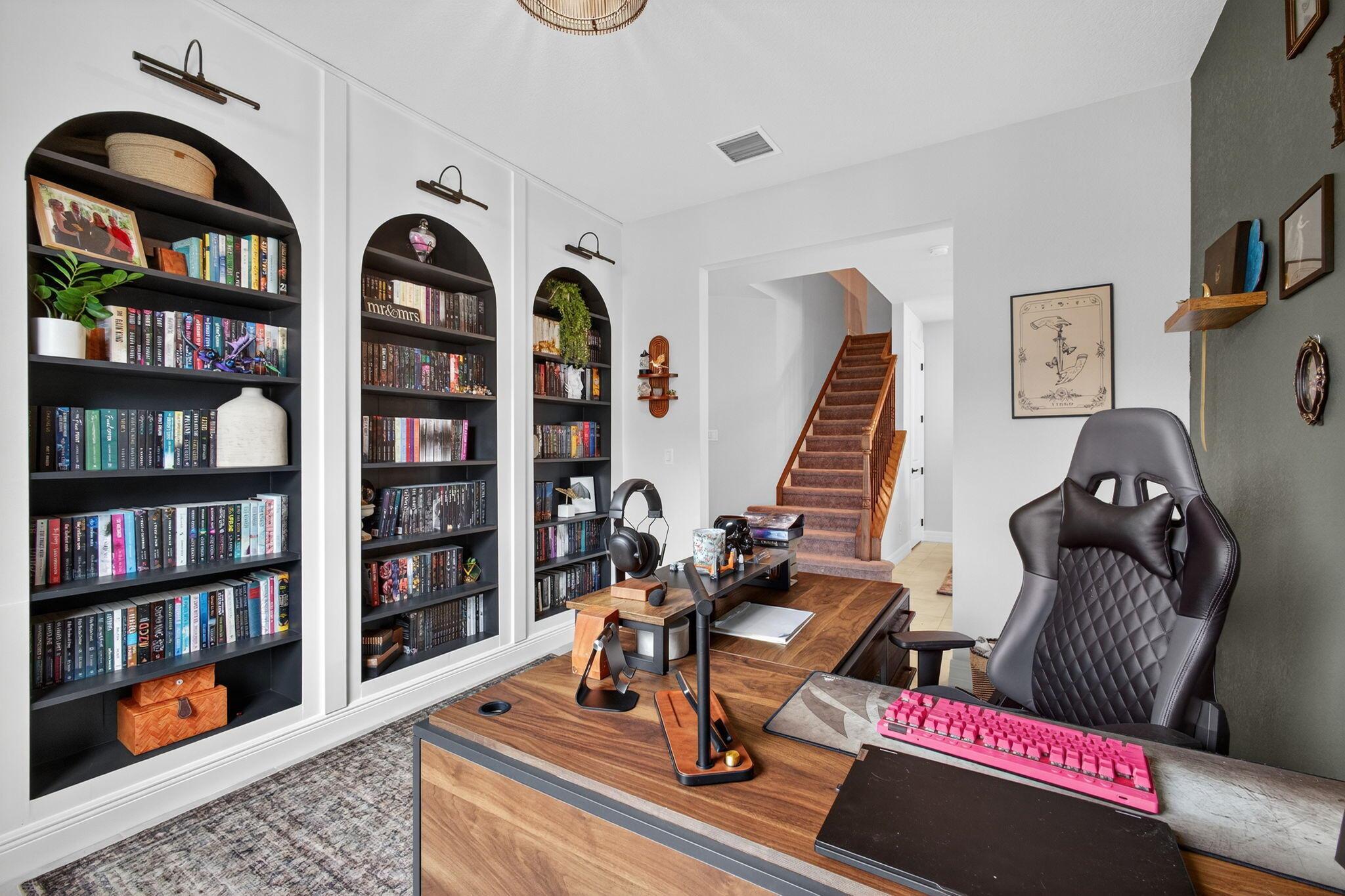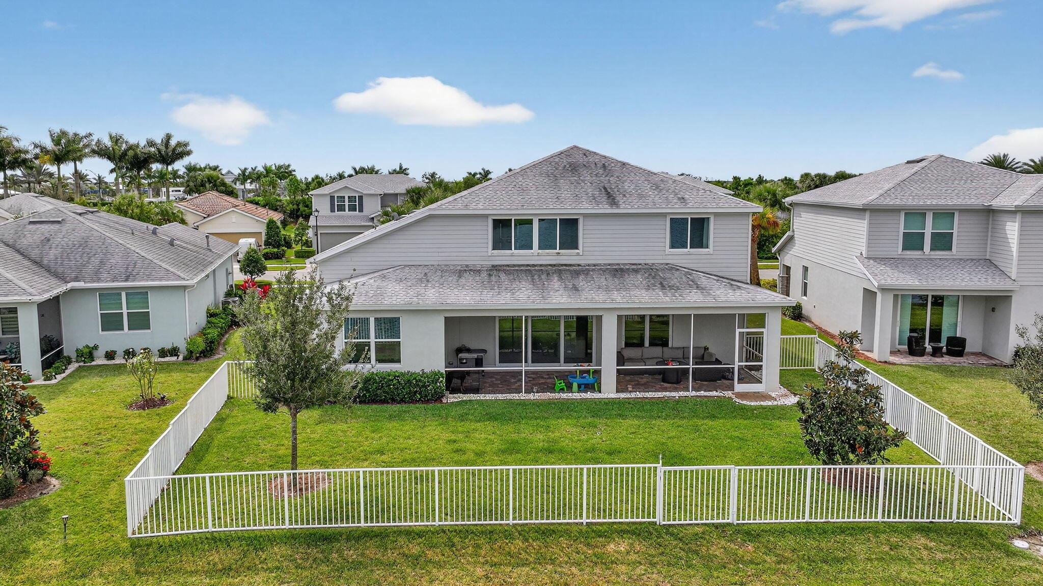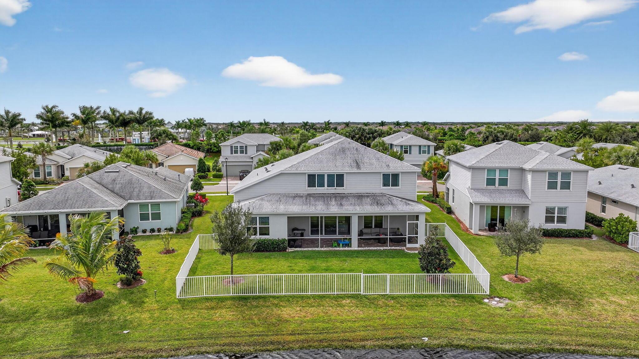 Opportunities like this don't come often--over 4,200 sq ft of lakefront living, priced well below competing homes. This expansive 5-bedroom residence offers incredible space, modern comfort, and one of the strongest values in all Heron Preserve at Tradition in PSL. Enjoy peaceful lake views from this beautifully designed home featuring all-impact windows and doors a fenced yard, and a screened lanai with a triple-panel sliding glass door that opens to seamless indoor-outdoor livingThe main level features the primary suite, plus two additional bedrooms, three full baths, and a private office with custom built-ins. The expansive kitchen is a chef's delight with quartz countertops, a natural gas range, walk-in pantry, and abundant workspace.