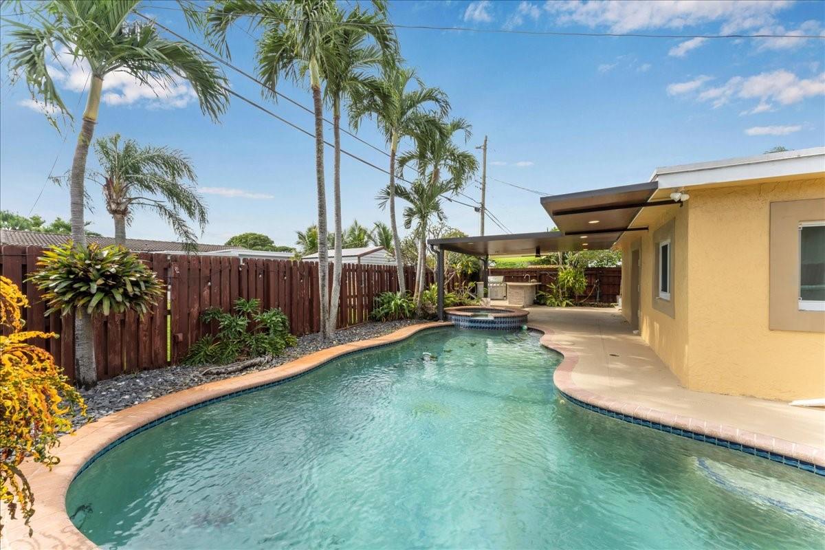 Welcome Home! This beautifully updated 3-bedroom, 2-bath home offers comfort, style, & convenience in a prime location. Enjoy an open-concept floor plan designed for family/friend gatherings & everyday living. The 2021 flat tile roof, PGT impact windows and doors, PVC plumbing, 2025 HVAC & updated electrical system provide peace of mind and excellent energy efficiency. Step outside to your private backyard oasis, featuring a sparkling heated saltwater pool, custom pergola, & a California-style outdoor kitchen — perfect for entertaining and year-round barbecues. Additional features include a 1-car garage, ample storage, & no HOA, giving you the freedom to truly make this home your own. Centrally located near major highways, parks, & top restaurants — this home truly has it all!