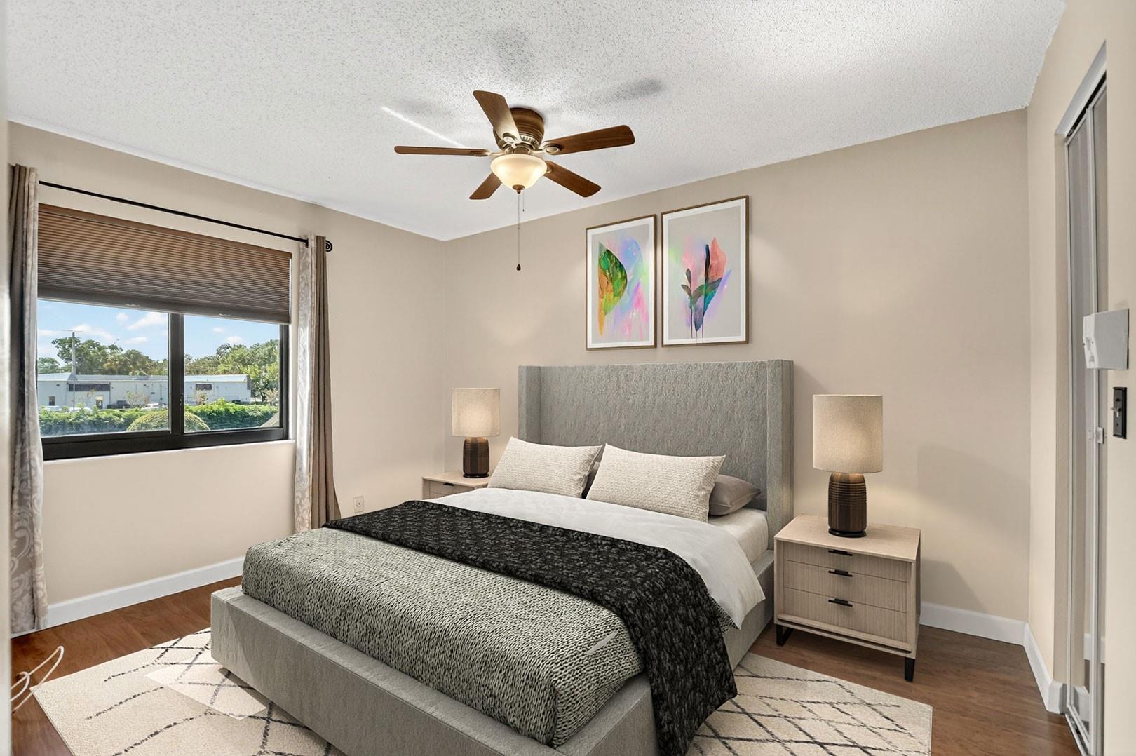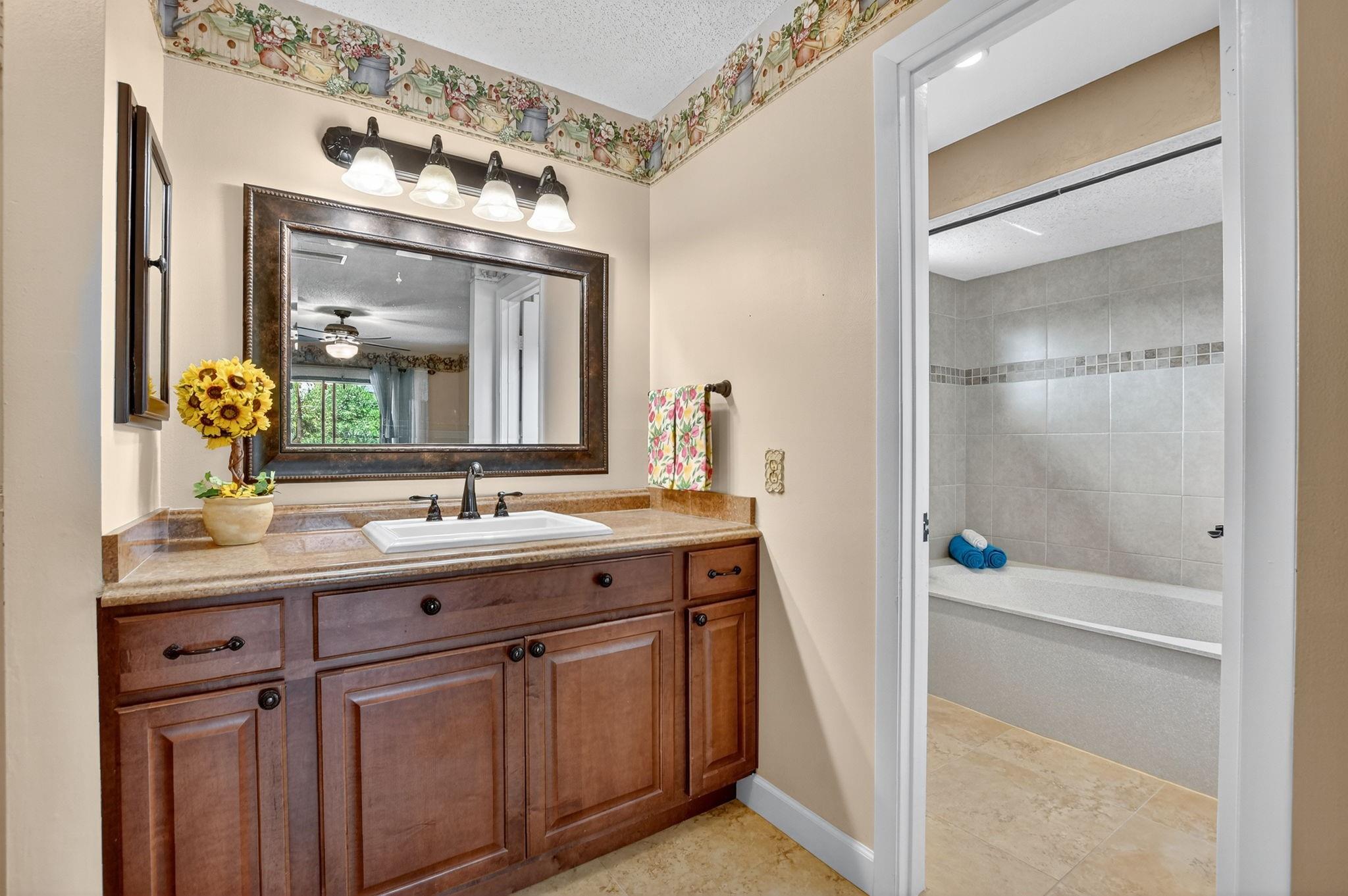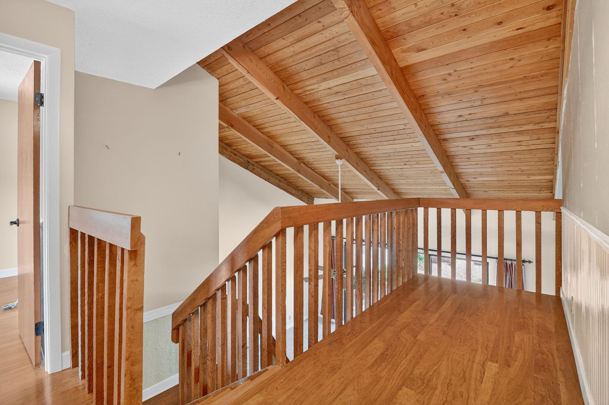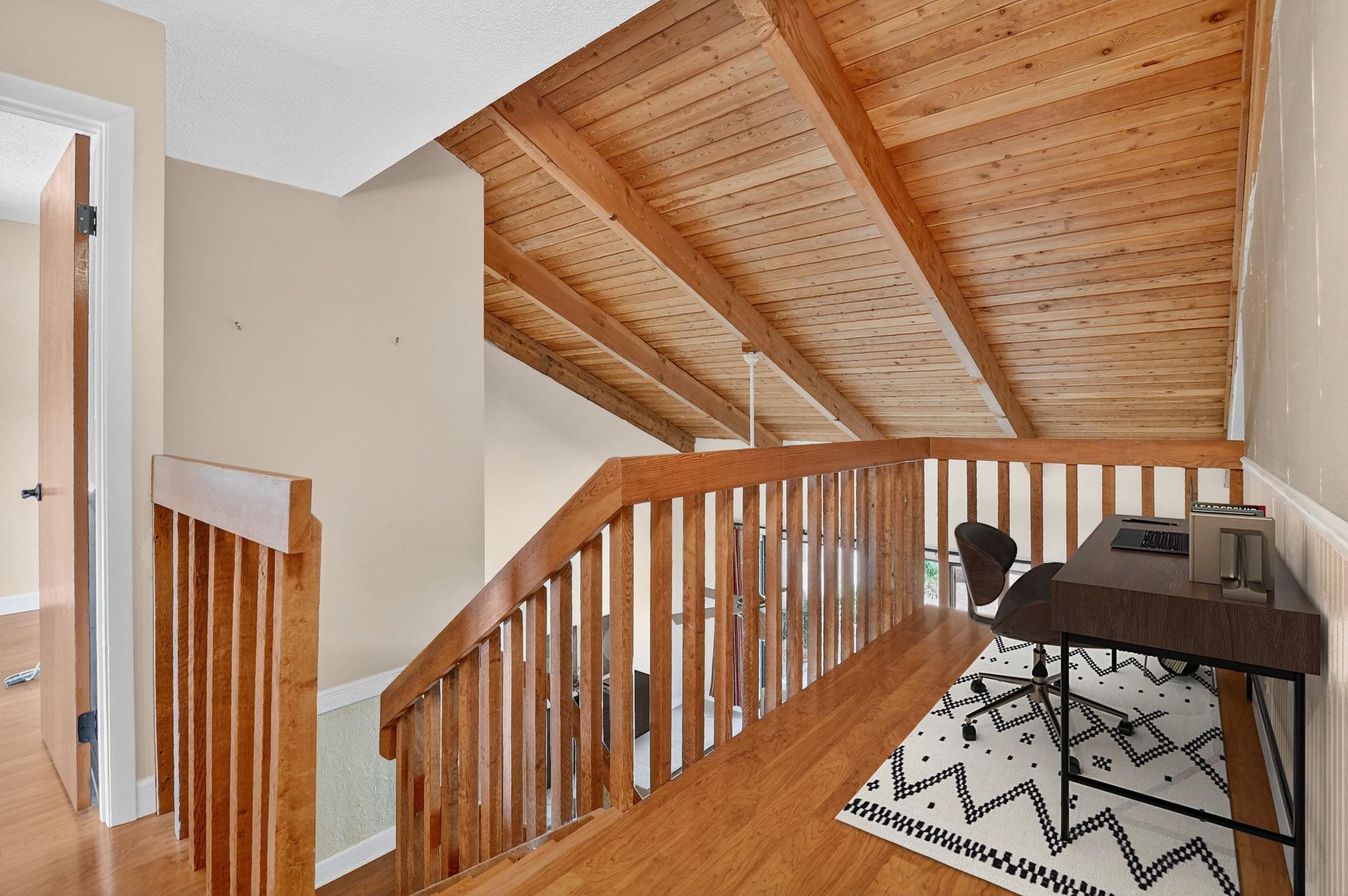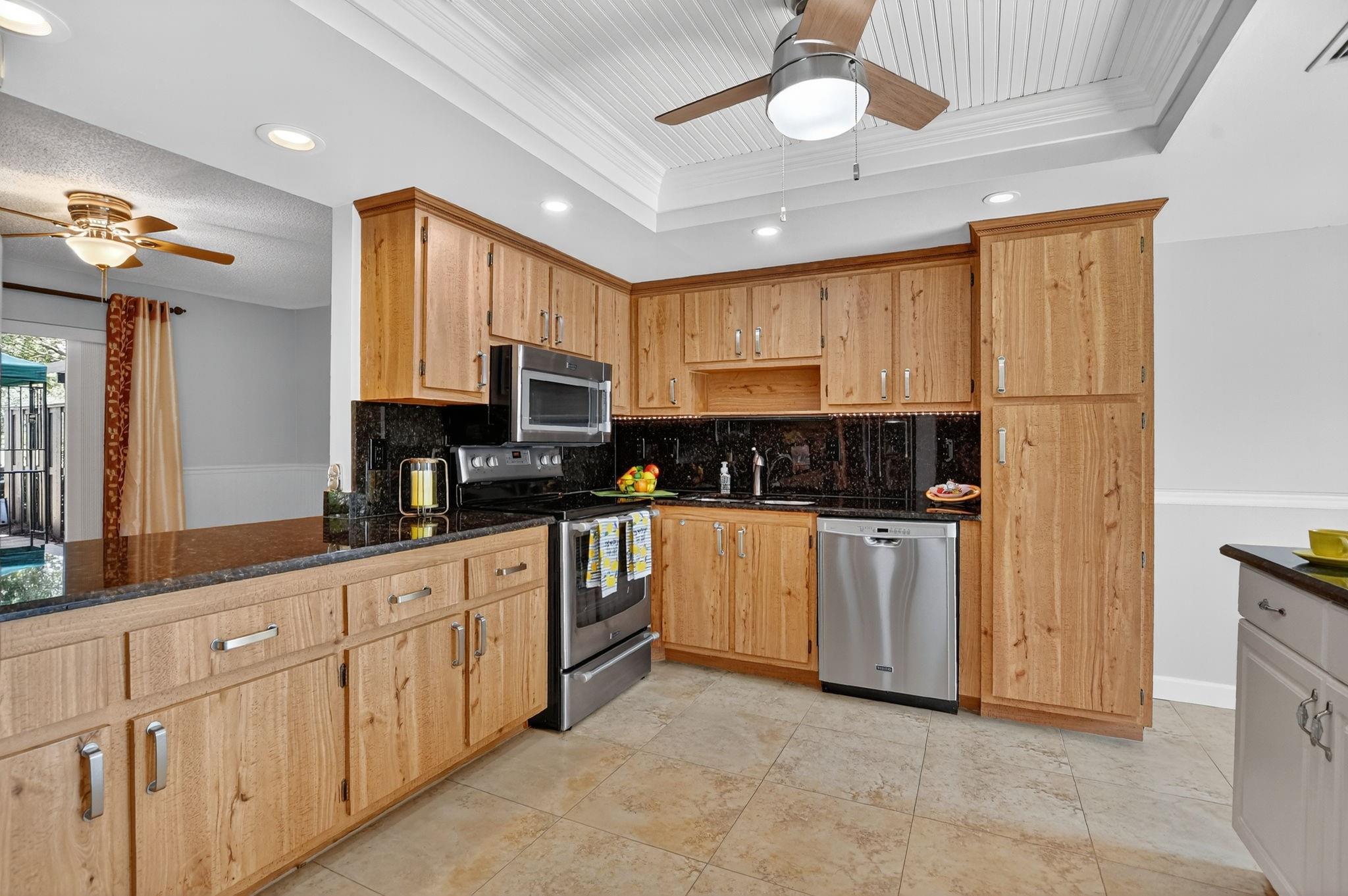 Senstional 3/2.5 TH w/ 1,800+SF. Enjoy GOLF COURSE w/ expansive views of intersecting fairways! Enter into wide-open LA w/ 20' soaring ceiling featuring wood beam finish. HUGE FR/LR w/ neutral tile has a triple slider to patio-perfect for parties! DR w/ BIG pass thru. Entertaining is a breeze in your great kitchen w/ granite counters & backsplash. Newer Maytag S/S appliances, tons of 30" cabinets + extra island! Gorgeous shiplap accent wall has IMPACT stider to fenced courtyard. Guest BR on ground floor! Beautiful rich laminate floors upstairs. Fall in love in the primary BR w/ scr balcony w/ views. UPDATED pr bath has counter ht vanity w/ granite counter. Huge tub to soak away your worries. Walk in closet-perf for fashion fan. BR w/ walk in closet. Savor coffee on the BIG DECK! LOW HOA!