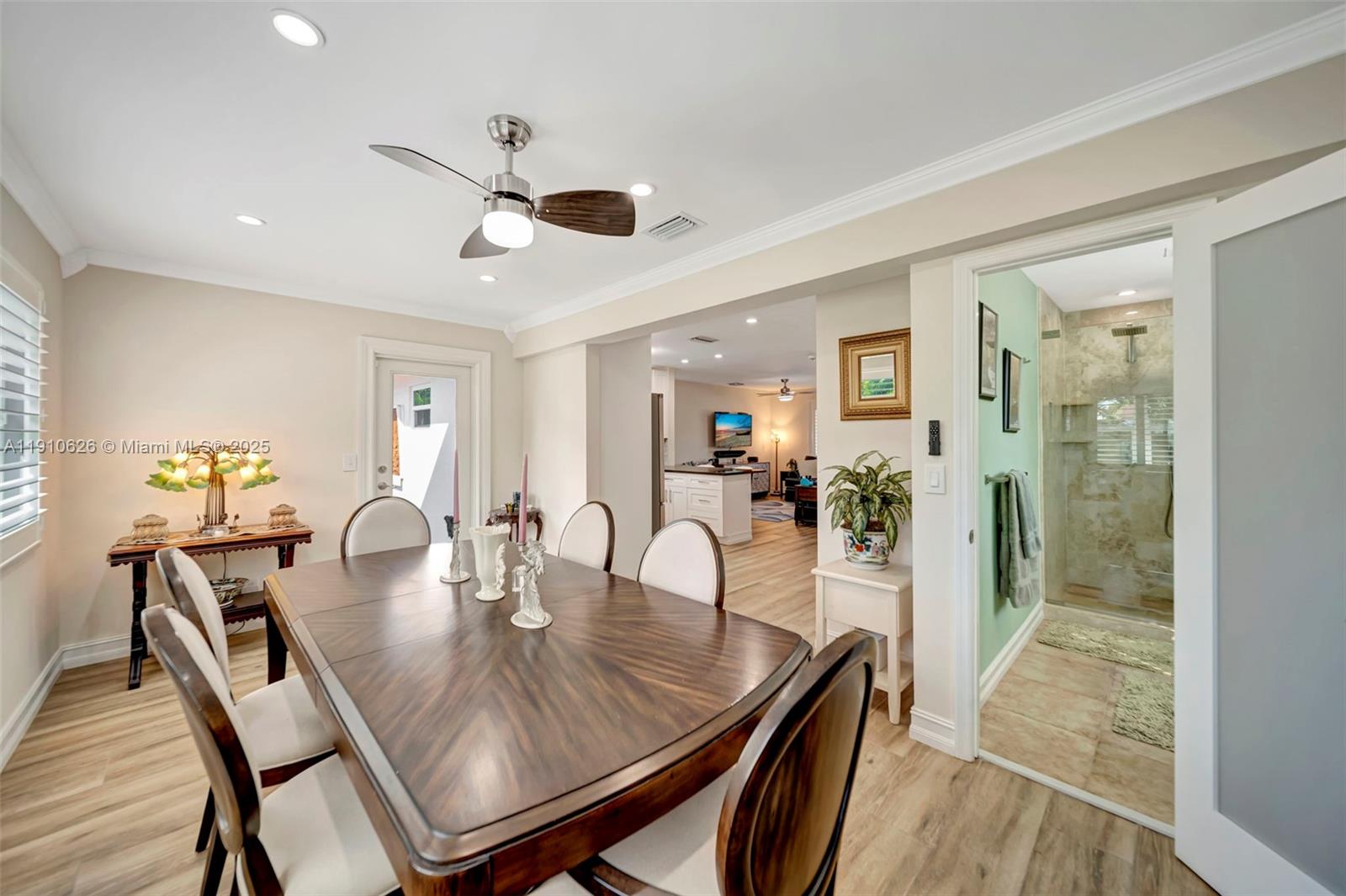 PRICE IMPROVED! Welcome to this Gorgeous, one of a kind 3/2 in Oakland Park. Features include NEW kitchen with SS appliances, huge pantry, ISLAND, tile backsplash and chrome finishes. Crown molding throughout, and fresh paint. Plantation shutters, HURRICANE IMPACT WINDOWS/DOORS, faux wood blinds, and FLOORING TILES FROM SPAIN. BATHROOM VANITY FROM "THE JOSHUA TREE" with QUARTZ, SHOWER TILE FROM ITALY, New dimensional shingle roof (2023). RESCESSED LIGHTING. Gorgeous backyard with Spanish-style patio flooring, shed, and paved sides for JET-SKIS or a BOAT. Perfect for relaxing or entertaining—everything is brand new! ROOF 2023 with Hurricane STRAPS, AC 2021, NEW TANKLESS WATER HEATER. GENERATOR HOOK-UP TRANSFER SWITCH READY.