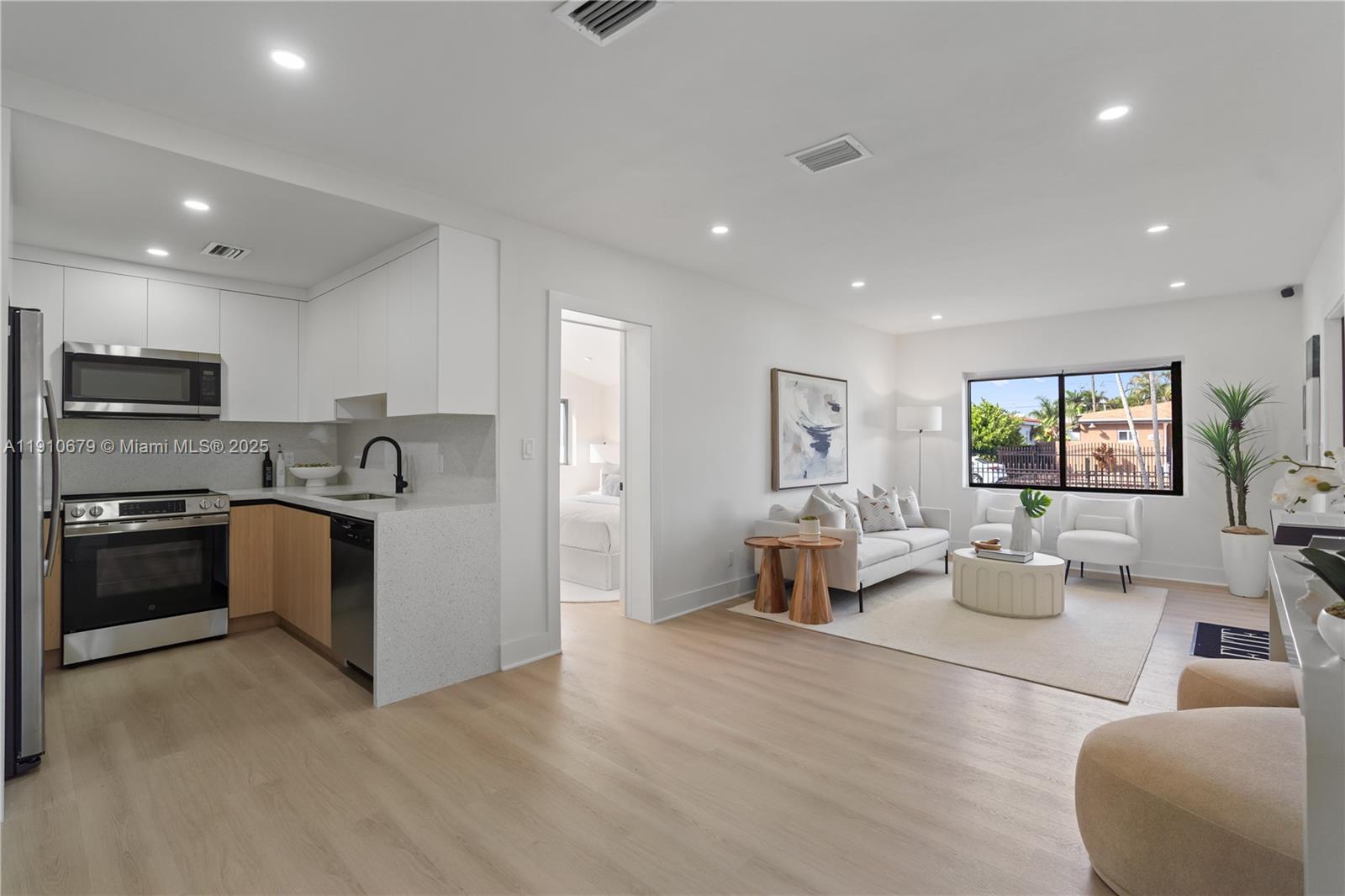 This stunning 1,345 SQFT, 3-bedroom, 2-bath home blends modern comfort with timeless style, offering a spacious SPLIT FLOORPLAN with light Oakwood flooring, a SLEEK NEW kitchen, and DESIGNER BATHROOMS. Enjoy peace of mind with a NEW ROOF, IMPACT WINDOWS & doors, and FULLY UPGRADED electrical, plumbing, & HVAC systems. Completely updated in 2025, the home showcases thoughtful finishes throughout. The fully fenced yard provides privacy, with PLENTY OF ROOM FOR A POOL OR FUTURE EXPANSION plus side access for an RV/BOAT. Located in a FANTASTIC NEIGHBORHOOD surrounded by other updated homes, this property is CONVENIENTLY LOCATED—just 10 minutes from Coral Gables, Coconut Grove, Brickell, Midtown, the Design District, & Wynwood, and only 2 minutes from the upcoming InterMiami Soccer & Entertainment Complex. Easy access to 836, 826, and I-95.