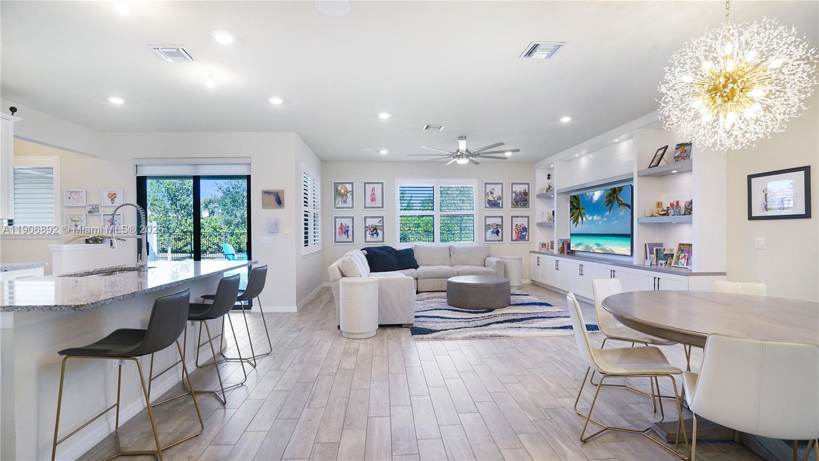 Live in Luxury at The Fields! This 2023-built 4 bed 2.5 bath corner-lot home at the end of the street blends modern style with comfort. Features include porcelain tile floors, plantation shutters, and a versatile downstairs bedroom used as an office with a built-in wall unit. The open kitchen offers a large granite island, upgraded cabinetry, a finished pantry, & designer lighting. The bright living area has volume ceilings, a custom wall unit, and a Sonos system flowing indoors and to the backyard. Upstairs includes a spacious primary suite w/blackout shades, built-in closet, oversized shower, 2 additional bedrooms, full bath, & loft. Impact windows add peace of mind, and the backyard is perfect for relaxing or entertaining. Enjoy a clubhouse, pool, gym, tennis, pickleball, & more.
