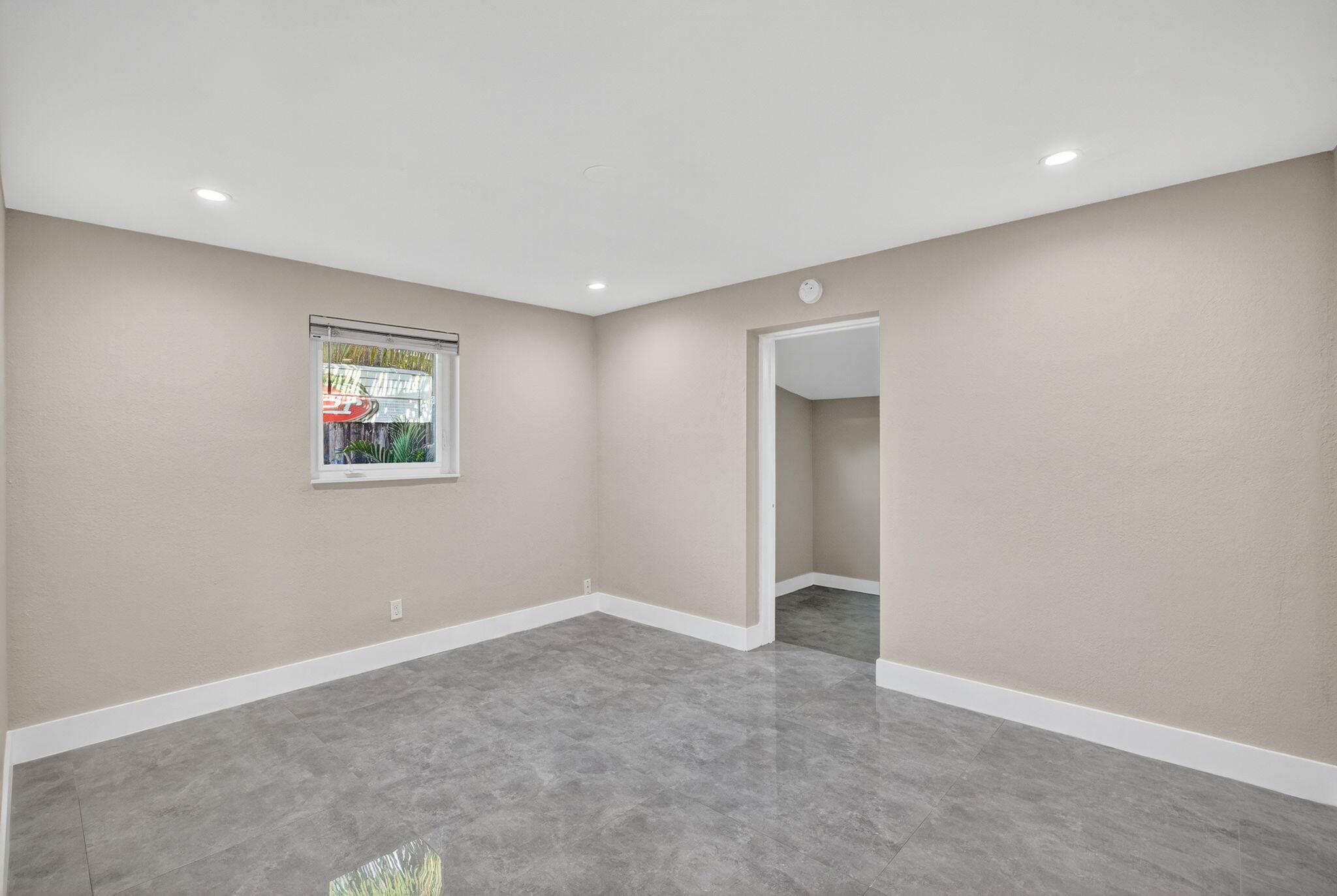 Beautifully remodeled 3 bedroom 2 bathroom + den single family home in the heart of Oakland Park! This home has it all, ready for you to move in to make yours. Features 32x32 European porcelain tile throughout, brand new contemporary kitchen with white cabinets, granite countertops, & stainless steel appliances, tankless water heater, solar panels, impact windows & doors, inside laundry, and large covered patio. The den/office has its own separate entrance for your convenience. Backyard is fully fenced.