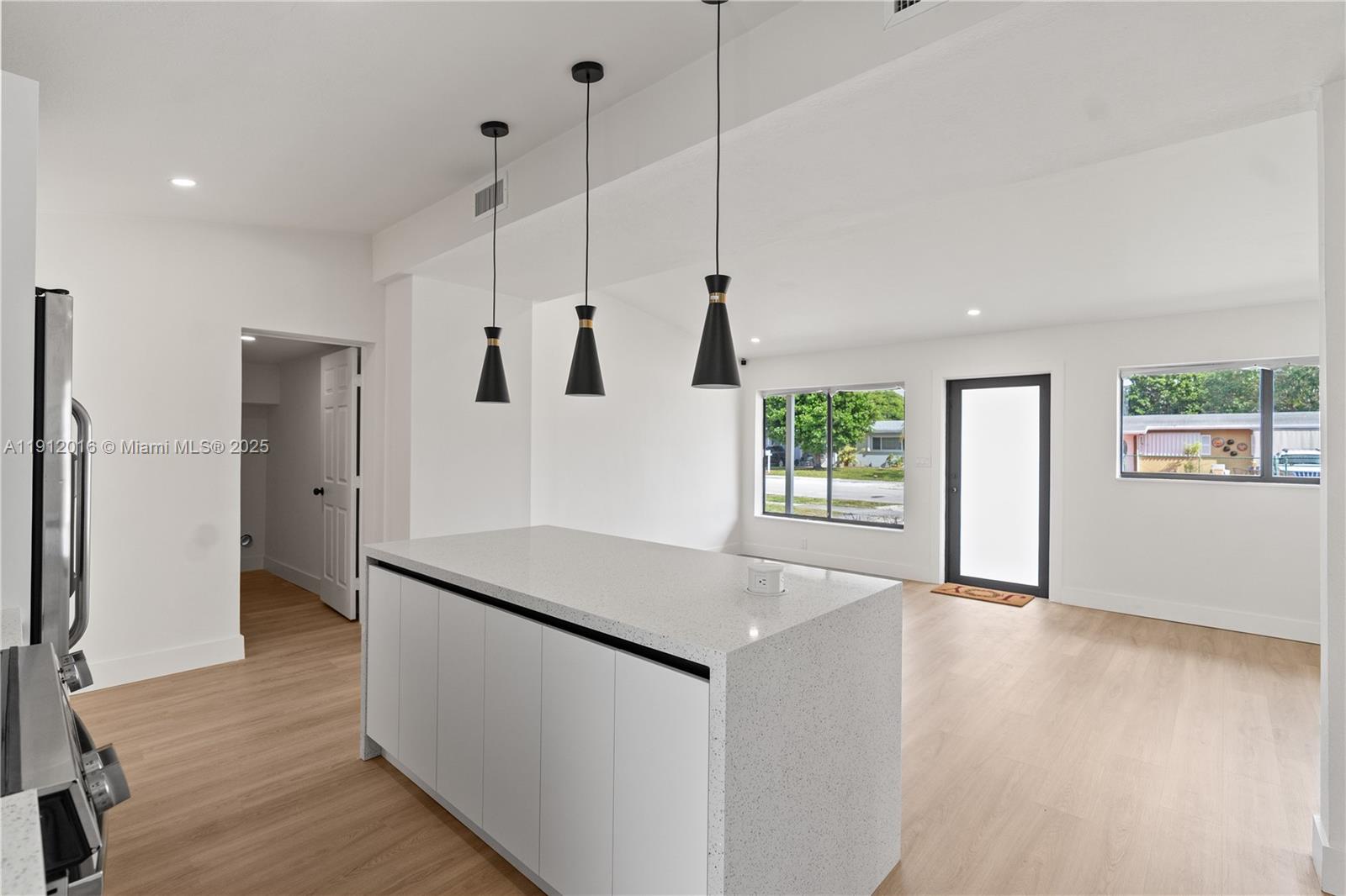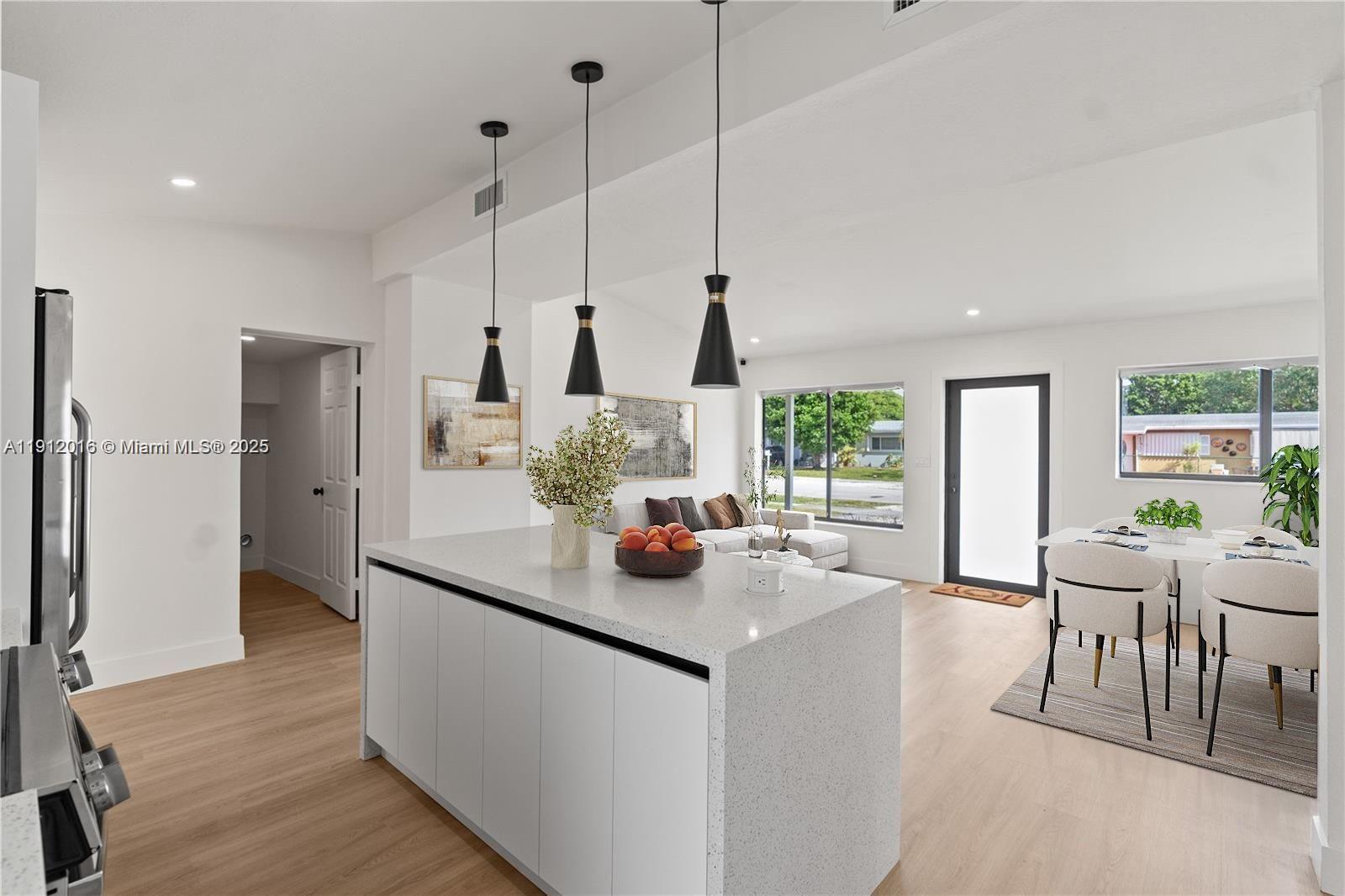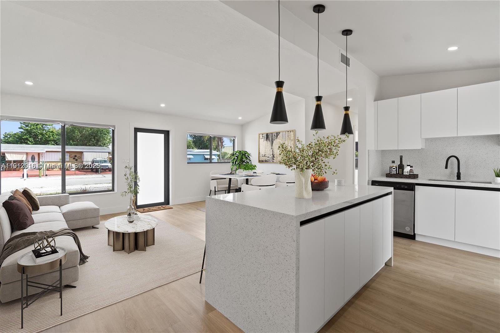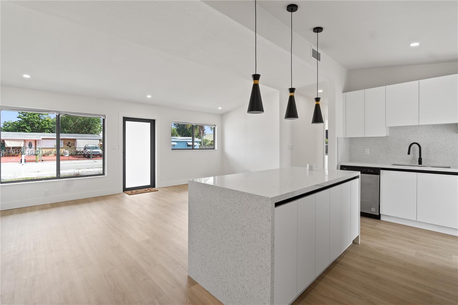 This stunning 3-bedroom, 2-bathroom home features HIGH CEILINGS with recessed LED lighting and a SPACIOUS OPEN FLOORPLAN filled with natural light. Enjoy peace of mind with a RECENTLY UPDATED ROOF, HURRICANE IMPACT WINDOWS & DOORS, and UPDATED electrical, HVAC, and plumbing systems. Completely updated in 2025, the home showcases a SLEEK NEW KITCHEN with hardwood cabinets, quartz countertops, and stainless-steel appliances. NEW waterproof light Oakwood flooring flows throughout, complemented by ALL NEW DESIGNER BATHROOMS. The SPACIOUS BACKYARD offers plenty of ROOM FOR A POOL OR FUTURE EXPANSION, with side-yard SPACE FOR A BOAT/RV. Fully FENCED FOR PRIVACY and CENTRALLY LOCATED near I-95 and 595—just 10–15 minutes to LAS OLAS BLVD’s dining, entertainment, and BEACHES!