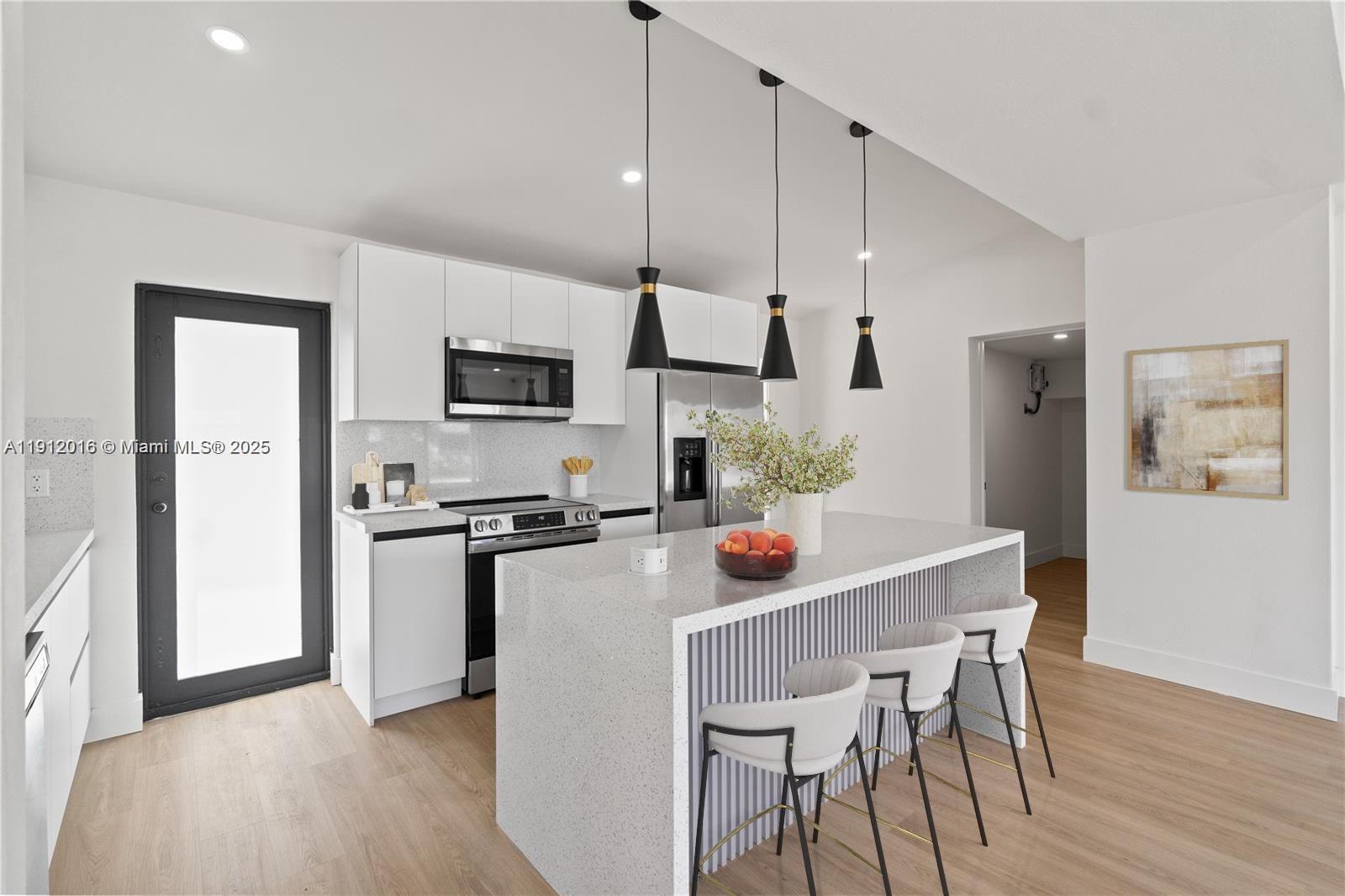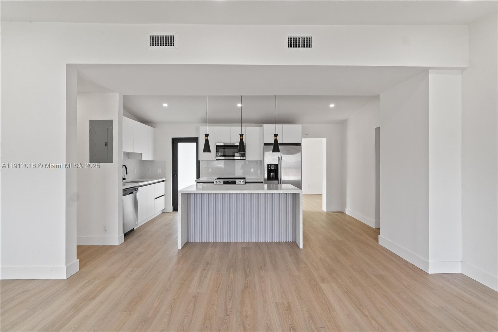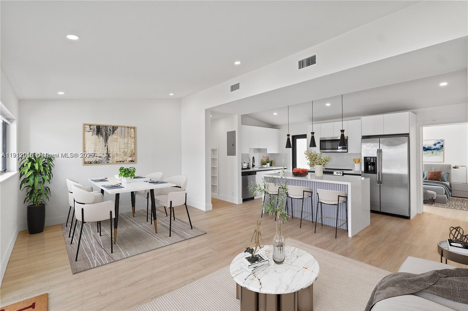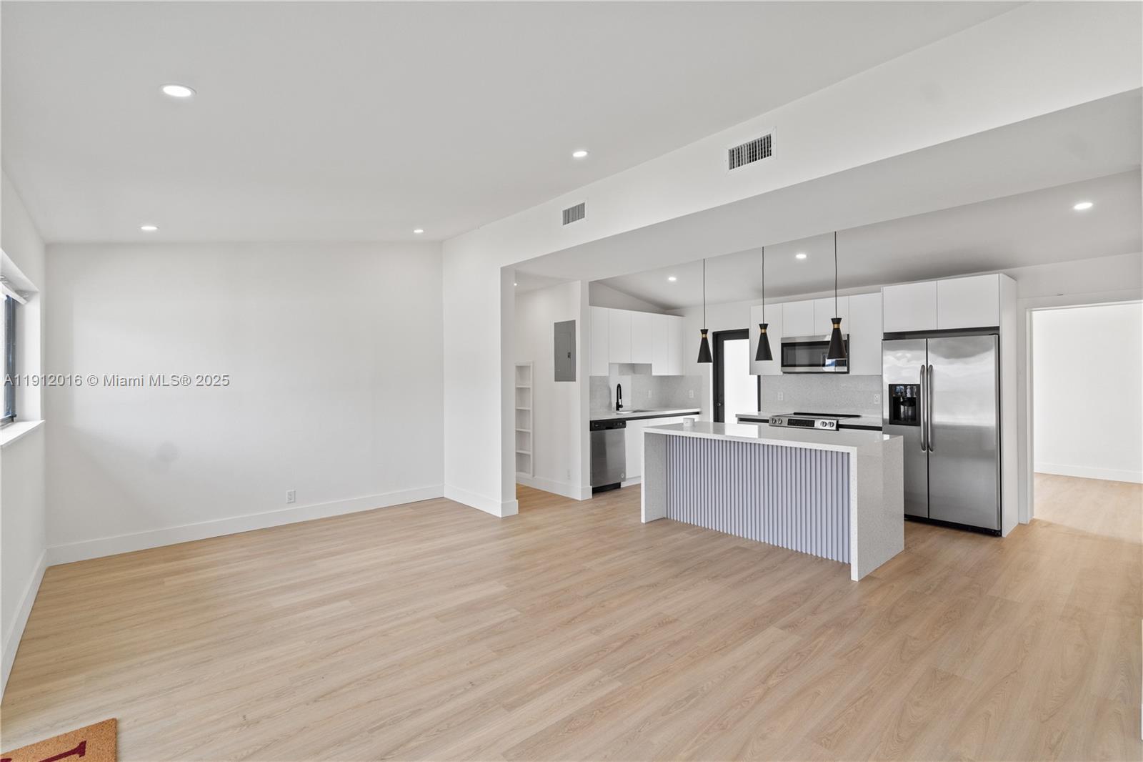 This stunning 3-bedroom, 2-bathroom home features HIGH CEILINGS with recessed LED lighting and a SPACIOUS OPEN FLOORPLAN filled with natural light. Enjoy peace of mind with a RECENTLY UPDATED ROOF, HURRICANE IMPACT WINDOWS & DOORS, and UPDATED electrical, HVAC, and plumbing systems. Completely updated in 2025, the home showcases a SLEEK NEW KITCHEN with hardwood cabinets, quartz countertops, and stainless-steel appliances. NEW waterproof light Oakwood flooring flows throughout, complemented by ALL NEW DESIGNER BATHROOMS. The SPACIOUS BACKYARD offers plenty of ROOM FOR A POOL OR FUTURE EXPANSION, with side-yard SPACE FOR A BOAT/RV. Fully FENCED FOR PRIVACY and CENTRALLY LOCATED near I-95 and 595—just 10–15 minutes to LAS OLAS BLVD’s dining, entertainment, and BEACHES!