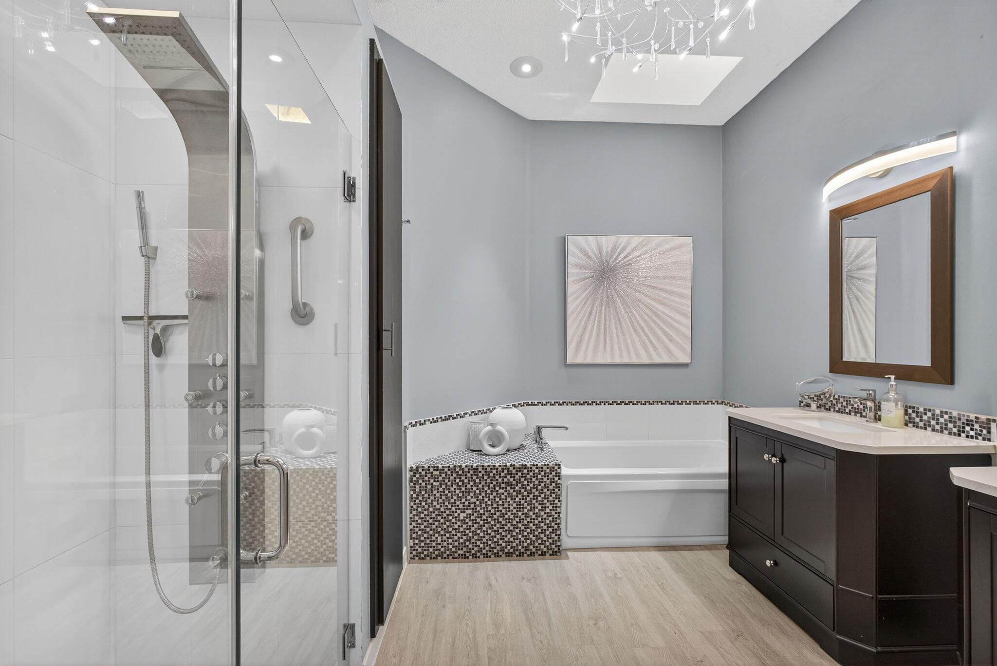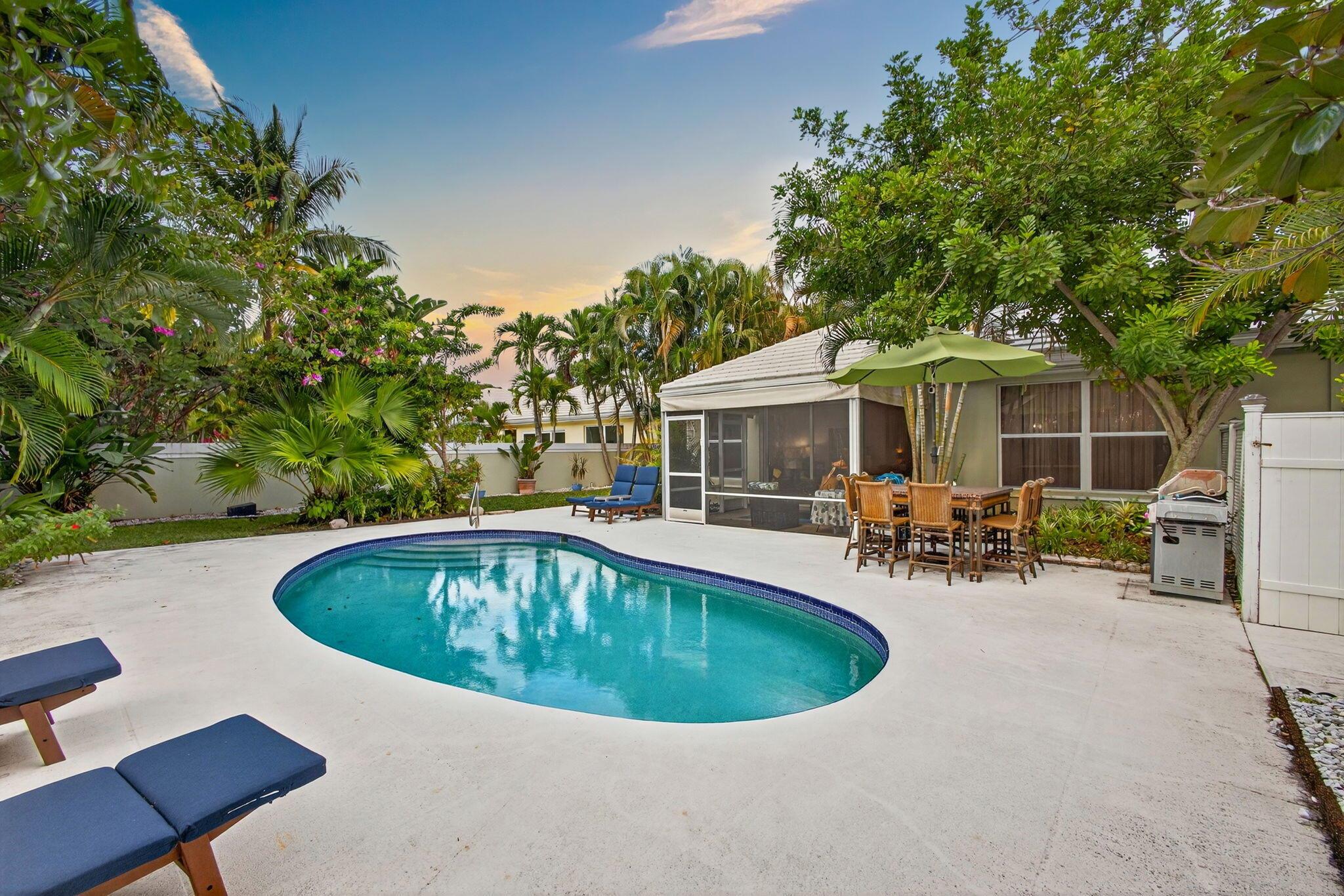 BEAUTIFUL POOL HOME ON SPECTACULAR OVERSIZED CORNER LOT! This updated pool home boasts tons of natural light, crown molding, ceramic porcelain tile floors, built-in (electric) fireplace, new lighting, fixtures and fans throughout! Picturesque backyard with heated saltwater pool, oversized patio/deck and screened-in Florida room gives you immense privacy, completely surrounded by lush tropical landscaping and exterior lighting. Spacious gourmet kitchen offers brown shaker cabinets with added pantry and coffee bar, stainless steel appliances including Bosch French-door refrigerator and dishwasher, granite countertops, backsplash and under cabinet lighting. Spacious primary suite, with crown molding and extra closet, leads to your luxurious bathroom renovated dual vanities, Quartz counters,