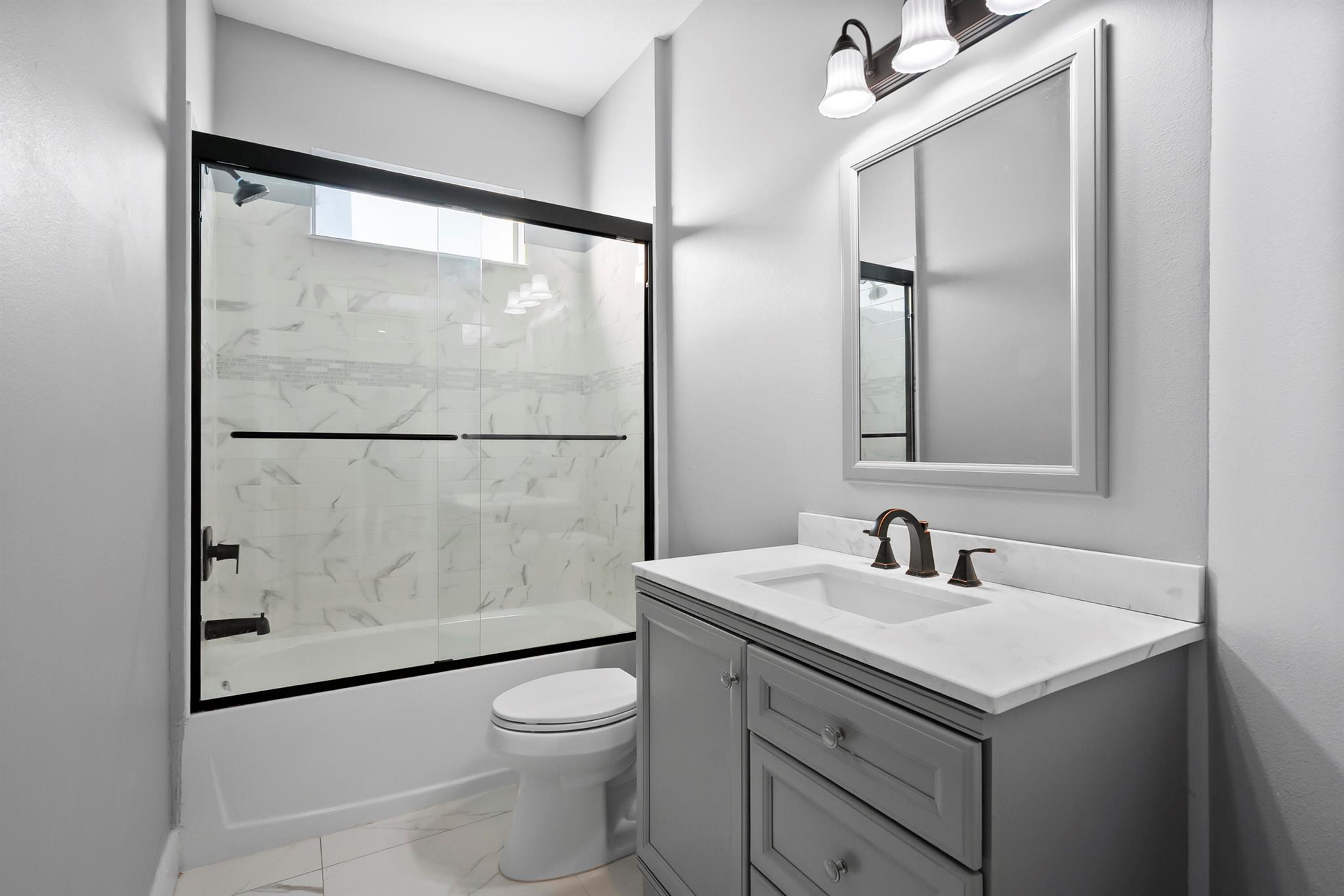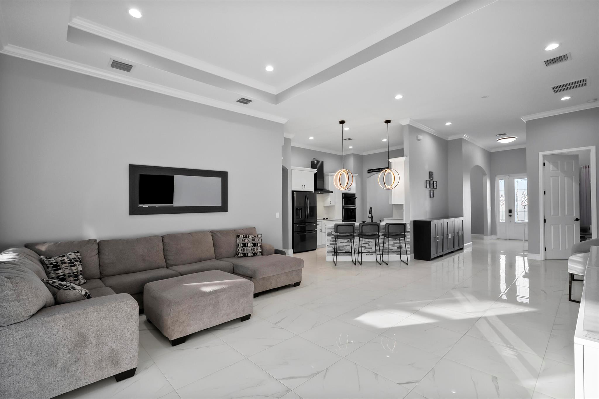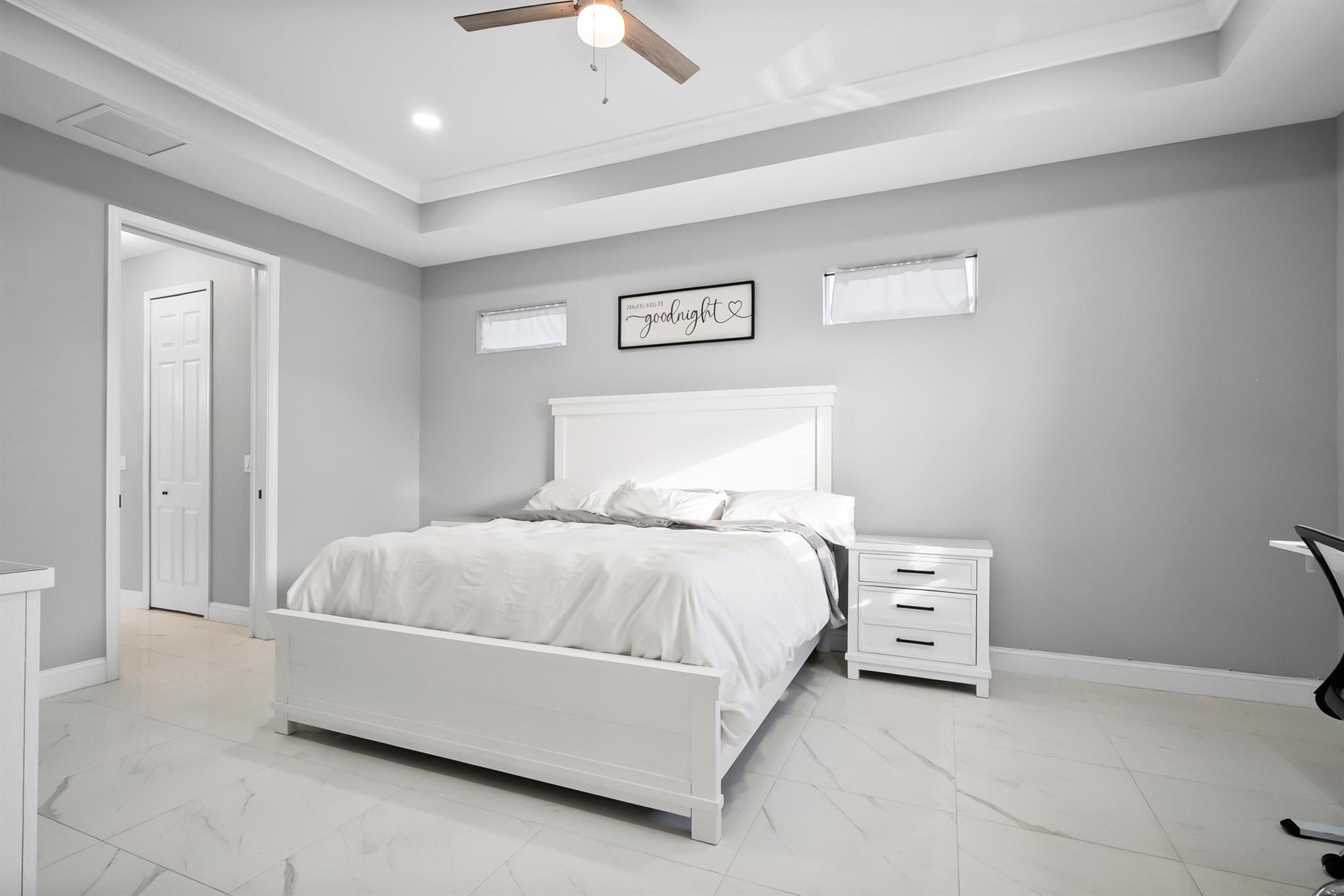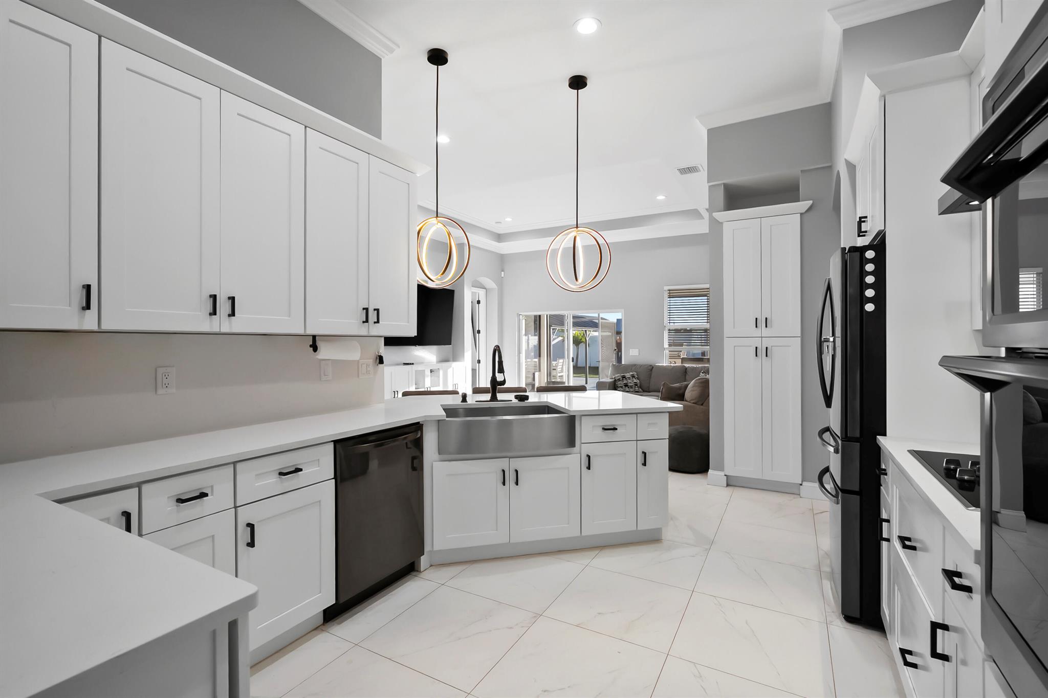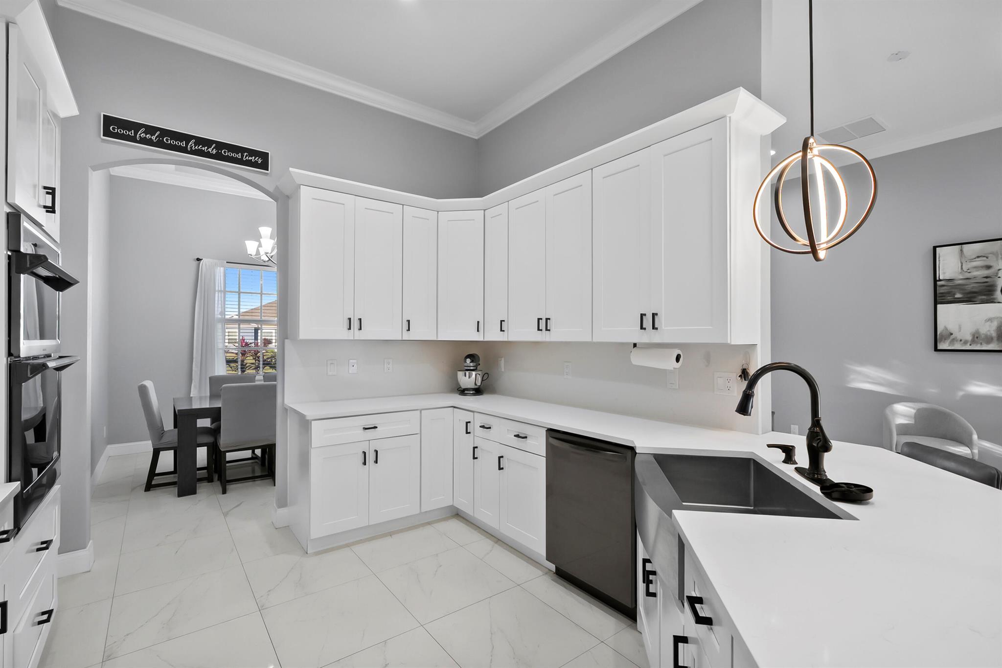 Welcome home to this custom 2021 5-bed, 3-bath CBS home featuring impact windows, high ceilings, crown molding, 42'' cabinets with quartz countertops and backsplash, and a breakfast bar. The split floor plan offers a spacious primary suite with two walk-in closets. The luxurious primary bathroom includes dual vanities, a soaking tub, and an oversized walk-in shower. The back bedroom serves as an in-law suite with its own bath and exterior entrance, also acting as a cabana bath.Step outside to your private retreat, perfect for entertaining, complete with a brand-new heated saltwater pool and spa with Pentair IntelliCenter smart automation, sun shelf, water slide, and an extended patio with an oversized pergola, all within a fully fenced yard! Bring all your toys!
