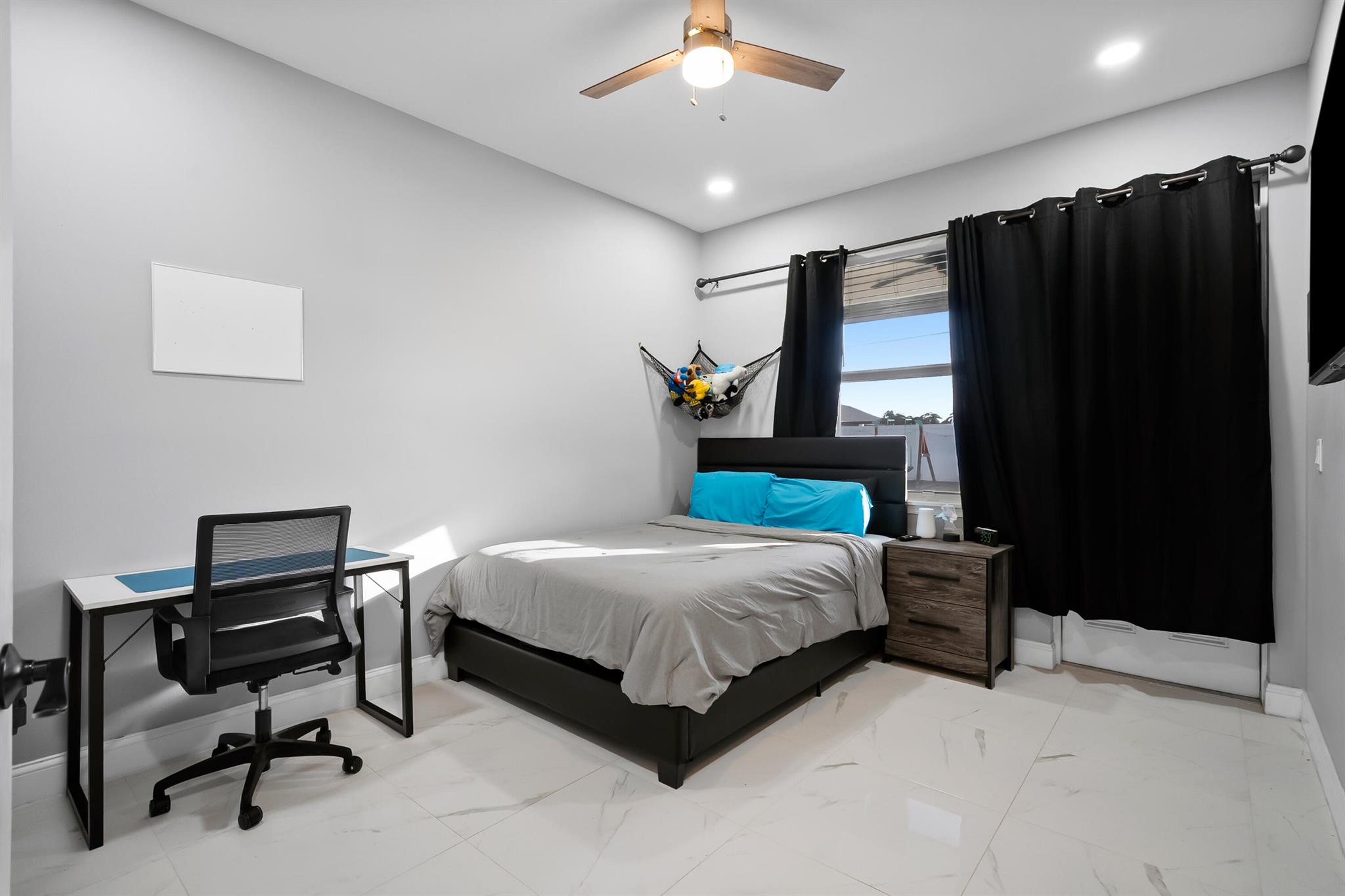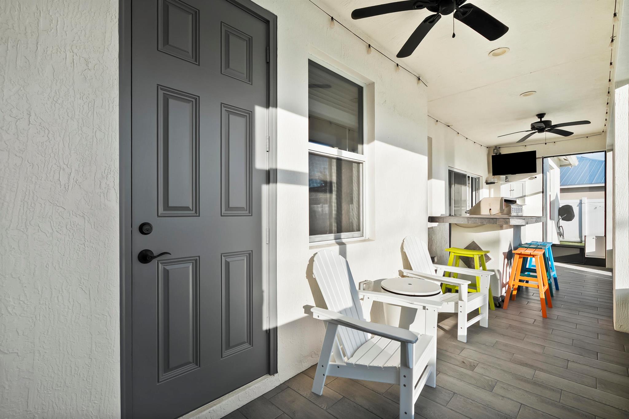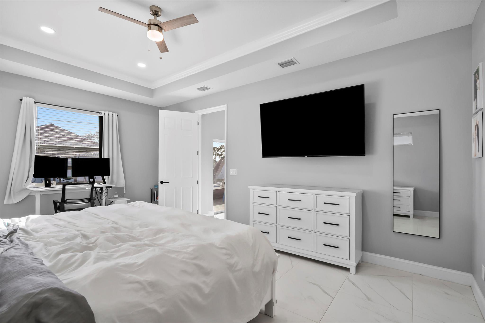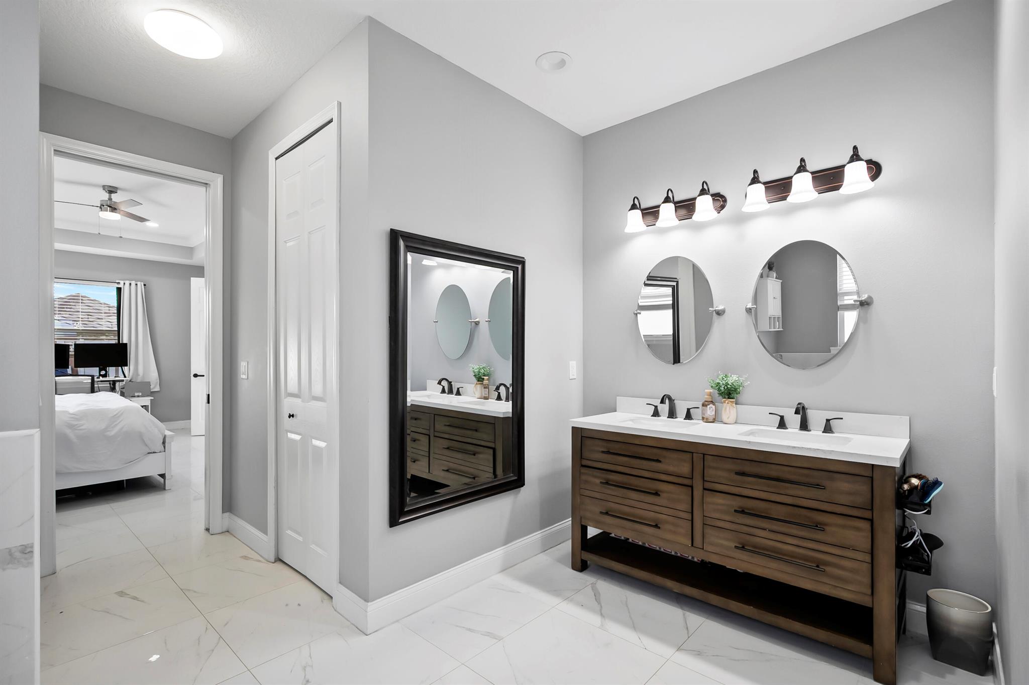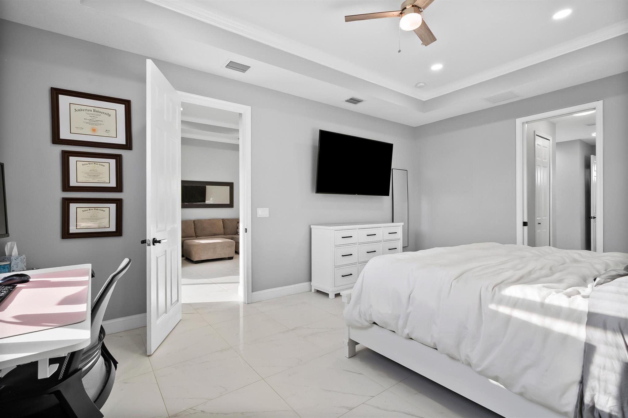 Welcome home to this custom 2021 5-bed, 3-bath CBS home featuring impact windows, high ceilings, crown molding, 42'' cabinets with quartz countertops and backsplash, and a breakfast bar. The split floor plan offers a spacious primary suite with two walk-in closets. The luxurious primary bathroom includes dual vanities, a soaking tub, and an oversized walk-in shower. The back bedroom serves as an in-law suite with its own bath and exterior entrance, also acting as a cabana bath.Step outside to your private retreat, perfect for entertaining, complete with a brand-new heated saltwater pool and spa with Pentair IntelliCenter smart automation, sun shelf, water slide, and an extended patio with an oversized pergola, all within a fully fenced yard! Bring all your toys!