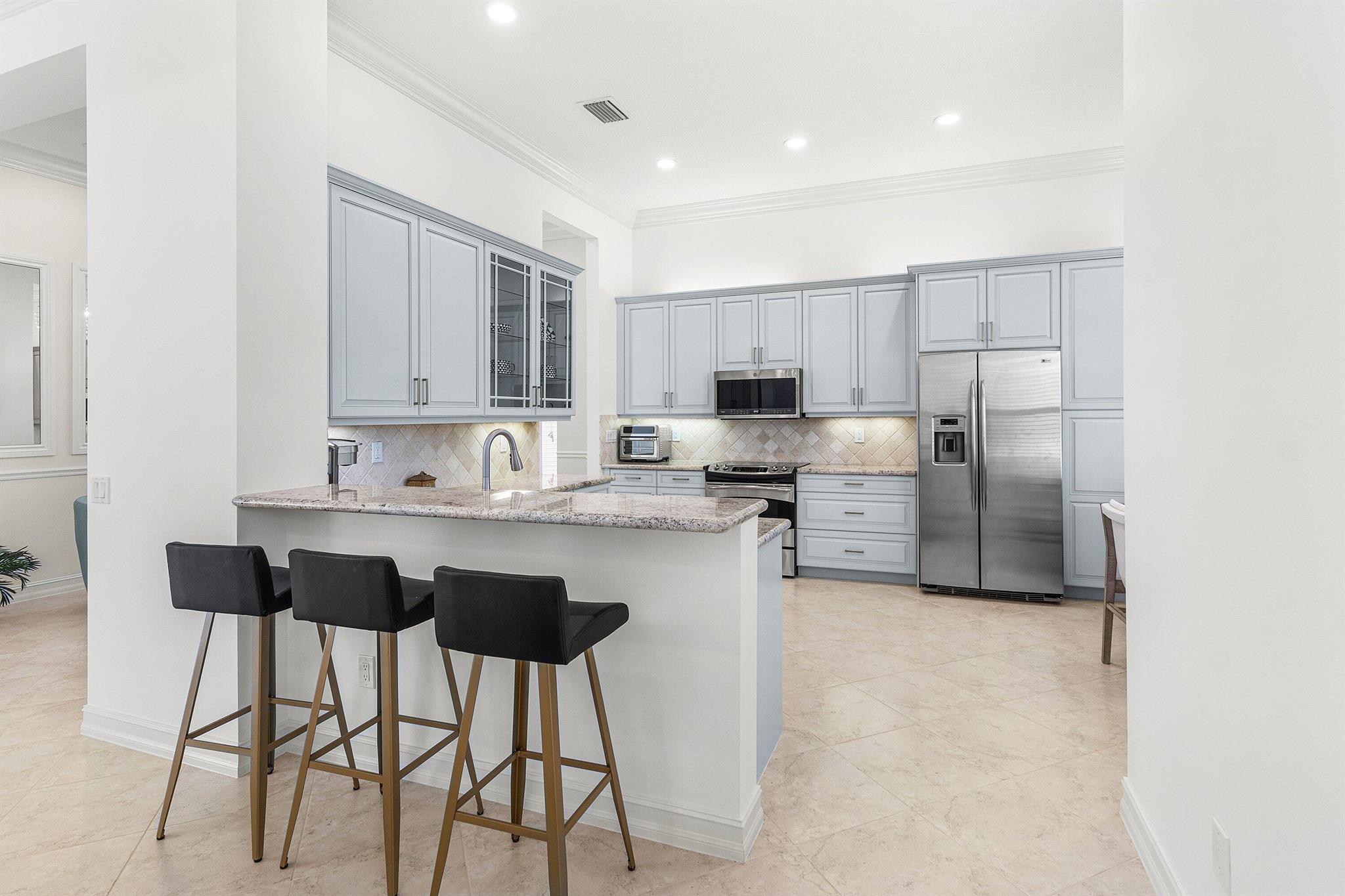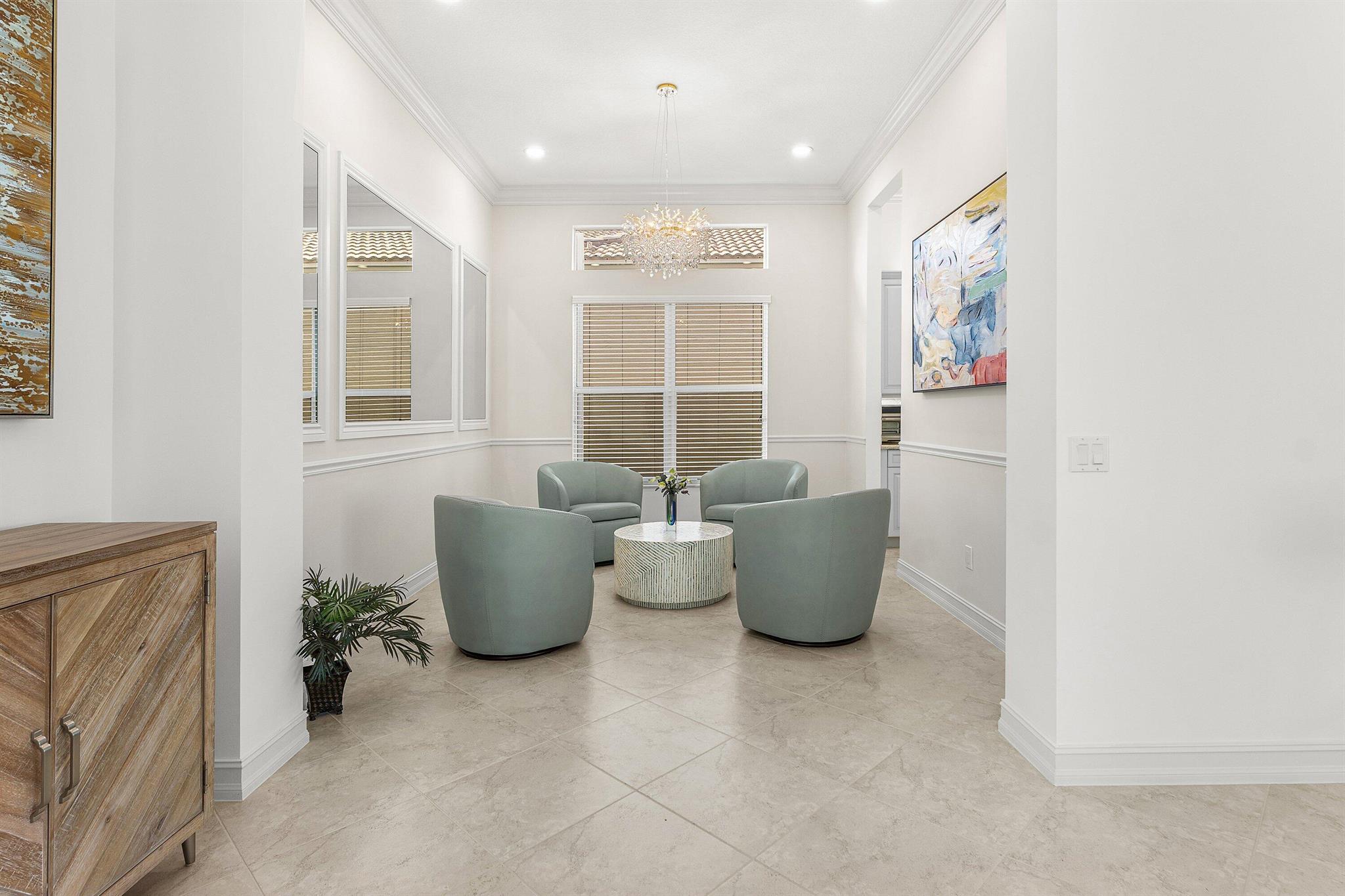 Stunning, light-filled Alexandra Grand model home featuring two expansive primary suites, an additional third bedroom, and three full baths--all complemented by a whole-house generator and a serene view. The home welcomes you with custom impact double front doors and transom window. The gourmet kitchen offers stainless steel appliances and light cabinetry. The interior has been freshly painted, and all three bedrooms now feature brand-new luxury vinyl flooring. Additional upgrades include crown molding, custom millwork, designer mirrors in the dining room, beautiful new fixtures, and outfitted primary closets, among more thoughtful enhancements. Located in the highly sought-after Valencia Reserve, a 55+ community, soon unveiling its exquisitely renovated clubhouse. Welcome Home!