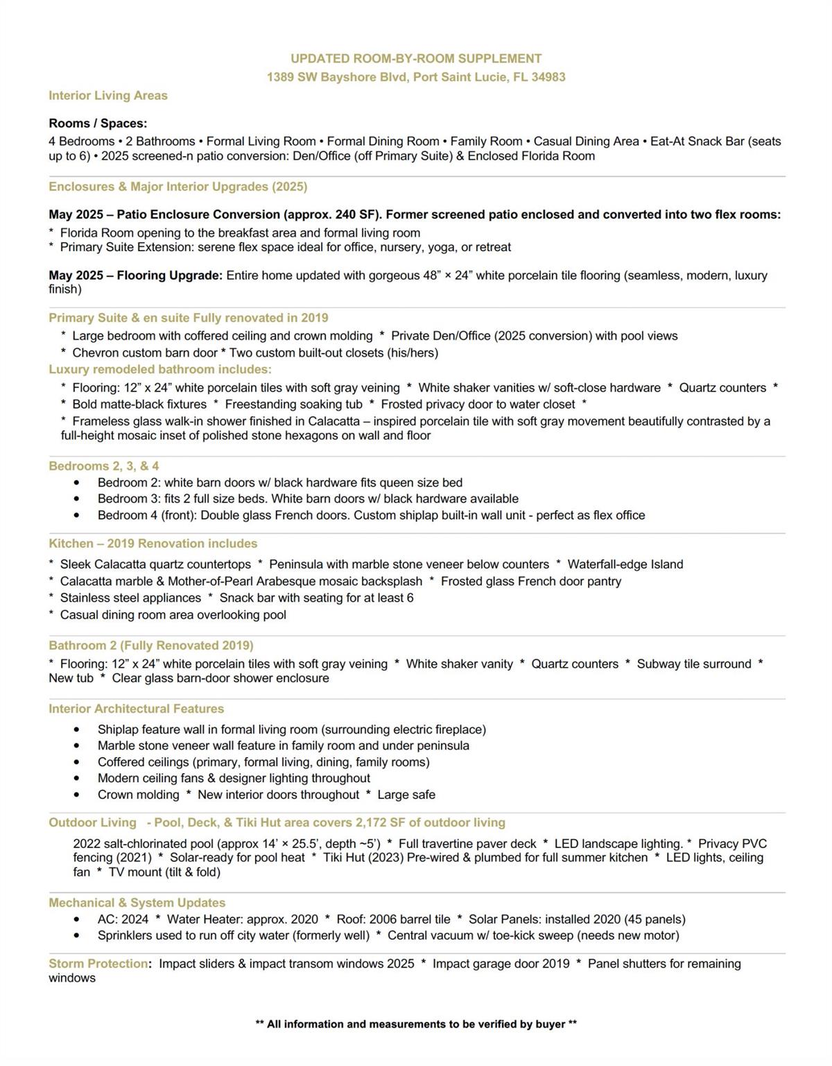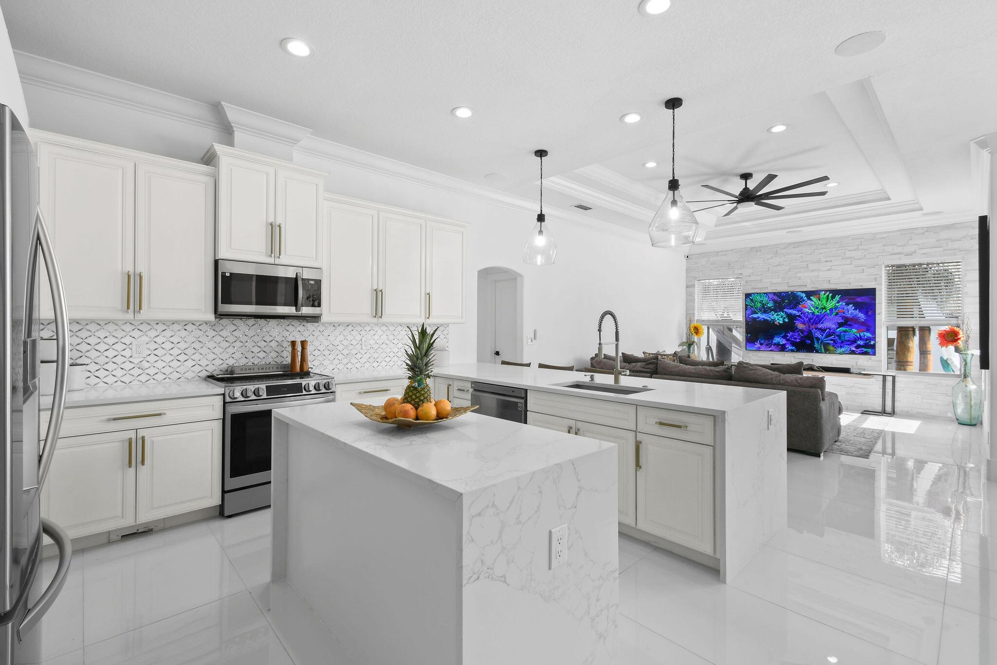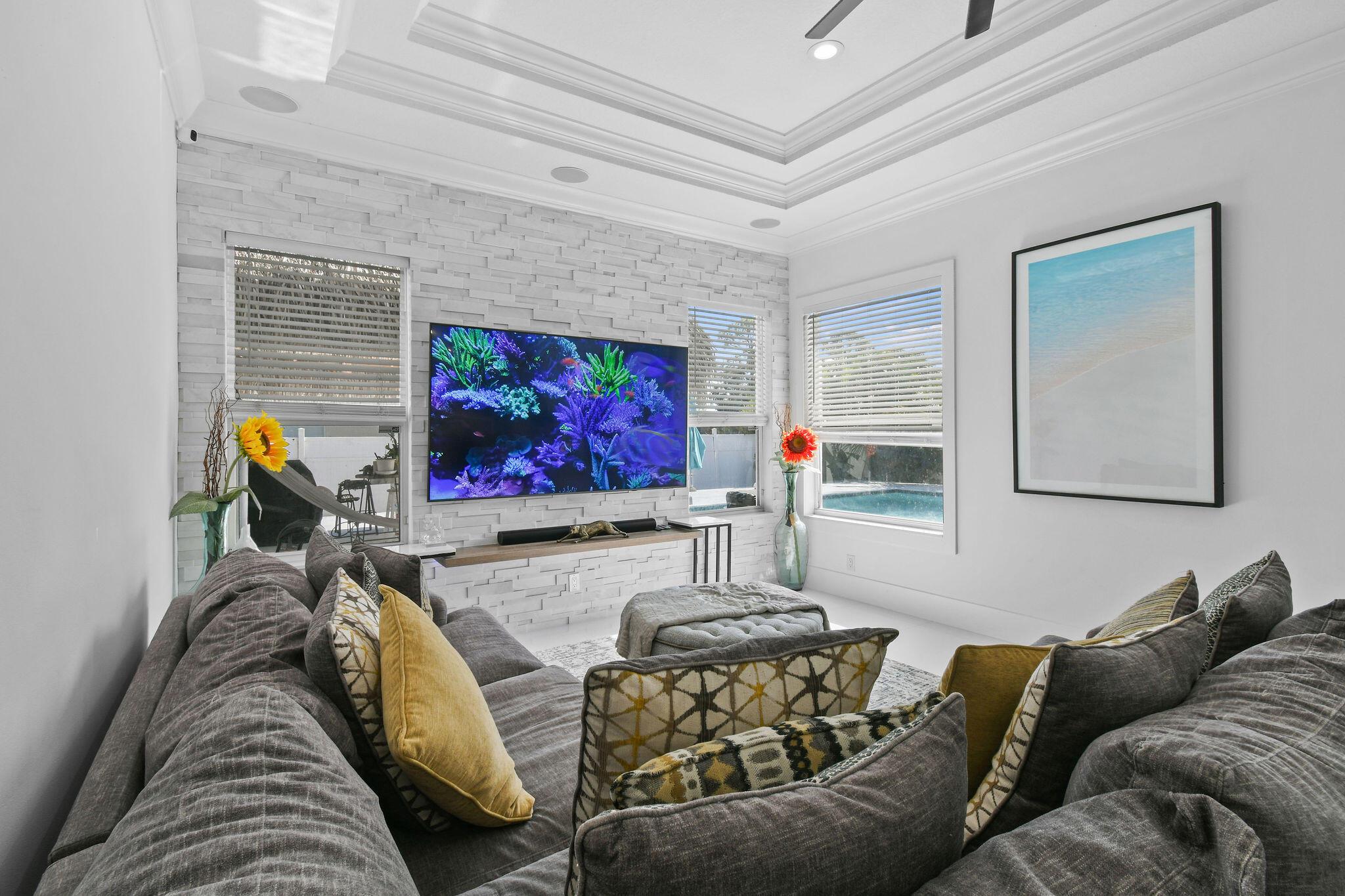 Every inch of this beautifully updated 4 BR / 2 BA/ 3,085-LSF home perfectly blends elegance, comfort & functionality. Each detail feels intentional - from the luxurious primary retreat to the open-concept kitchen that flows effortlessly into the family and dining areas. The home's cohesive design continues outdoors with 2172 SF of sparkling resort-style pool, travertine paver decking, and a tiki retreat - creating a harmonious extension of living space ideal for entertaining & relaxation. This versatile floor plan also includes formal living & dining rooms, den, and Florida room spacious, inviting, and designed for everyday living. Other features include Calacatta-style quartz waterfall island, coffered ceilings, crown molding, sleek porcelain tile throughout, and so much more!