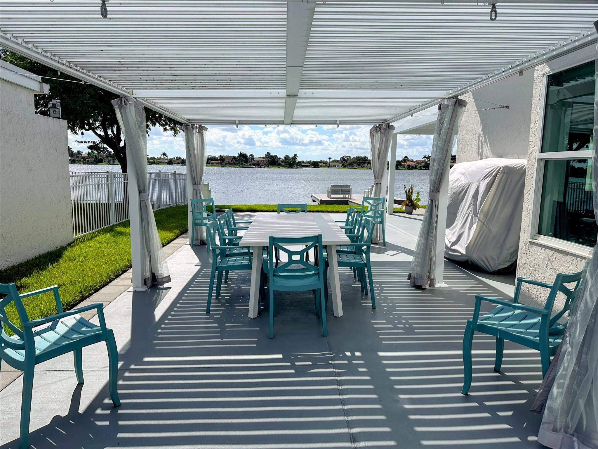 Modern, fully upgraded lakefront smart home in a private Pembroke Pines community. This stunning 3/2 features porcelain tile throughout, impact windows/doors, custom closets, elegant bathrooms, and a luxury kitchen with solid wood cabinetry, premium counters, stainless appliances, and a wine cooler. The finished double garage adds flexible living with A/C, LED lighting, and matching tile. Enjoy seamless smart control of lighting, climate, irrigation, water filtration, and security. Step outside to a resort-style backyard with a maintenance-free dock, solar lighting, built-in speakers, a sleek covered patio, and a modern pergola — all overlooking peaceful lake views. Move-in ready perfection!