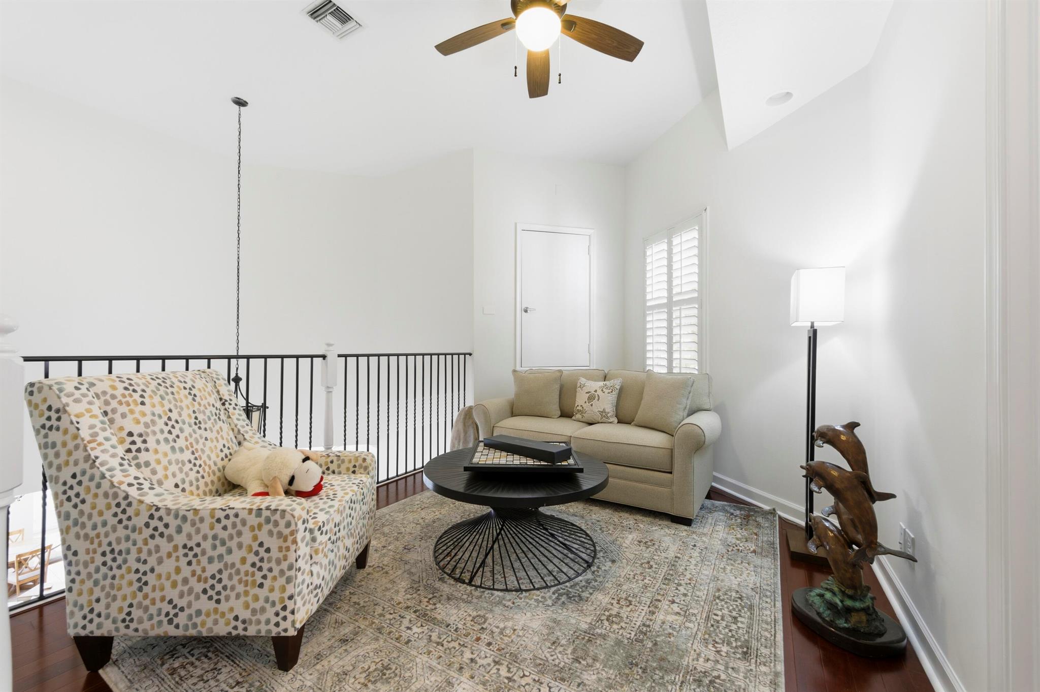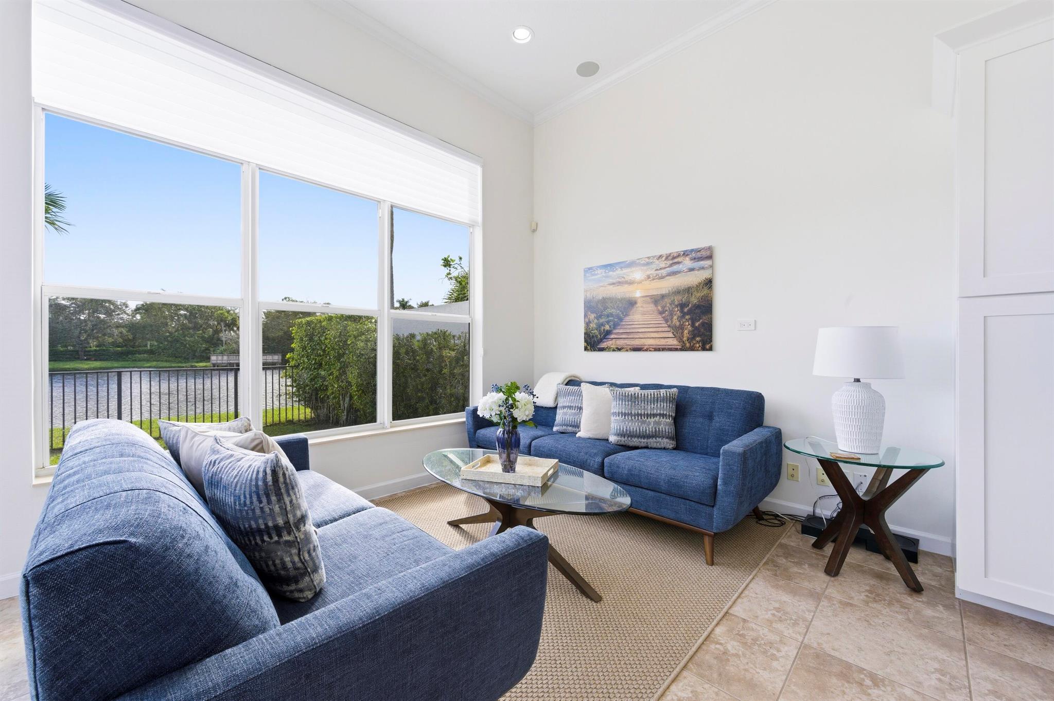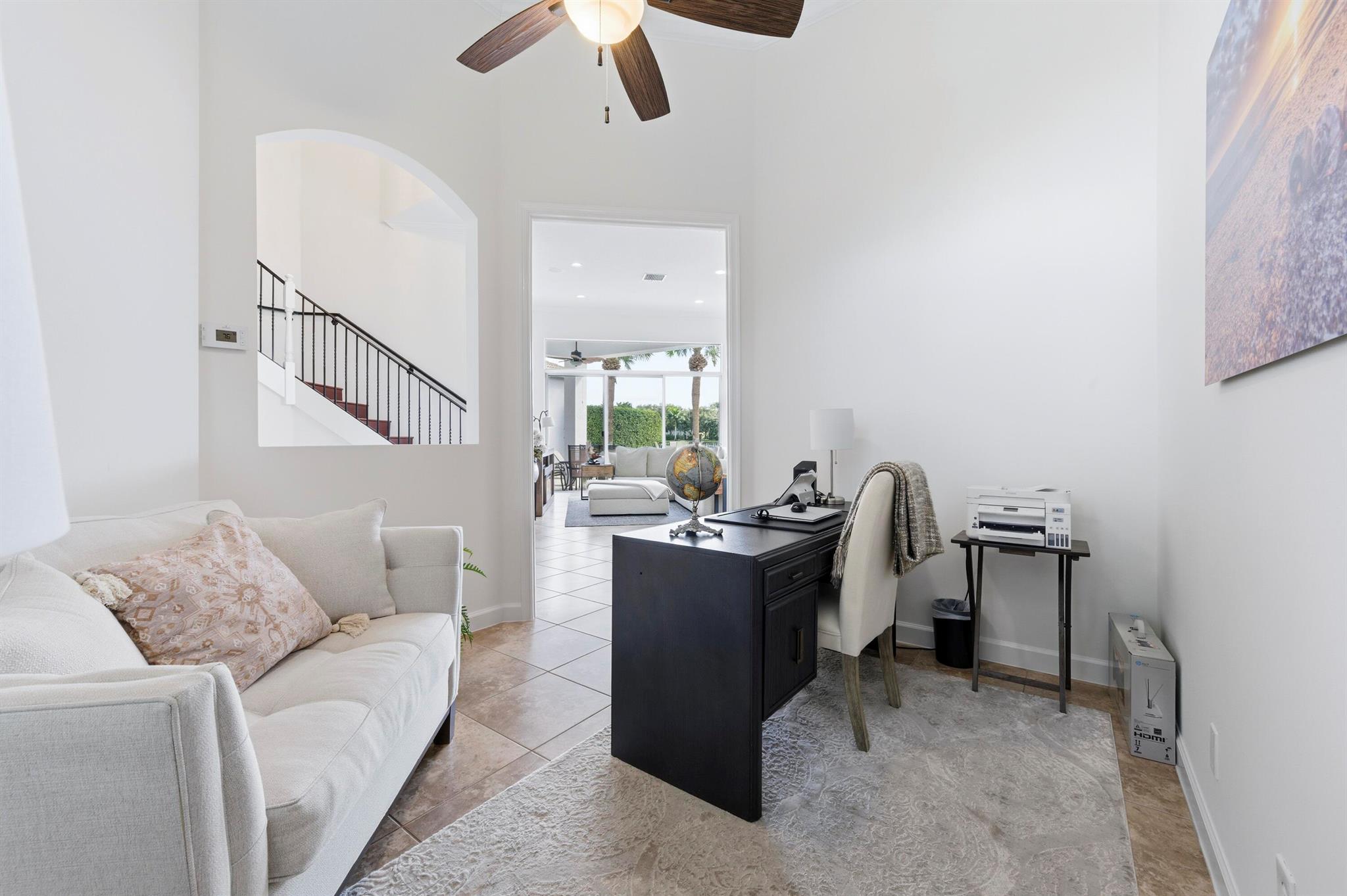 Step into this 4 bedroom plus loft and office/den on a beautiful lake. This extremely light,bright home features a redone kitchen with new cabinets, counter and subway tile backsplash. The stainless steel appliances and island sink have all been updated. The open spaces give you a view of the lake in many rooms in this home. The primary bedroom and another guest suite and office/ den is downstairs . There are 2 guest bedrooms with a jack and Jill full bathroom and a loft for your guests to enjoy upstairs. The backyard has a pool and spa and a lanai looking at the lake where there is a small pier for fishing or just taking in the lake view . There is a grassy area for children or dogs to run. Come see this well cared for, open airy space floorplan for absolute relaxation and enjoyment!!