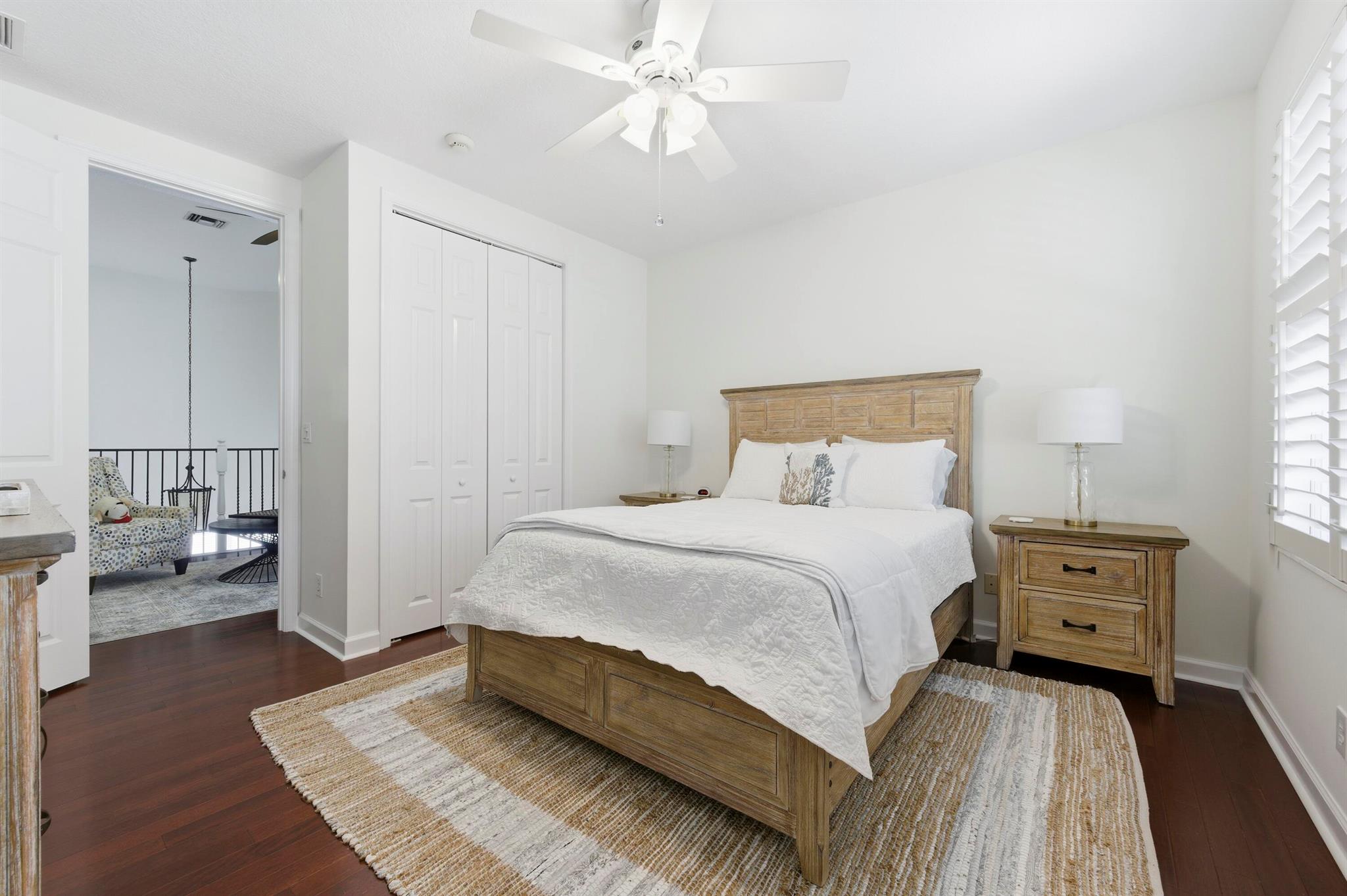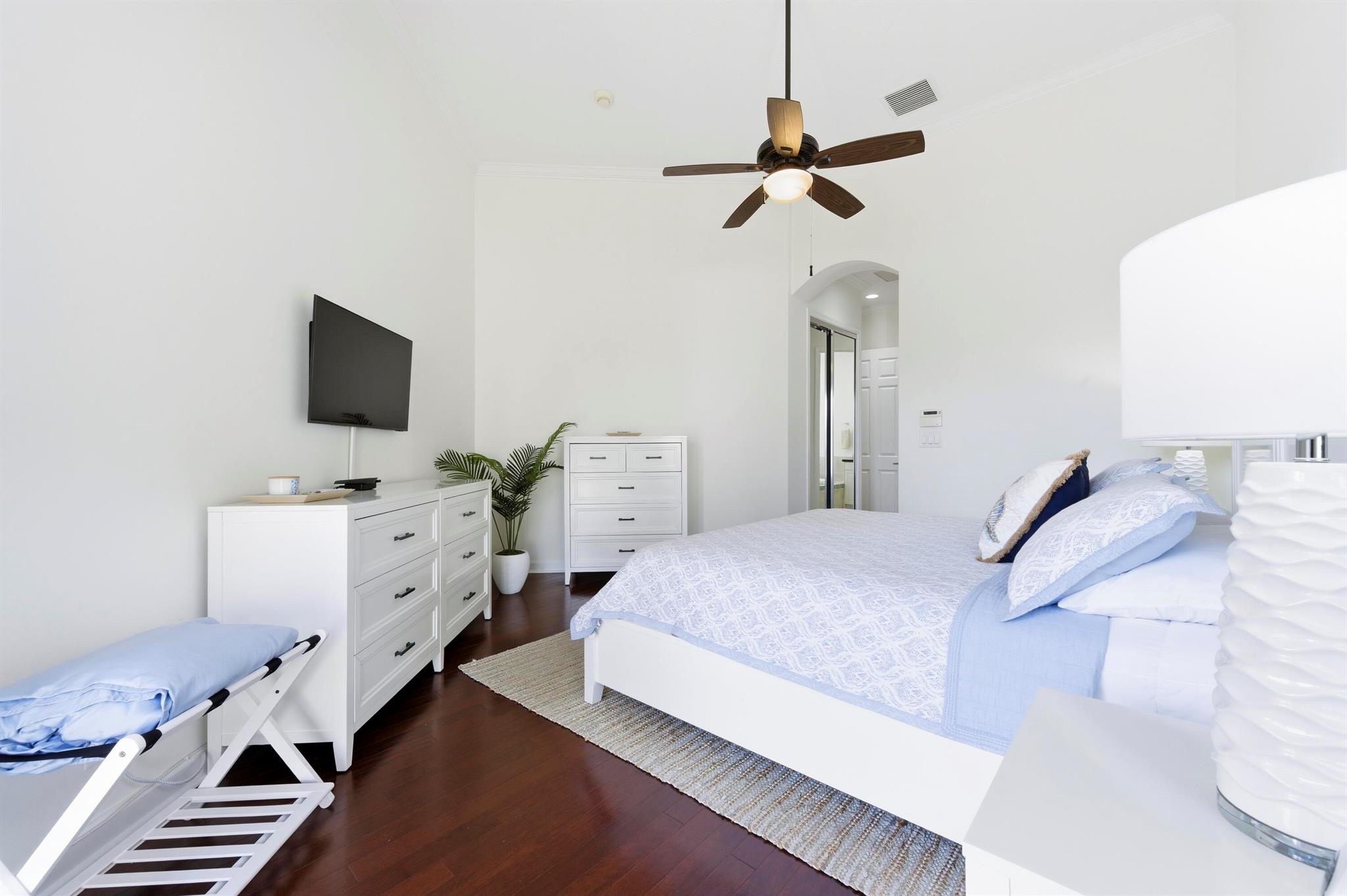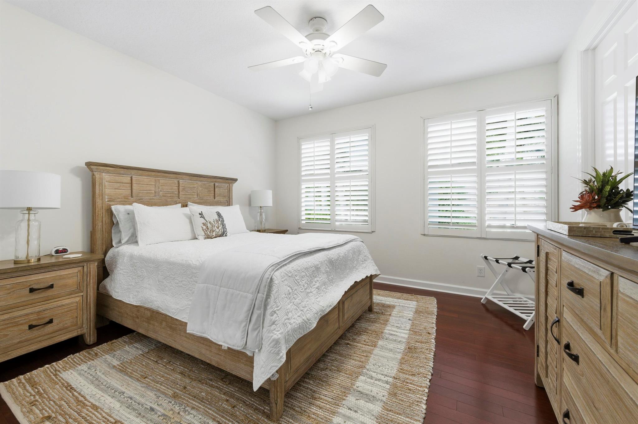 Step into this 4 bedroom plus loft and office/den on a beautiful lake. This extremely light,bright home features a redone kitchen with new cabinets, counter and subway tile backsplash. The stainless steel appliances and island sink have all been updated. The open spaces give you a view of the lake in many rooms in this home. The primary bedroom and another guest suite and office/ den is downstairs . There are 2 guest bedrooms with a jack and Jill full bathroom and a loft for your guests to enjoy upstairs. The backyard has a pool and spa and a lanai looking at the lake where there is a small pier for fishing or just taking in the lake view . There is a grassy area for children or dogs to run. Come see this well cared for, open airy space floorplan for absolute relaxation and enjoyment!!