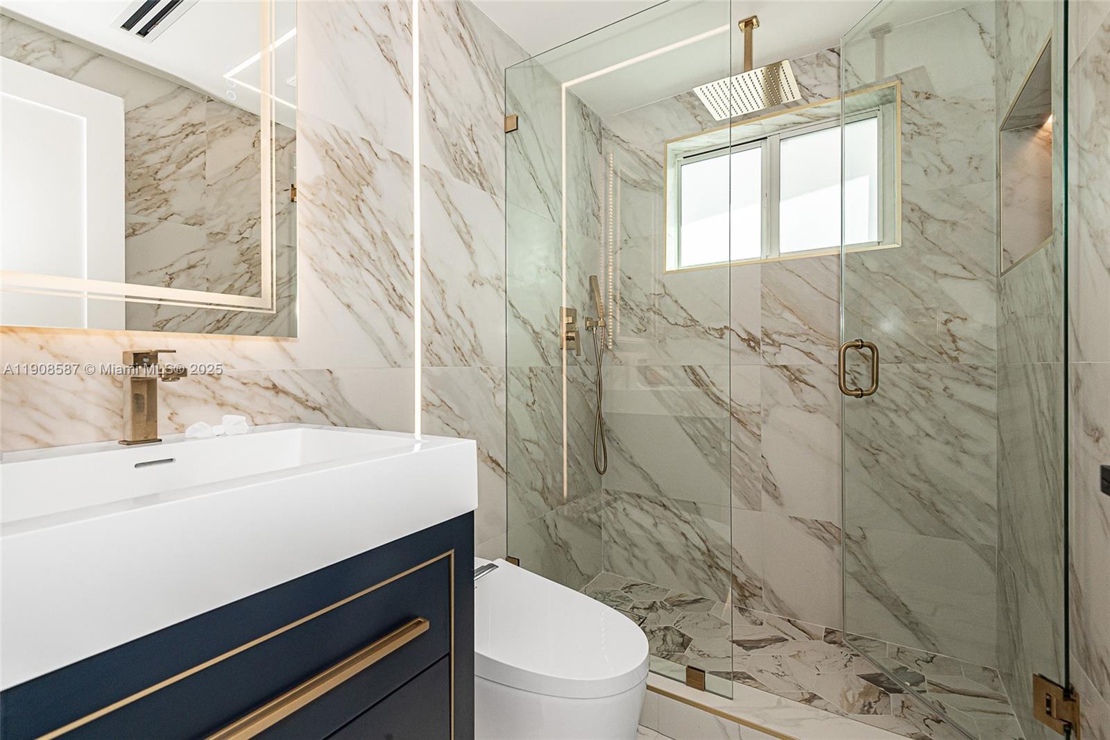 This immaculately renovated property combines elegance and modern luxury. Meticulously crafted to perfection, it epitomizes waterfront living. It boasts brand new 4'x4' imported porcelain floors, glass railings and a backlit, Calacatta fireplace. The Florida room has floor to ceiling windows. The kitchen, boasts state-of-the-art appliances, smoked glass cabinetry and the highest level finishes. The bathrooms, adorned in floor to ceiling, Gold Calacutta imported tile, brushed gold fixtures and the latest in modern cabinetry, are truly breathtaking. This home is perfect to entertain. New AC's, solar panels, impact windows and doors, new railings and a huge, heated, salt water, infinity pool are some of the many upgrades. The home sits on a generous lot with 80' of water, and ocean access.