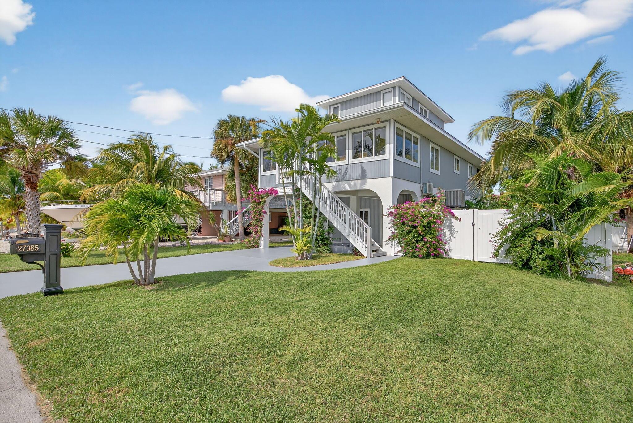 Tropical Keys Oasis -- Waterfront Luxury Living -- Come experience this one-of-a-kind tropical oasis that feels like living at a Keys resort. Surrounded by lush landscaping, vibrant grass is the backdrop for nine coconut palms, five banana trees, two mango trees, and an avocado tree, this property bursts with natural beauty. Vibrant bougainvillea archways create a stunning entry to one of the most exquisitely landscaped homes on the island. Enjoy 60 feet of waterfront with an expansive maintenance free deck, a 15,000-lb boat lift for up to a 33-foot boat and a drop dock perfect for swimming in the lagoon or launching kayaks. Outdoor living is elevated to the next level--exactly what you'd expect in the Florida Keys. Inside, discover a newly renovated beautiful 4-bedroom