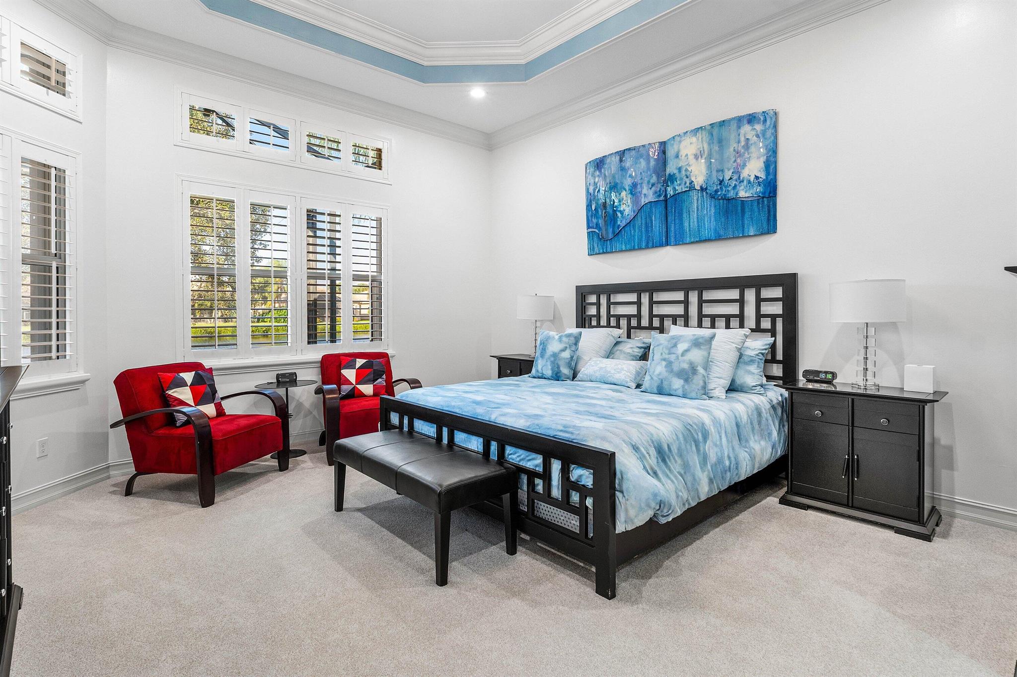 Your serene lakefront escape begins here. Wake up to breathtaking water views and unwind in effortless luxury. This private retreat exudes elegance at every turn, featuring 3-4 bedrooms and 2.5 baths. The gourmet kitchen dazzles with soft white cabinetry and striking countertops--where style meets function. Throughout the home, thoughtful upgrades include plantation shutters, crown molding, custom-fitted closets, recessed lighting, and more. Step outside to the expansive screened-in lanai with decorative pavers and a picture window framing tranquil natural views--perfect for relaxation. Nestled in Valencia Reserve, a vibrant 55+ community, this home offers access to an active lifestyle, soon enhanced by the debut of a fully renovated clubhouse. Welcome Home!!!