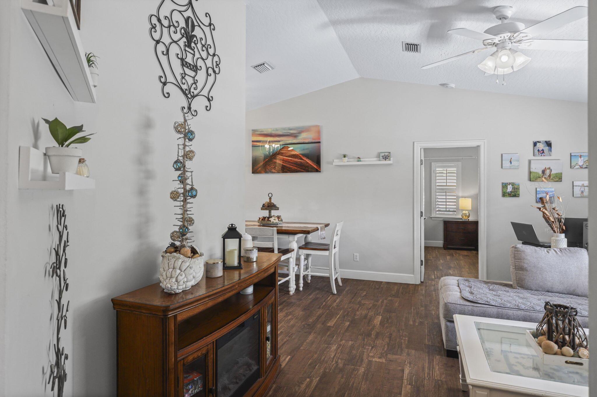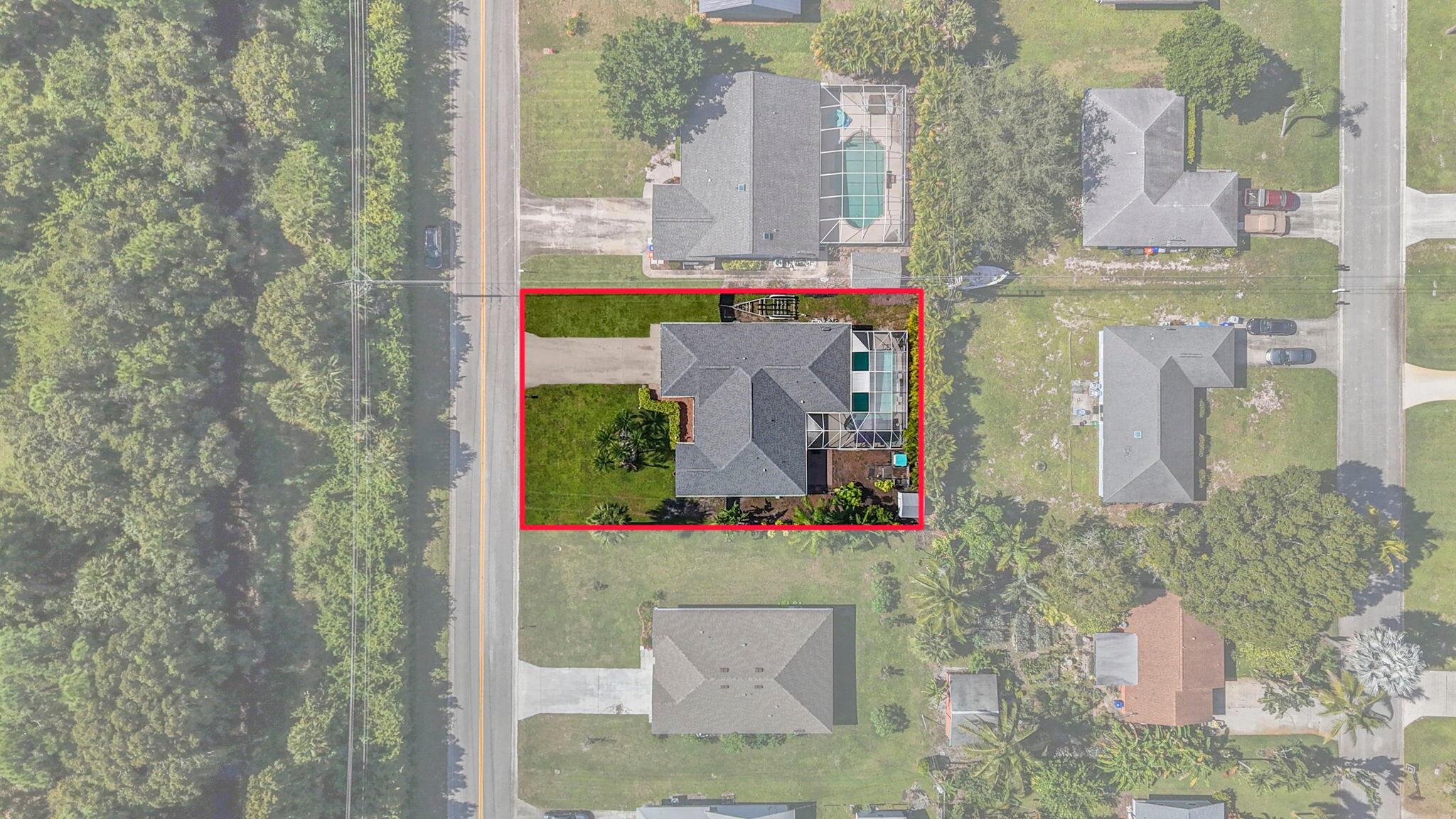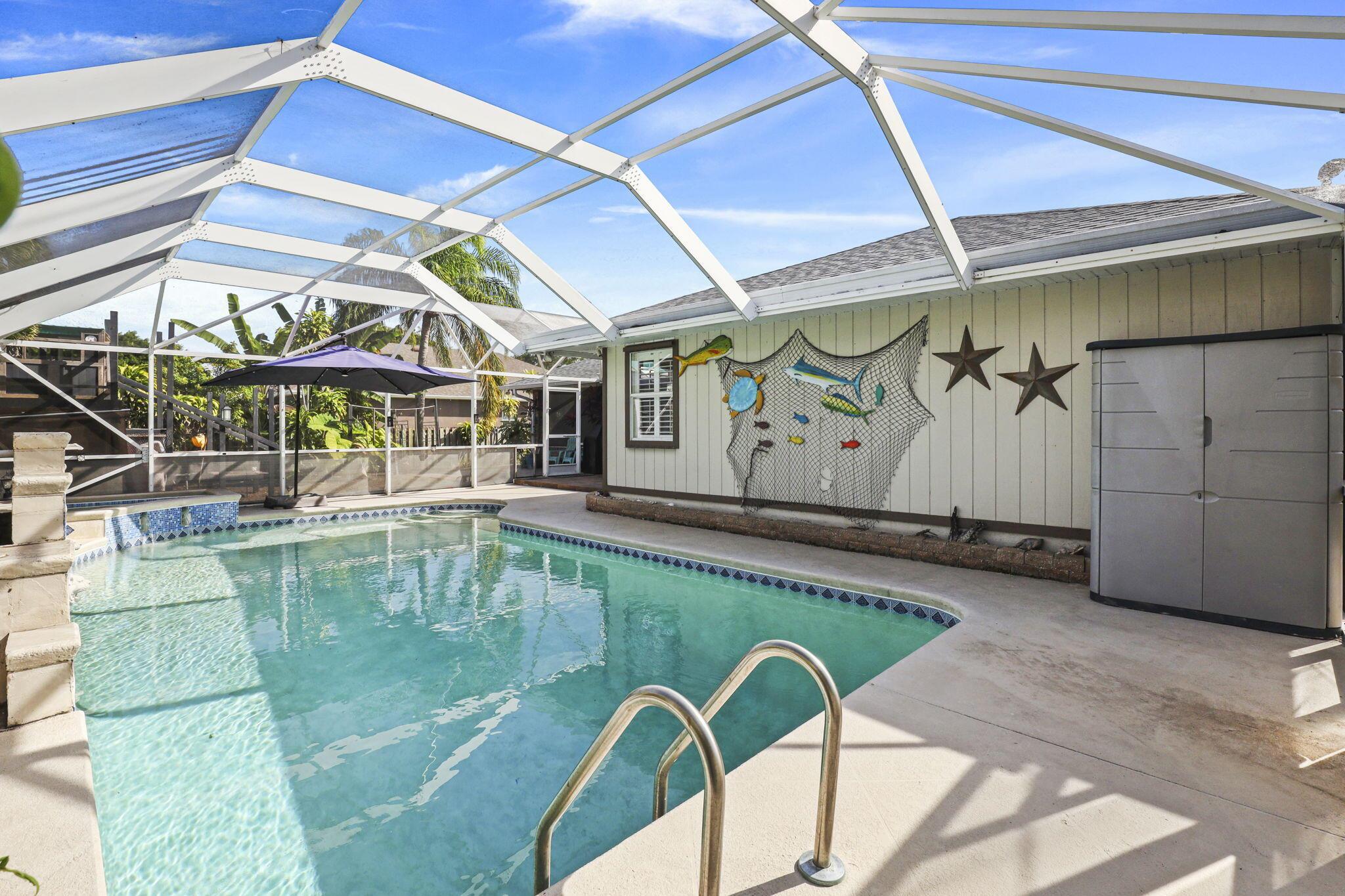 Stunning 3BR/2BA Brick pool home situated on beautiful lot with lush tropical palms and fenced in backyard, perfect for families, pets and privacy! Find yourself lounging in the heated pool or having a cup of morning coffee out on the expansive screened in back porch. Great space for entertaining! Main living area features vaulted ceilings and large open spaces including a family room, separate living room and dining area. Plantation Shutters and Tile throughout the entire home. Dual sinks in both bathrooms. New Roof installed 2025. Bonus/Flex/Media room. Seperate laundry room! This meticulously maintained home is Located close to shopping, dining and the beautiful beaches-this home offers comfort, charm, privacy and convenience. No HOA/restrictions. A must see!