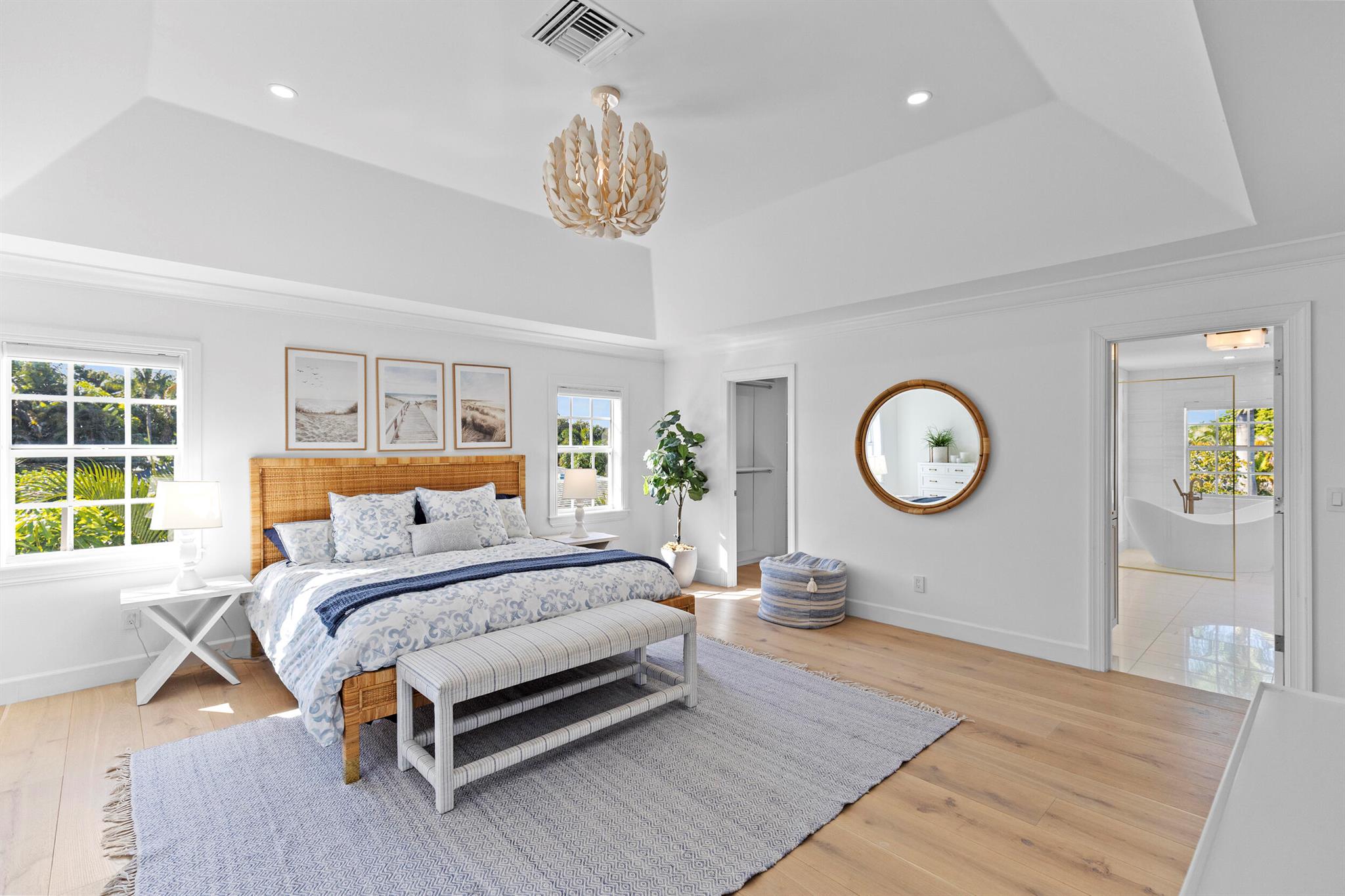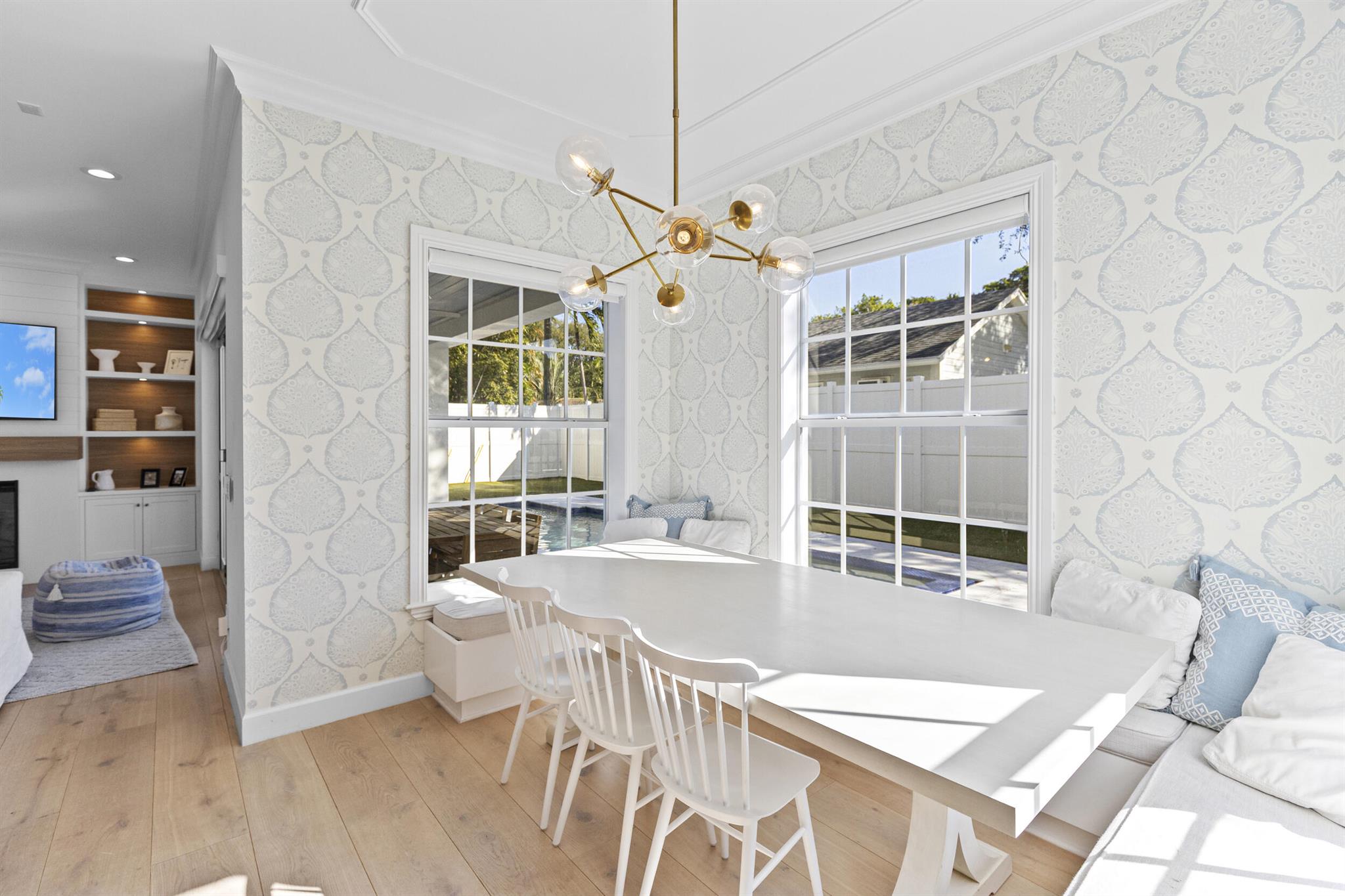 Stunning, fully renovated home in Delray Beach's highly sought-after Lake Ida community. This modern coastal residence offers hardwood floors throughout, impact windows and doors, and a brand-new roof. The chef's kitchen is exceptional, featuring dual refrigerators, dual dishwashers, a wine cooler, custom cabinetry, quartz and porcelain counters, and a built-in breakfast nook with bench seating. Each bedroom includes its own beautifully designed en suite bath. A custom office with built-in cabinetry provides a perfect work-from-home space. The backyard is a private oasis with new turf, new pool, and ample space for outdoor dining and entertaining. Ideally located just minutes to Atlantic Ave, Pineapple Grove, parks, Lake Ida, and Delray's award-winning beaches.